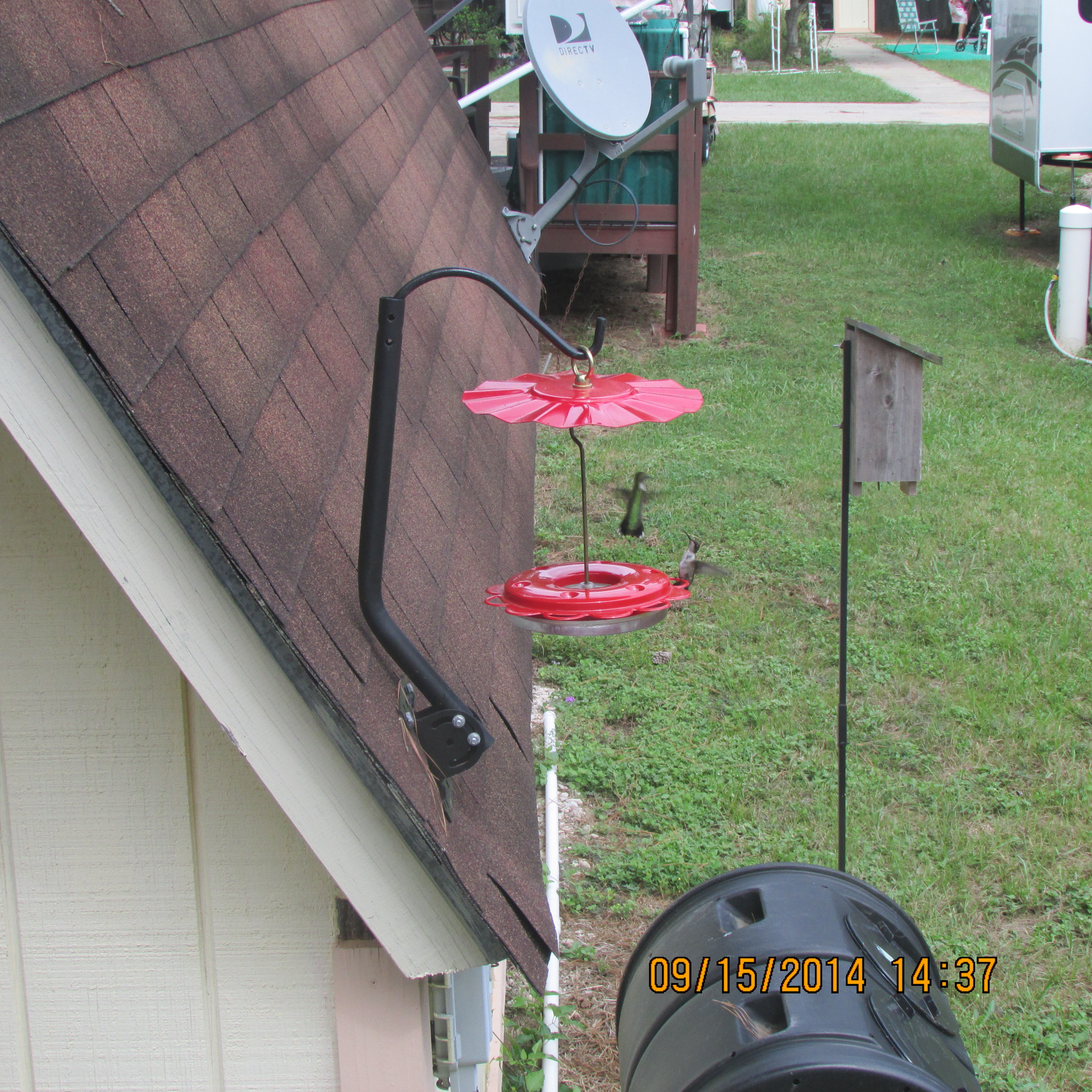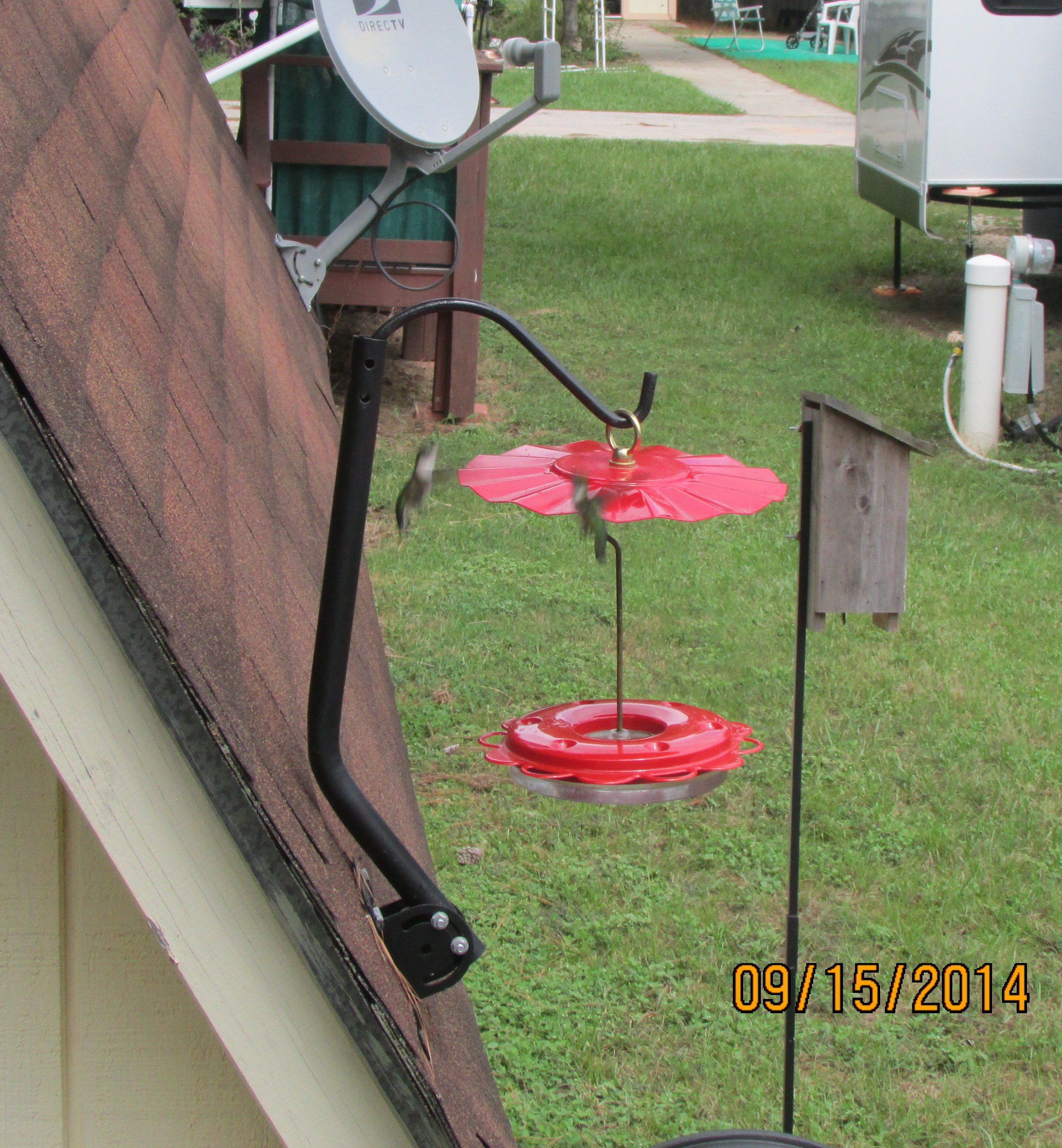 From my kitchen window, watching a pair of Hummingbirds fight over a feeder!! They are very territorial… and do not want to share!! I marvel when I hear folks talk about three, or more, on their feeders. I’m told there are hundreds of Hummingbirds –clustered like grapes–in Rockport-Fulton, Texas, for the Hummingbird Celebration. That’s this weekend and, unfortunately, I’m committed to a Square Dance exhibition on Saturday afternoon. Furthermore, the local birds and blooms club resumes after “going dark” for the Summer. Wish I could be in three places at once!!