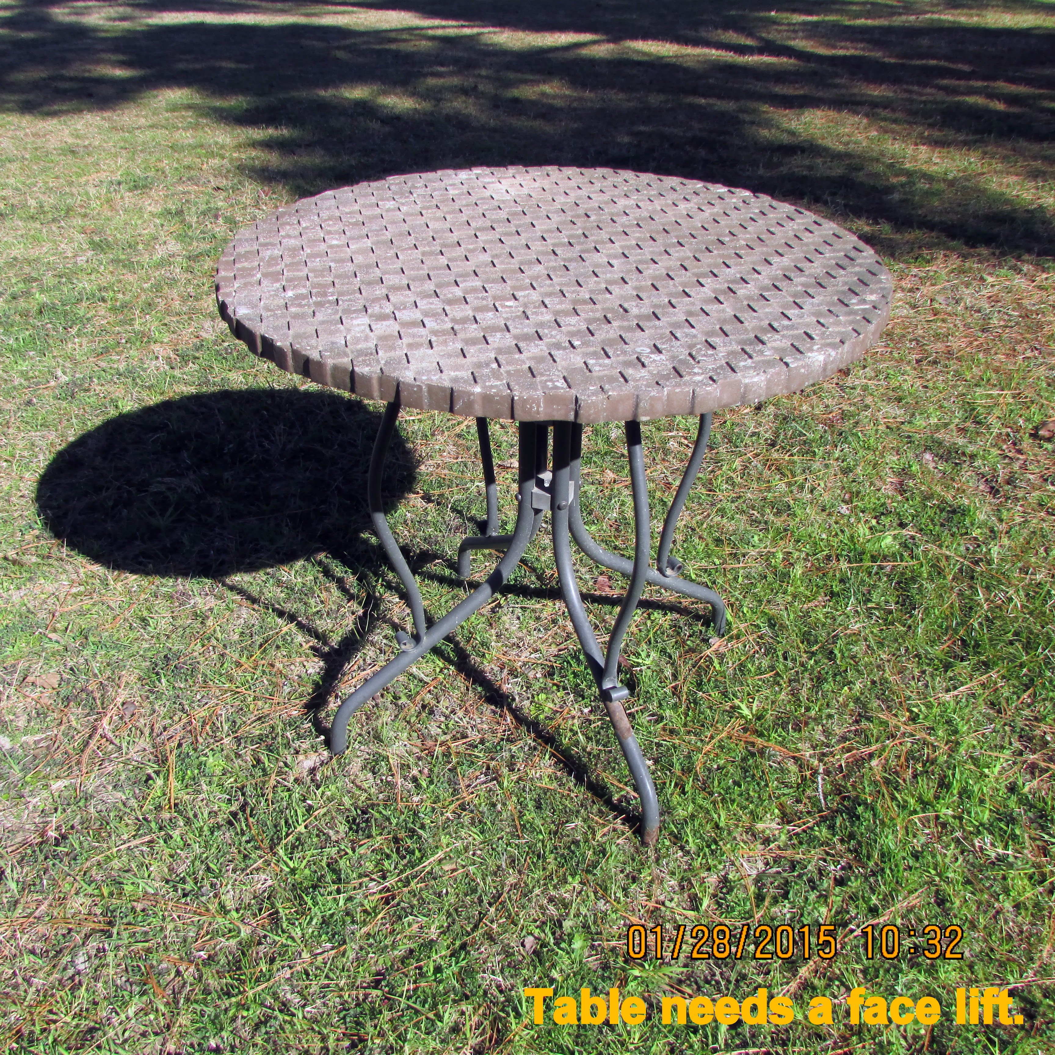 Twelve-thirty noon and lunch time. See what I accomplished this morning?! Well, this, and more!! I “planned ahead” and had the spray paint for table-top. I have an ample supply of trash bags!! Looking good (IMHO)!!