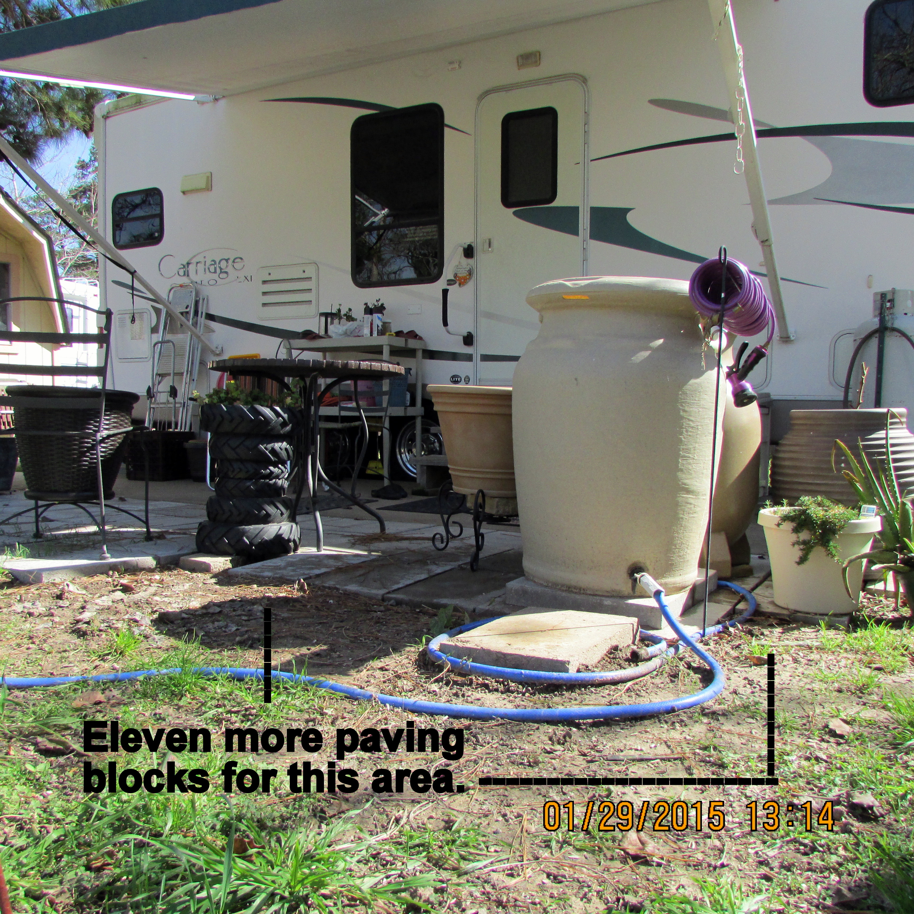 Soon, need to purchase many large bags of planter soil. Last year’s soil (in planters) will be dumped/spread along the berm so Periwinkle can grow and cover that ugly (despicable) white pipe. (I have over a dozen Periwinkle [ground cover plants] from a friend’s garden. I’m defiant and will put Periwinkle in the ground!! If I’d had a choice… I would have spent the money for a berm that harmonized with my yard.) ~~ I really would like to expand the patio with eleven more paving blocks (in the corner beyond the rain barrels). ~~ Lots to do; this should keep me busy for a few weeks!! ~~ Oh, I’m planning for a veggie garden, too!!