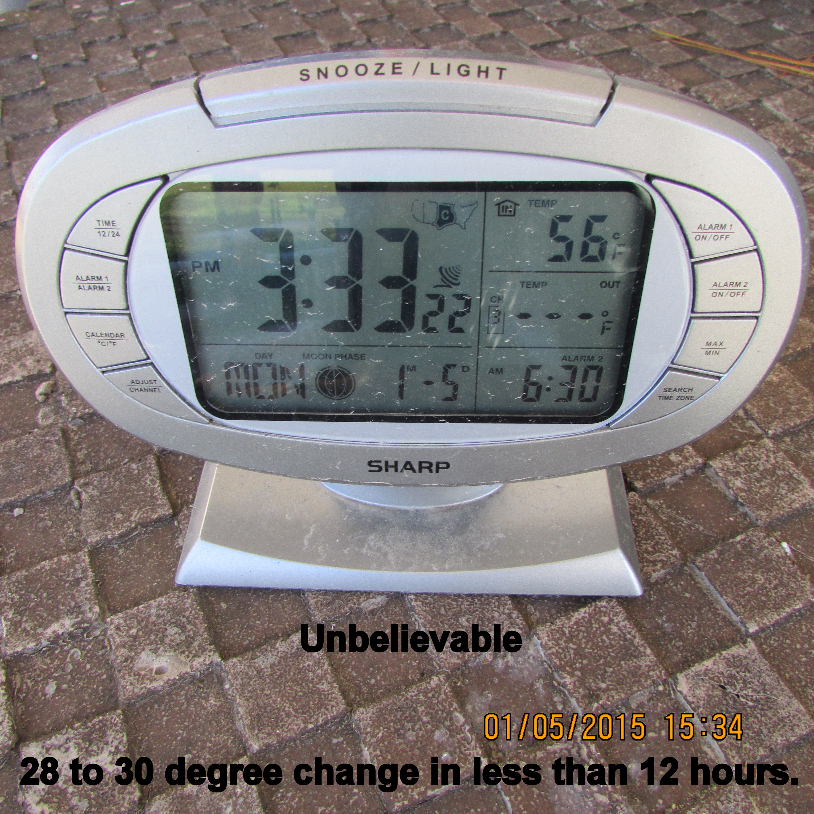 Astonishing, unbelievable, remarkable, etc., etc.! It’s difficult to fathom the change in temperature in twelve hours. Hey, I’m not complaining!! The afternoon sunshine feels wonderful!!