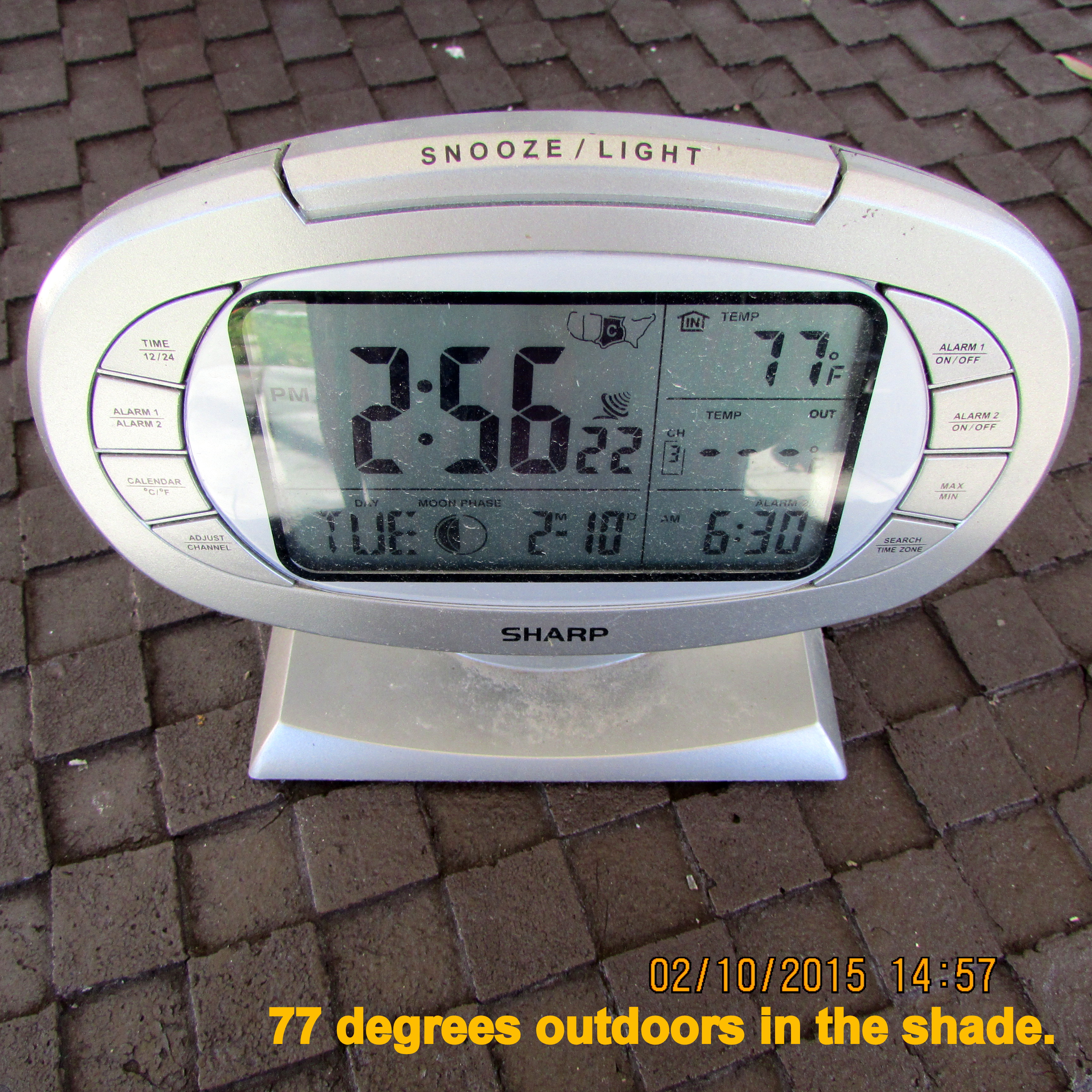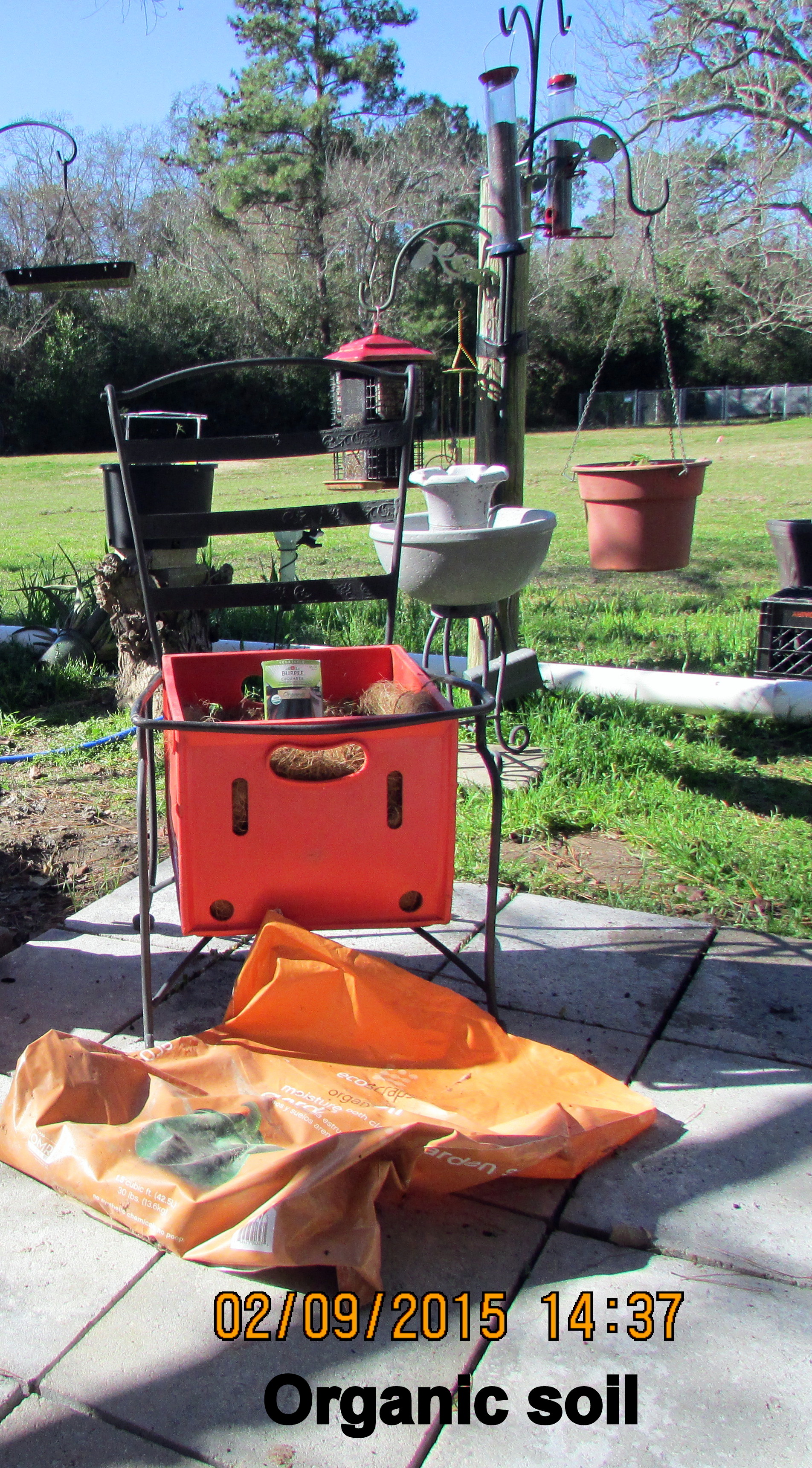 Another incredible day!! It’s 4 o’clock and time for a break. I’ve accomplished much and earned some “sit down” time. The afternoon was spent in the yard–of course. I purchased planter soil this morning; transplanted three plants this afternoon. I did the transplanting in their respective locations because too heavy to lift otherwise. I think “they” are still dormant enough that they will not sense any transplant shock. The Cape Honeysuckle has taken abuse this Winter so will thrive with fresh soil and more room for the roots. ~~ It’s only money (LOL): $20.00 worth of planter soil (and it wasn’t Miracle Gro–the expensive one)!! At Lowe’s, it appeared everything was twice as expensive as last year!? Bedding plants were admired but none came home with me. ~~ (See my blog message Gardening Vicariously. Per a phone call 2/12/15, the plants won’t be shipped “until Spring” [because their nursery is in Illinois]. Frankly, I’ve been waiting patiently, anticipating their arrival, preparing the planters and soil. Oh well, I’ll turn my attention to other yard projects.)