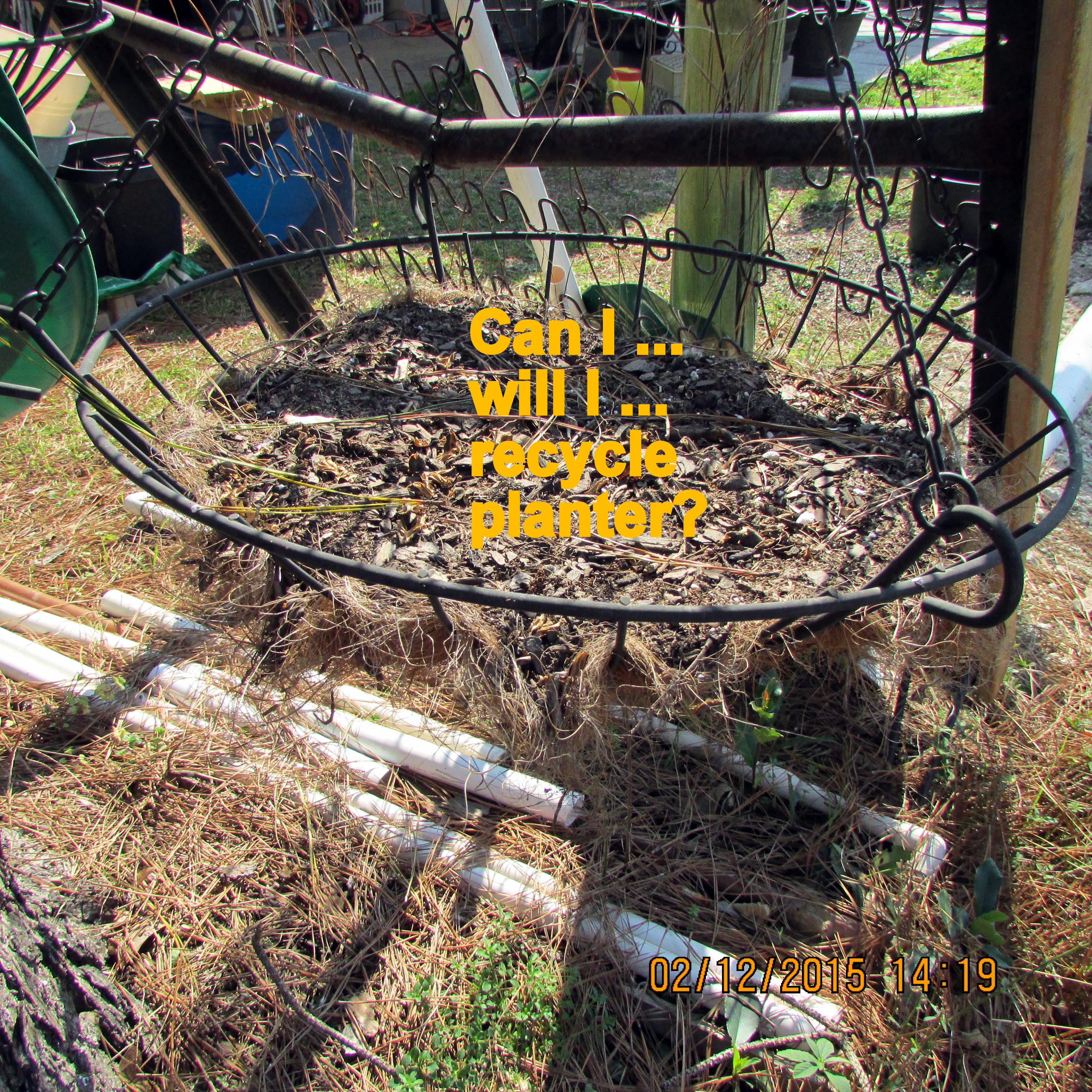 FYI: The plastic woven seat become brittle and not safe to sit on. Although the problem isn’t critical, I’ll cut away the plastic (on second chair) and use a similar crate for the strawberry plant. (Pictures later.)