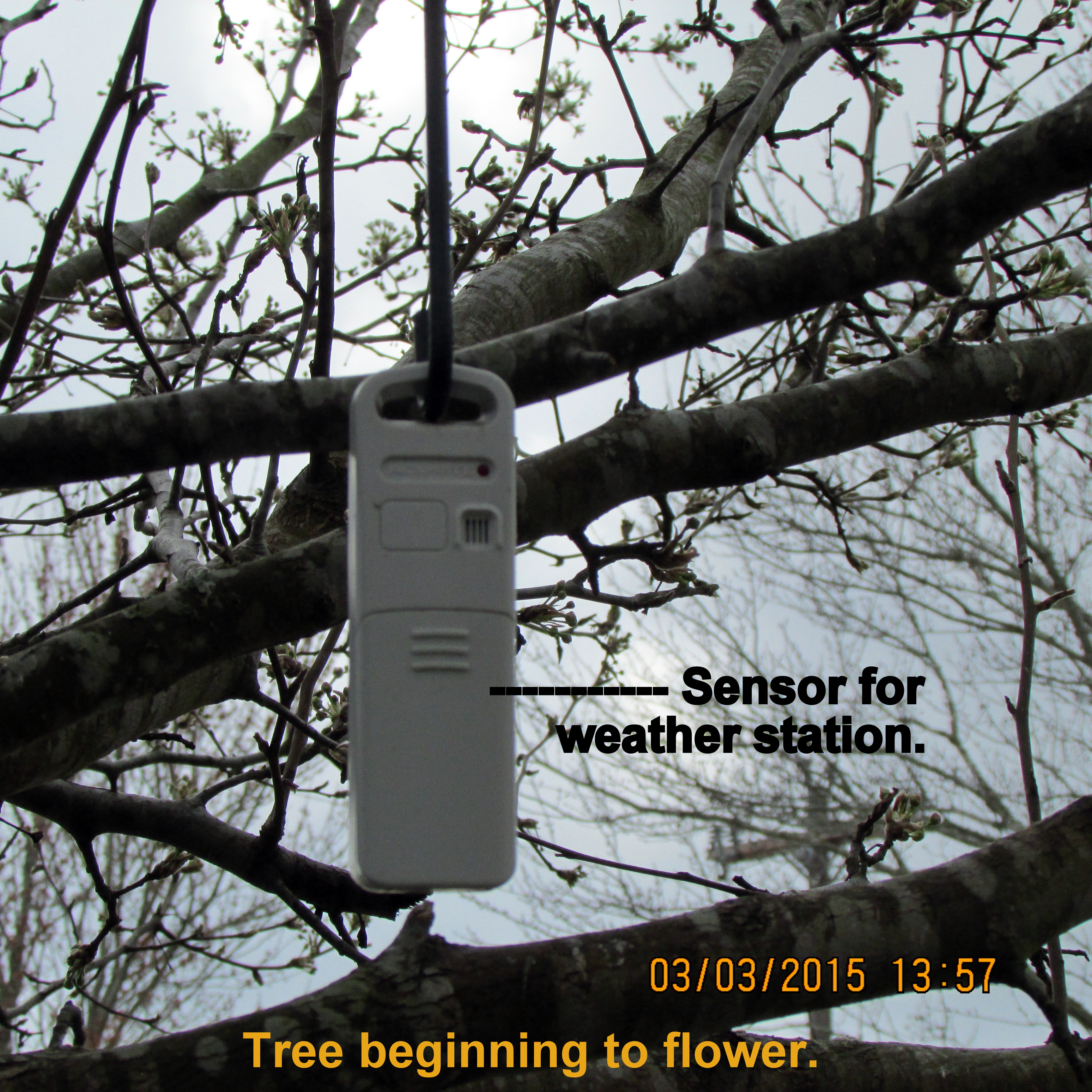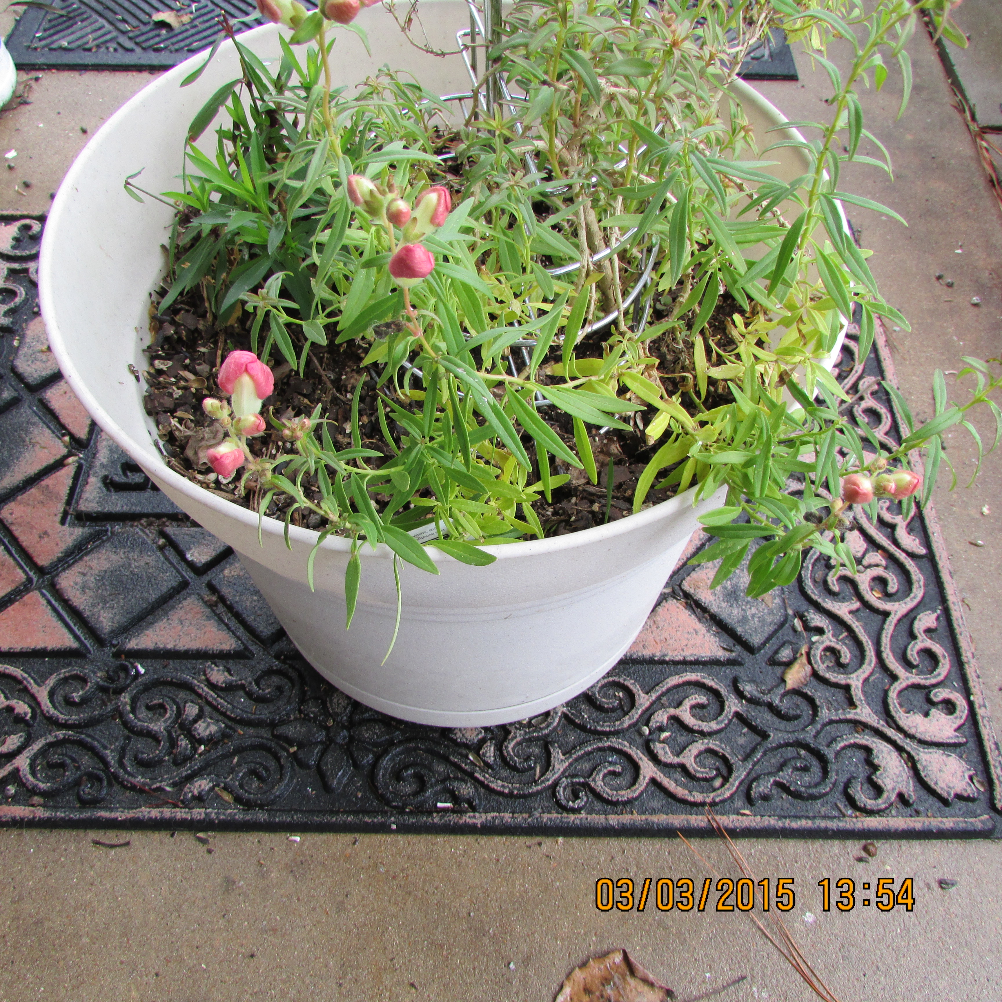“No,” not an edible sandwich!! A few hours of warm weather sandwiched between “cold fronts.” Houston TV-news meteorologist said “cold front this afternoon; low 40’s tomorrow.” I hope, and pray, we don’t have more freezing temperatures. The tree (with the sensor) is beginning to bloom. Plants sheltered during the winter have a few blooms. The cucumber seeds are peeking through the soil, Calibrachoa is blooming, Mandevilla is pushing out sprouts, and tomato plant is thriving.