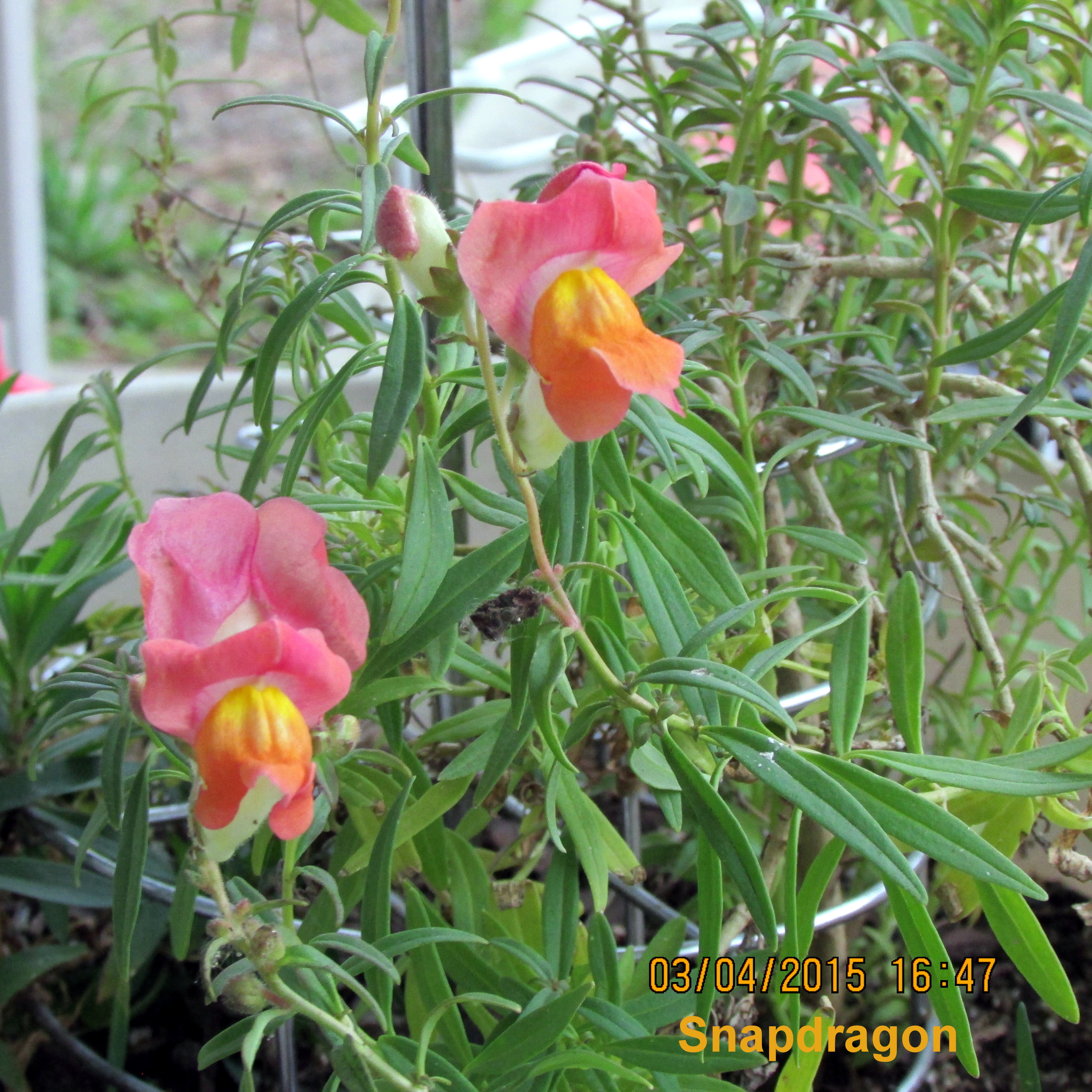 Twenty-six hours ago, I didn’t even know they are Snapdragons!! This warm day was delightful for man and beast (woman and plants)!! During the pleasant afternoon, in preparation for the inevitable, I covered the plants.