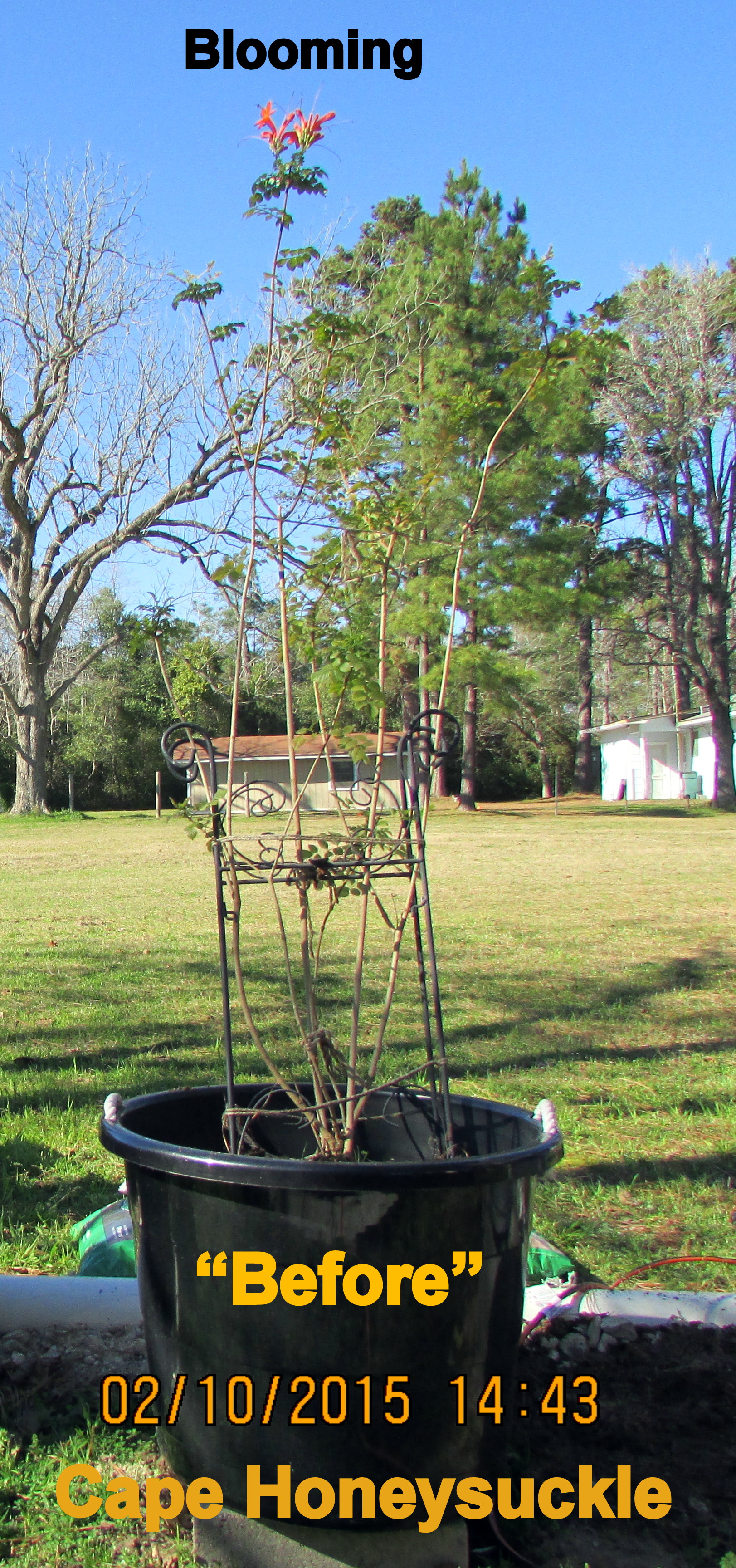 Remember how pretty the Cape Honeysuckle was? I had it indoors every time we had freezing temperatures. Then I transplanted it into a planter too large to move. I faithfully covered it the last few arctic blasts but this last storm was critical. Today I trimmed away the black ugly leaves and all that formerly beautiful new growth.