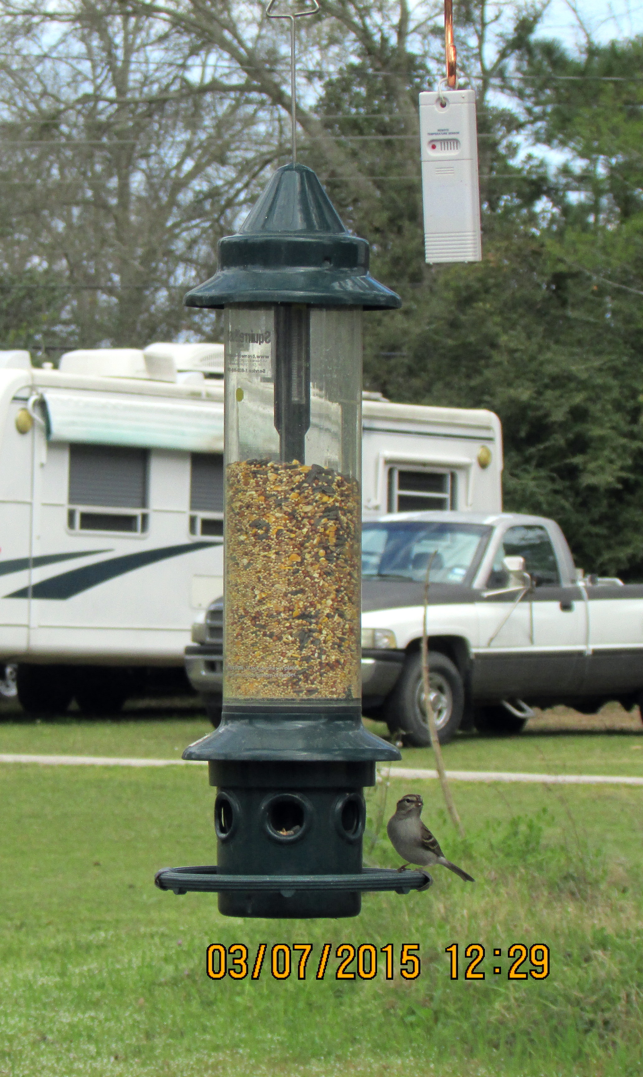 Went shopping mid-afternoon yesterday. Paid $24.00 for bird seed. (Other garden expenses, too.) Several pictures taken through the window. Today, mid-morning, I unloaded the bags and filled bird feeders. Time and temperature after I finished replenishing the feeders. Then I sat quietly and watched the birds come for the smörgåsbord. ~~ Other projects accomplished, too. So nice to spend time in the garden.