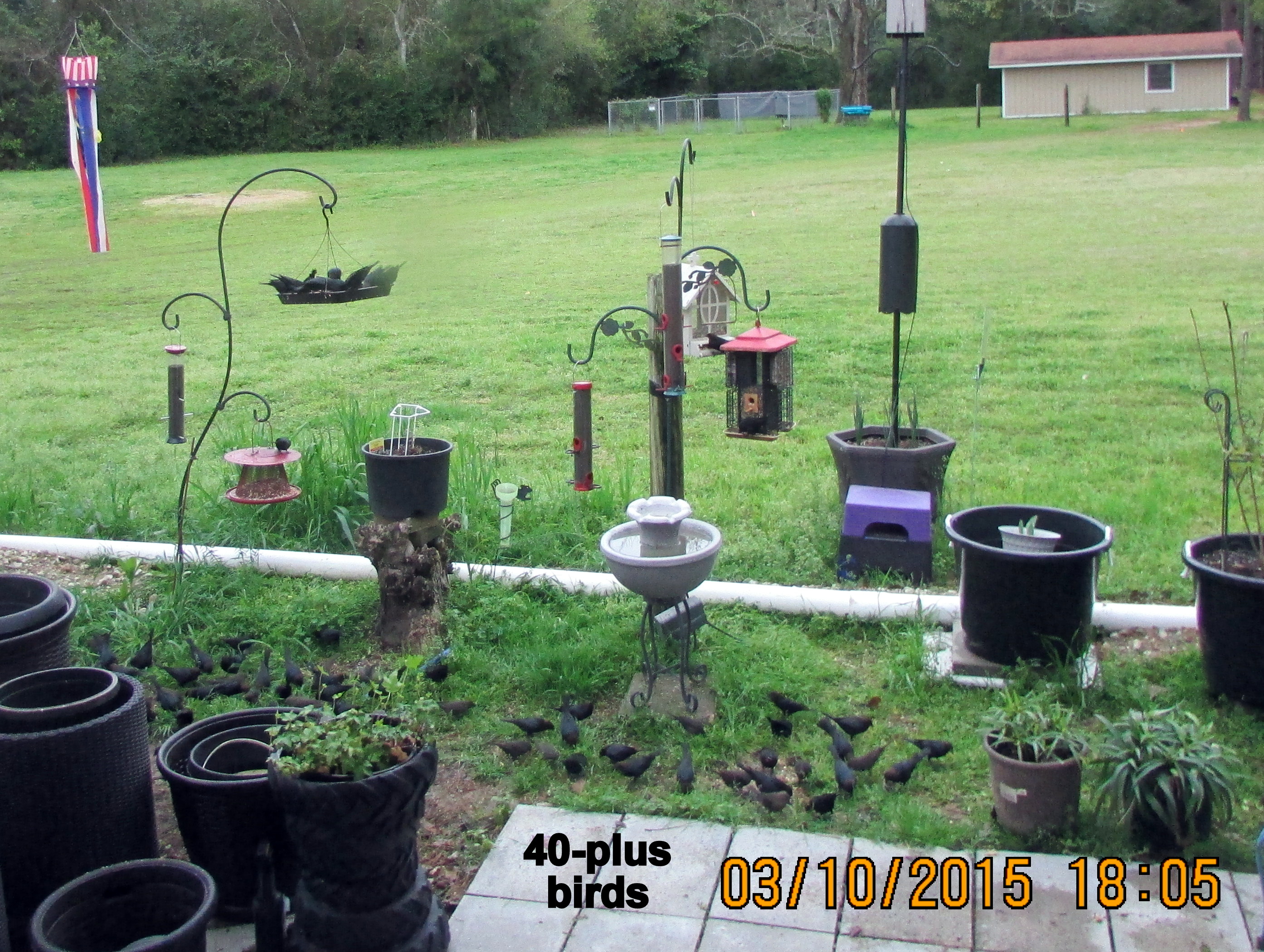 Worked in the yard most of the afternoon. It was damp and cold but I was able to forgot my shoulder pain. I filled bird feeders, drilled holes in the bottom of planters, positioned and re-positioned planters. Hanging baskets were hung from supports. It was very good to get the planters out of my living room!! (“Please, Lord God, no more freezing temperatures!!”) The birds are happy because their soggy seed was dumped and dry seed supplied.