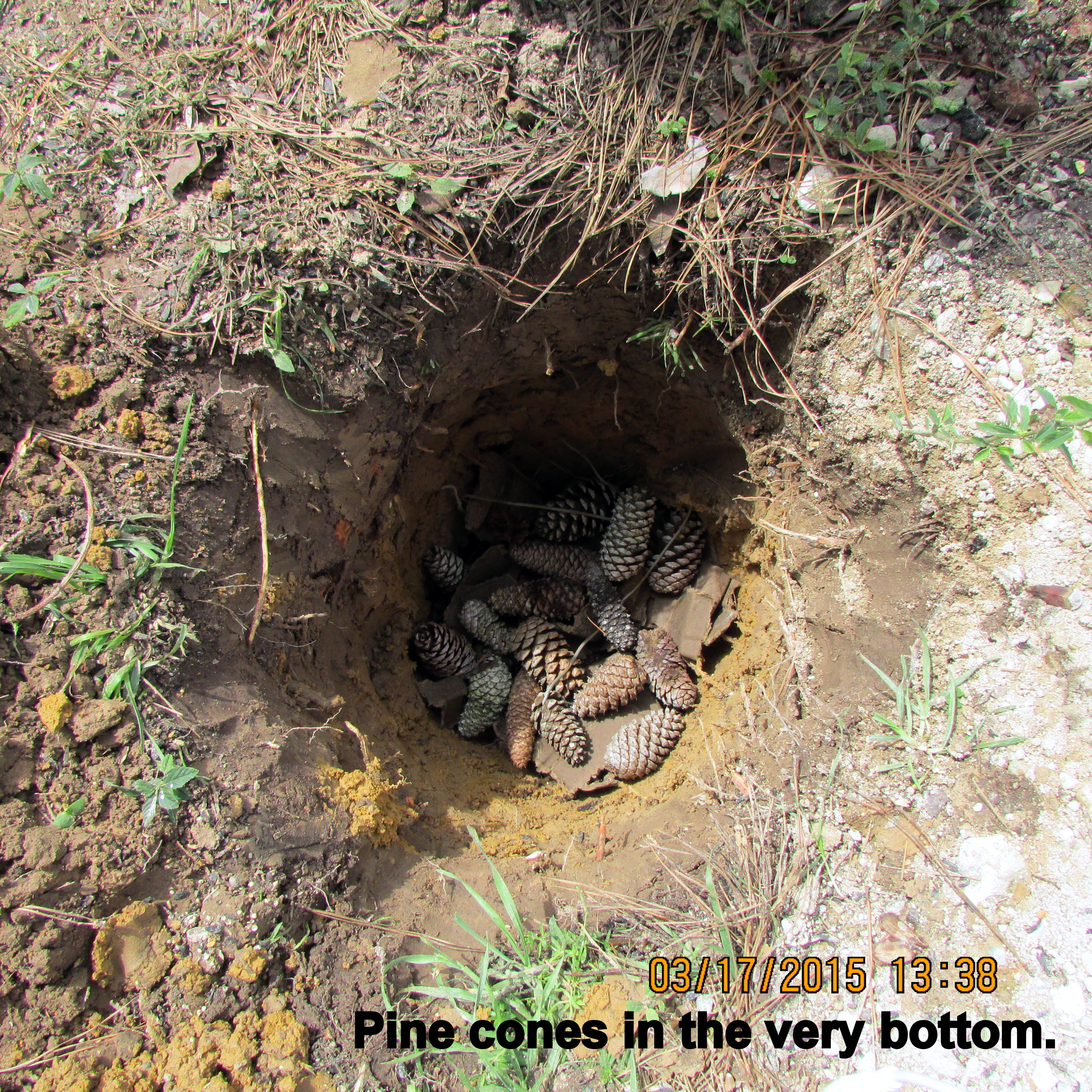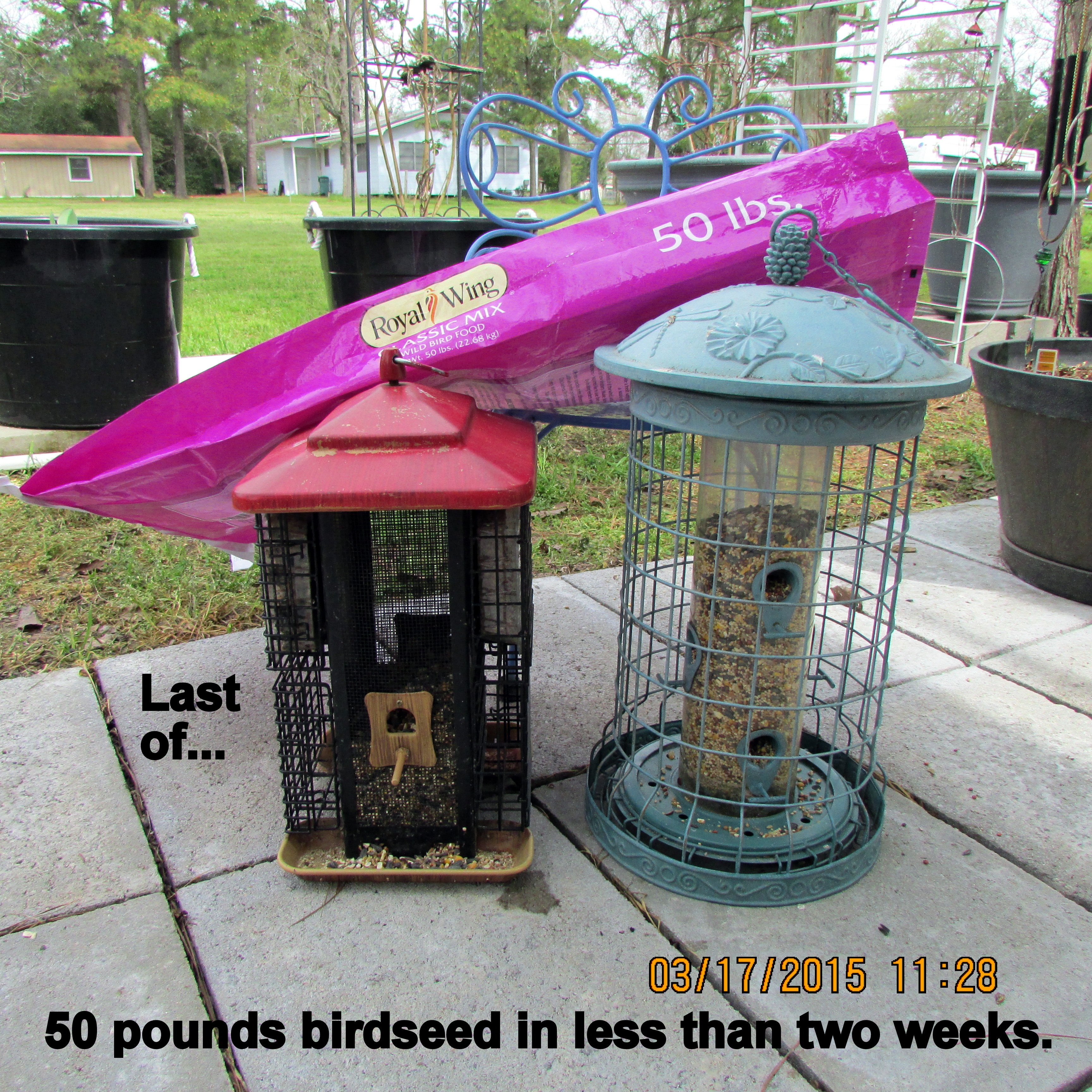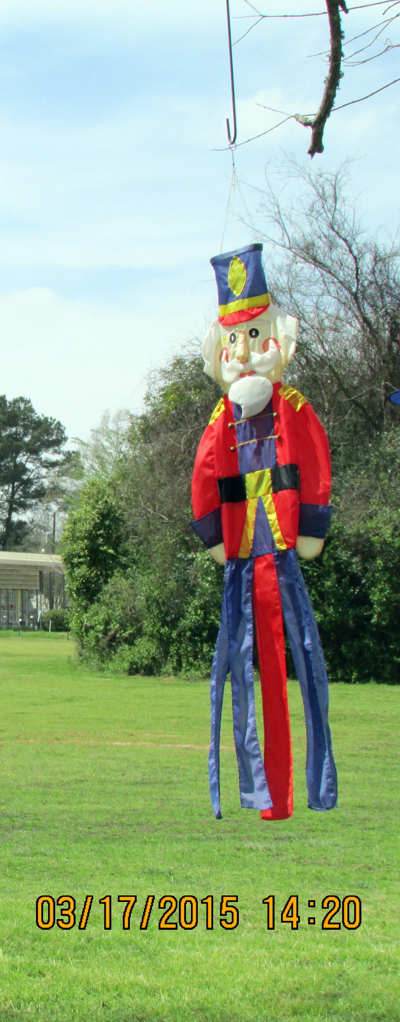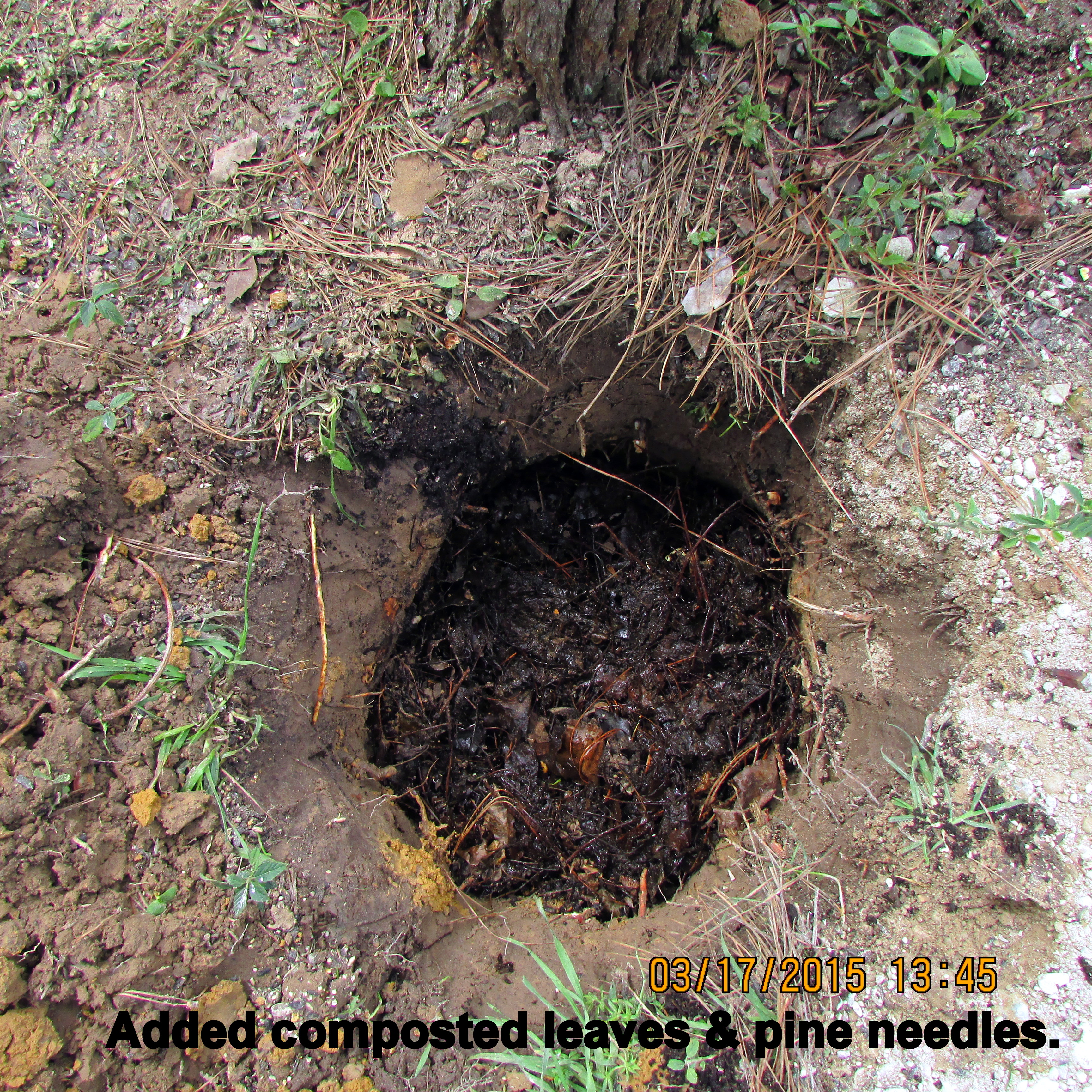 Working in the storage unit (down the highway) was my planned activity for the day. However, a long-awaited helper became available so my focus was on “a hole in the ground.” I’m preparing for the yet-to-be-delivered (Internet purchase) Trumpet Vine. ~~ Enjoyed my breakfast “tea” while sitting on the patio. ~~ Puttered in the yard, pulling weeds, filling bird feeders, etc., until our delicious noon meal. Corned Beef, cabbage, potatoes, carrots, etc., and all the residents wearing green for St. Patrick’s Day. ~~ I’m preparing this blog between four and five PM and must confess that I am as tired as if I had dug that hole myself!! Well, I did “fill” the hole!! Pine cones in the very bottom for drainage, composted leaves and pine needles in the middle, last-year’s planter soil to ground level. I’ll use fresh planter soil in the planter around the Trumpet Vine. This should, hopefully, be a good start for the plant?! Why did I do it that way? I don’t know; it just seemed like “the right thing to do.” I’m counting on the vine to be a beautiful asset to my garden. Speaking of assets: I think the new (used/free) wind-sock is a nice addition. ~~ (I’ll remove the awful soil later.)