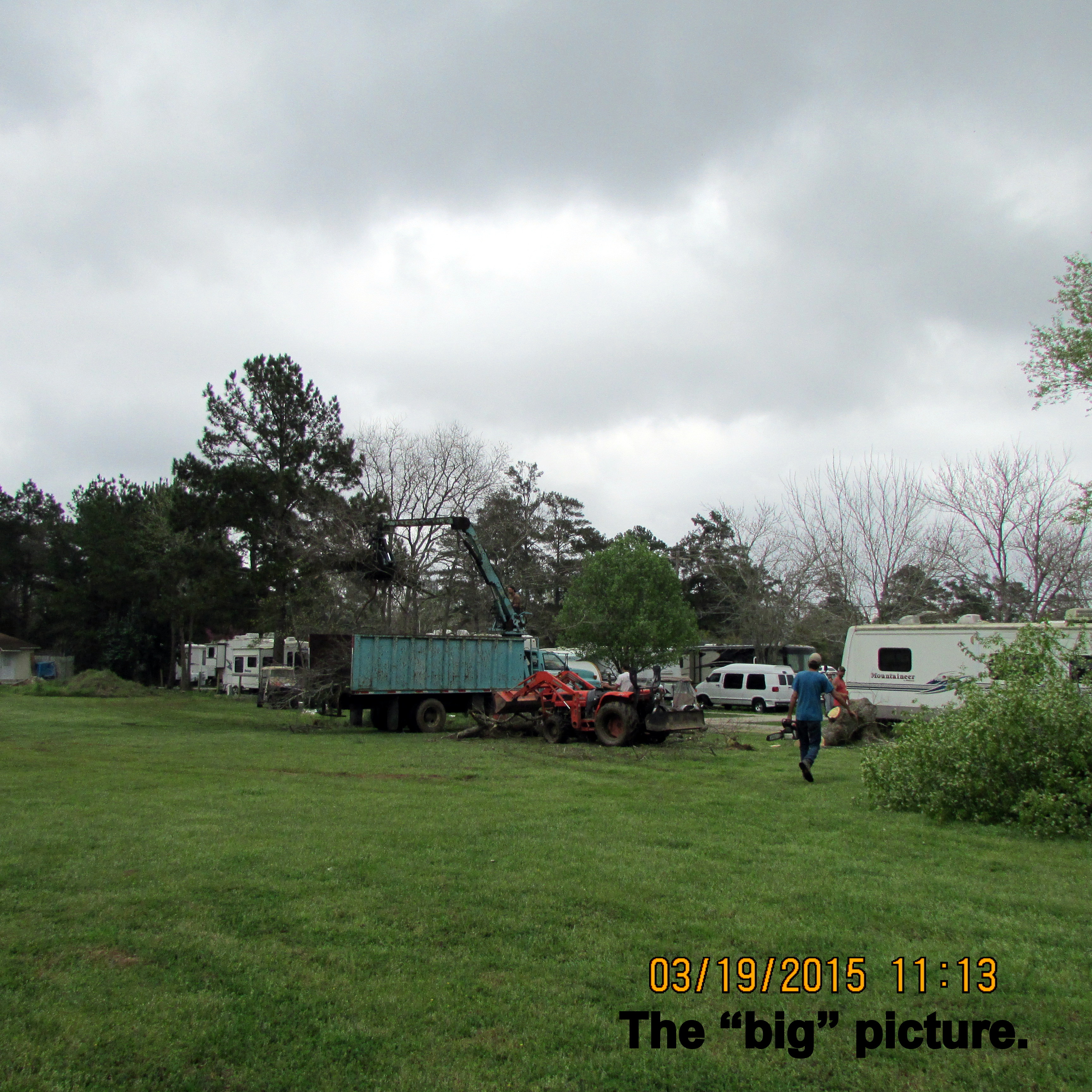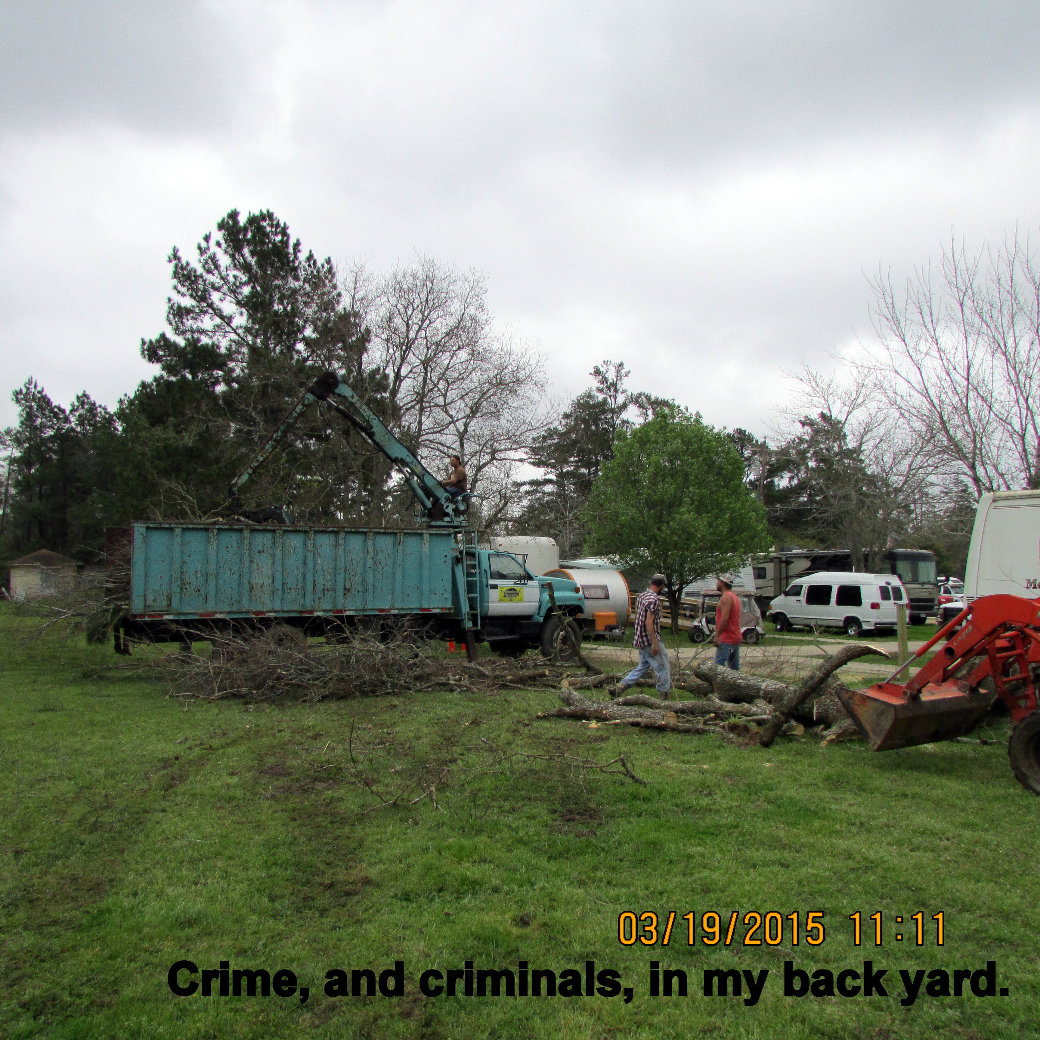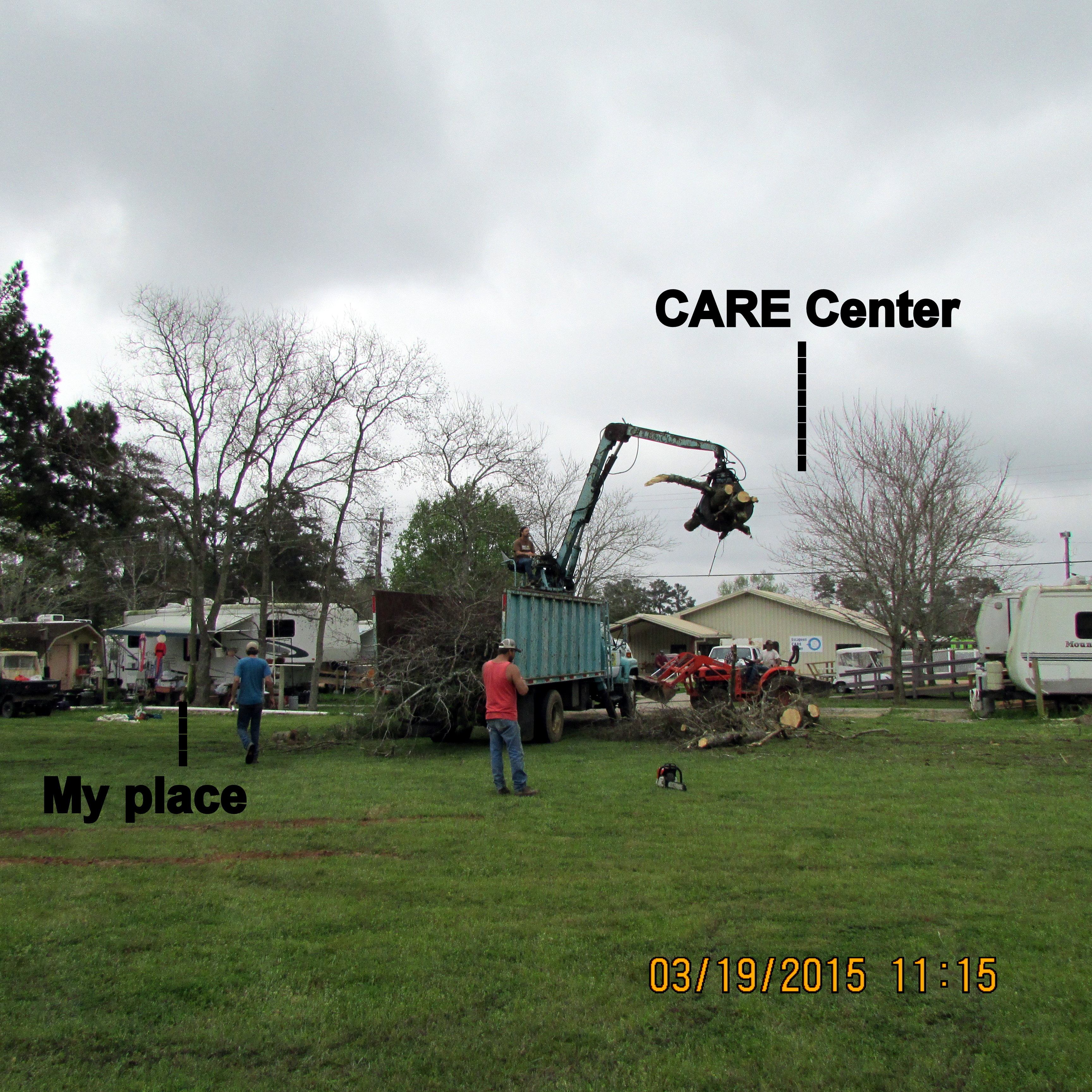 The storage unit, down the highway, was the focus of my attention today. Returning “home” mid-morning, I found a lot of activity in the field. True story: I nearly had a heart attack when I saw the man start to fell that big beautiful tree!! ~~ “Back yard” because it is beyond my “front yard.”