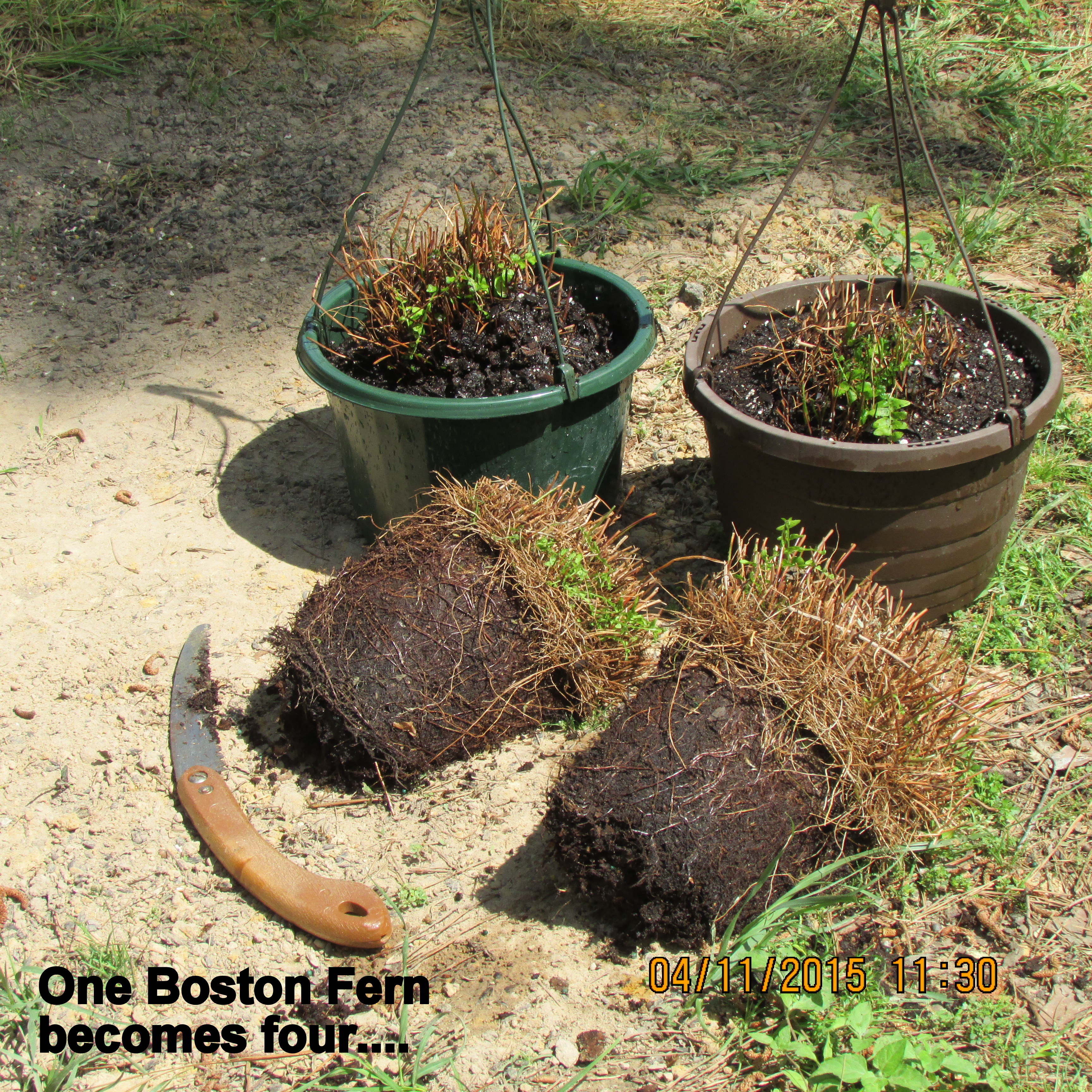 The storm did not materialize (gratefully) so I worked in the yard most of the day. Four-ten PM as I write this and I’m enjoying some earned rest. ~~ I knew the Boston Fern was root-bound, and I had been told the plant can be cut into sections. If it fails… I haven’t lost anything because the original plant was dying when anonymously left on my doorstep (last year). It thrived… but now too big for the planter. ~~ This morning I planted ten plants–and several more beg my attention. I emptied the two bags of planter soil purchased yesterday!!!!