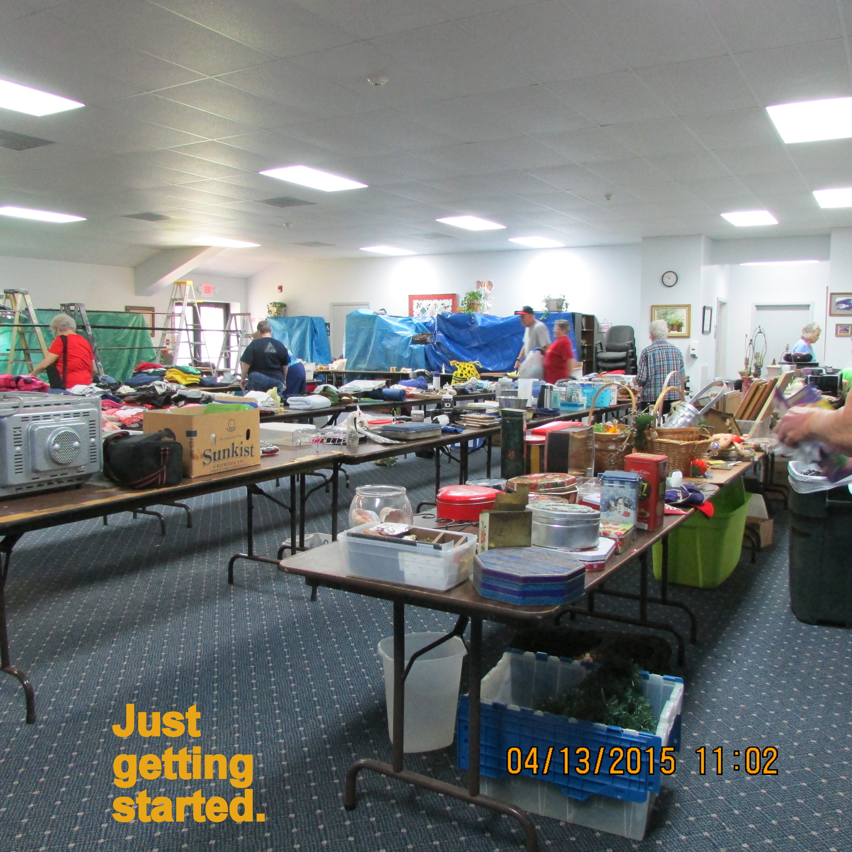 Only a few more hours ahead of us–for CARE garage sale. Tomorrow (Saturday) is different: Customer buys a large bag for $5.00 and can stuff it full. I refuse to let wool blankets, and beautiful afghans, go into a $5.00 bag!! So I’ll store items until next October.