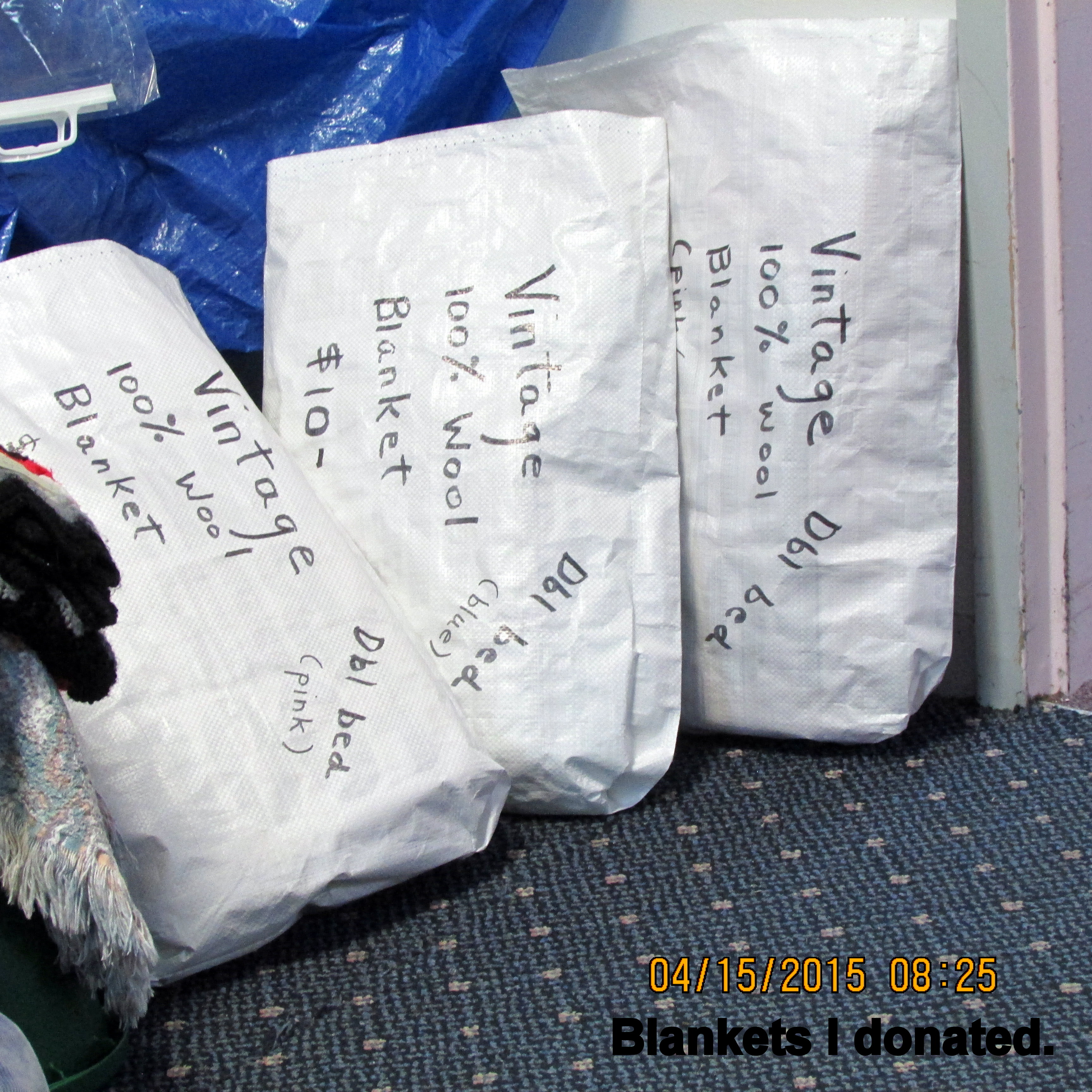 Now I need to package, protect, and store the wool blankets and afghans–at my doorstep–for next October CARE Garage Sale. Linen table clothes, napkins, embroidery, doilies, etc. (in white plastic container) will go to the appropriate shop (near Huntsville) and bring a substantially better price than our “garage sale” prices.