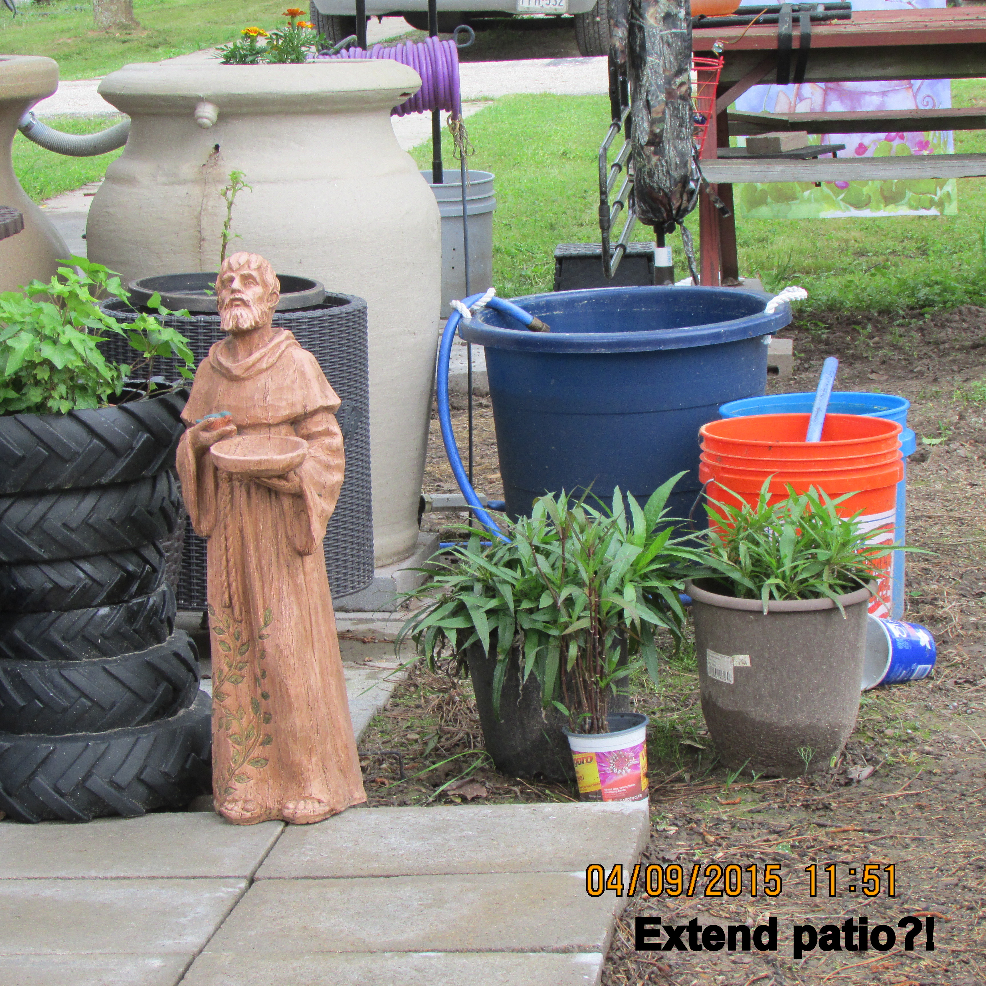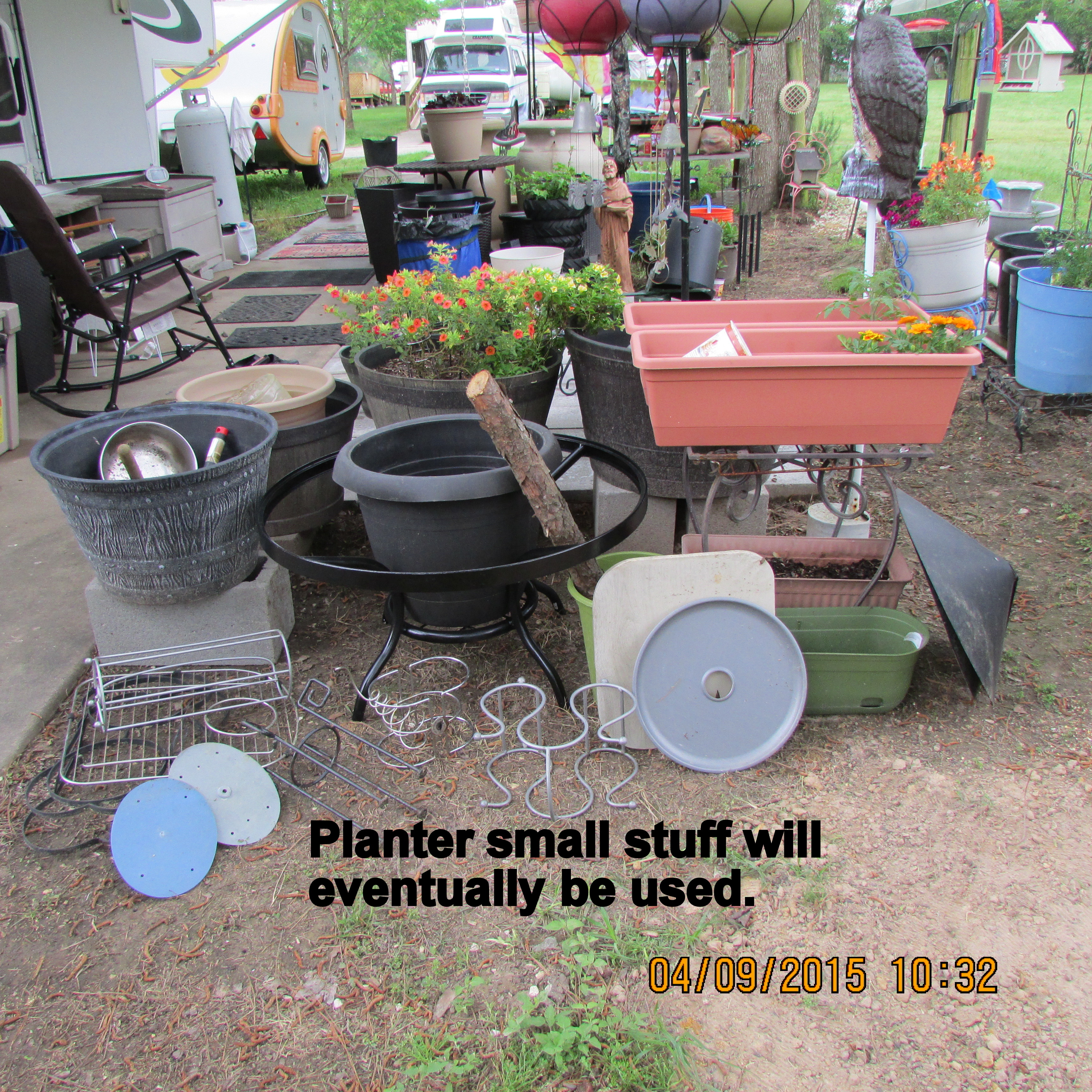 Believe it or not, I have forty-four planters with plants–and fourteen planters that will definitely be filled before Summer. I didn’t count the many miscellaneous planters that may never be used. I’m attempting to use as much garden stuff as possible and then donate (or trash) the remainder. My goal: A tidy attractive yard.