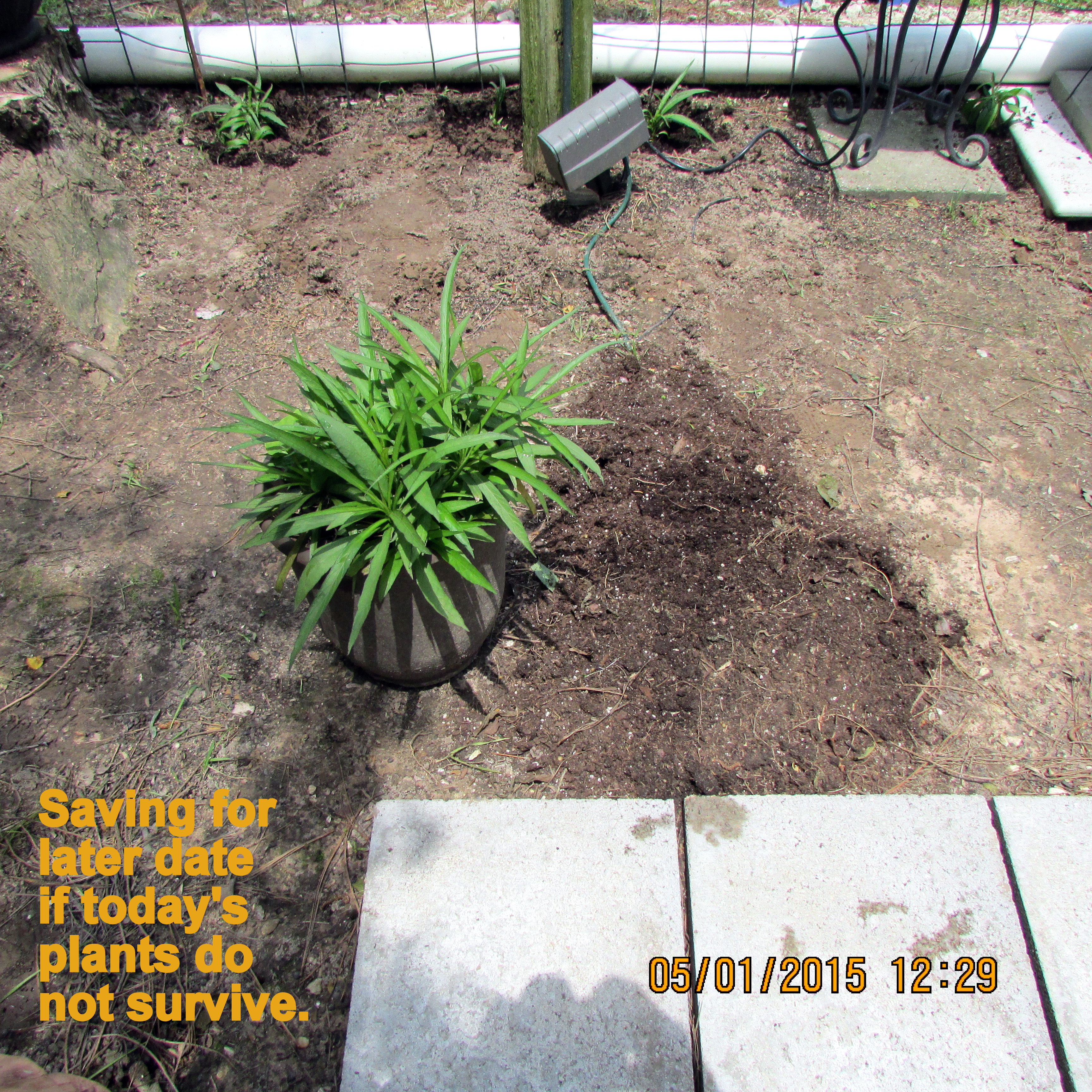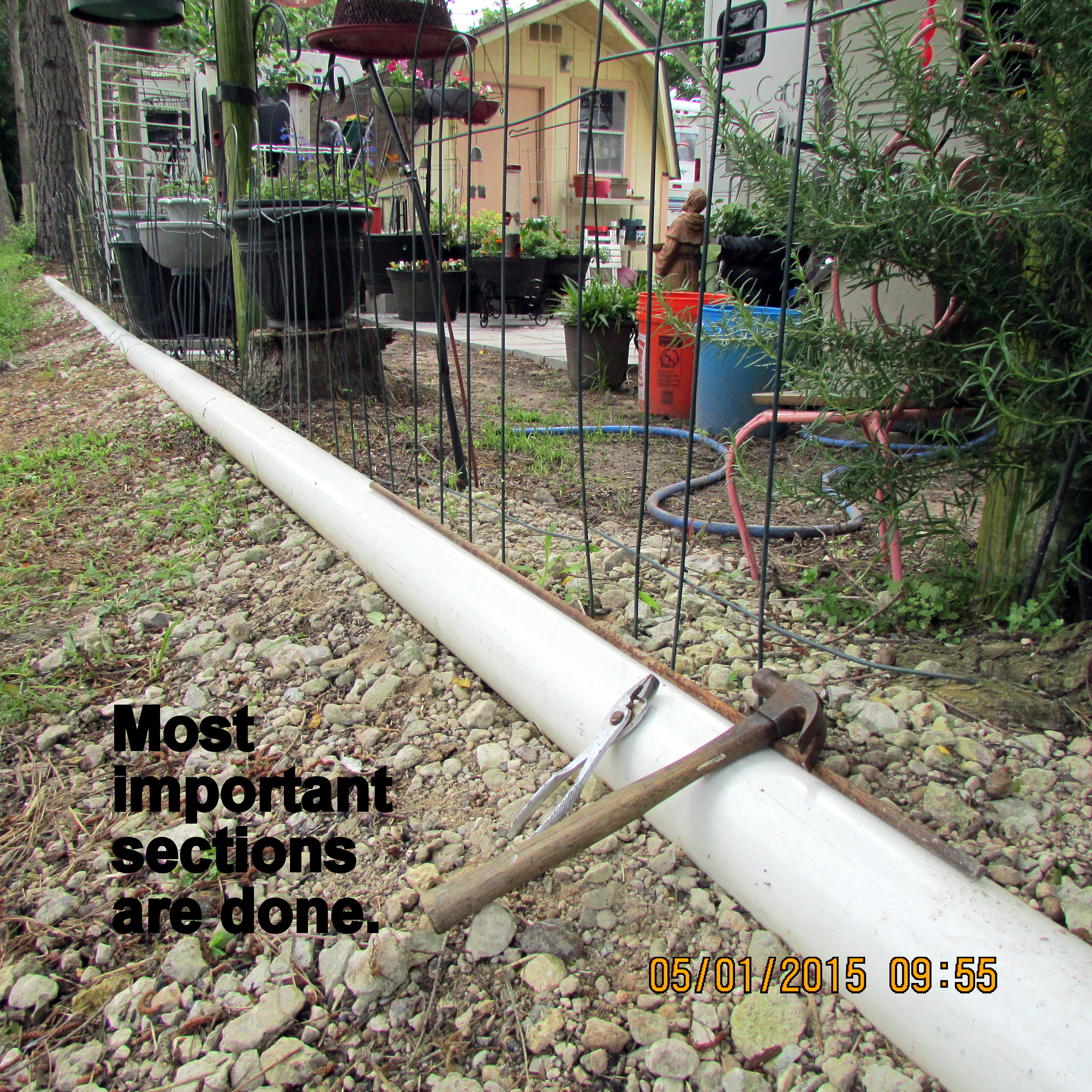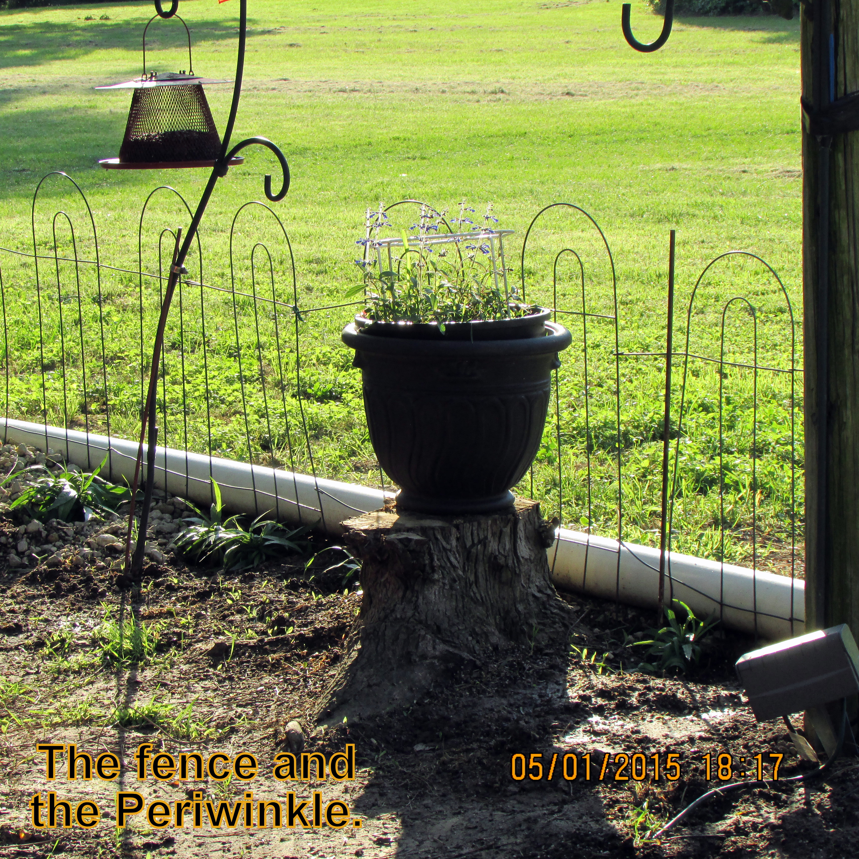 Back again; lunch with Dr. Oz (one o’clock TV program). This morning I planted Periwinkle. (Free plants, from a friend.) I passionately dislike that ugly white pipe!! I wasn’t consulted; “they” just put it there while my back was turned. (And it does not prevent water from accumulating at my site. See recent storm pictures.) So I have planned (for many months) to have “ground cover” camouflage the pipe. Time will tell.