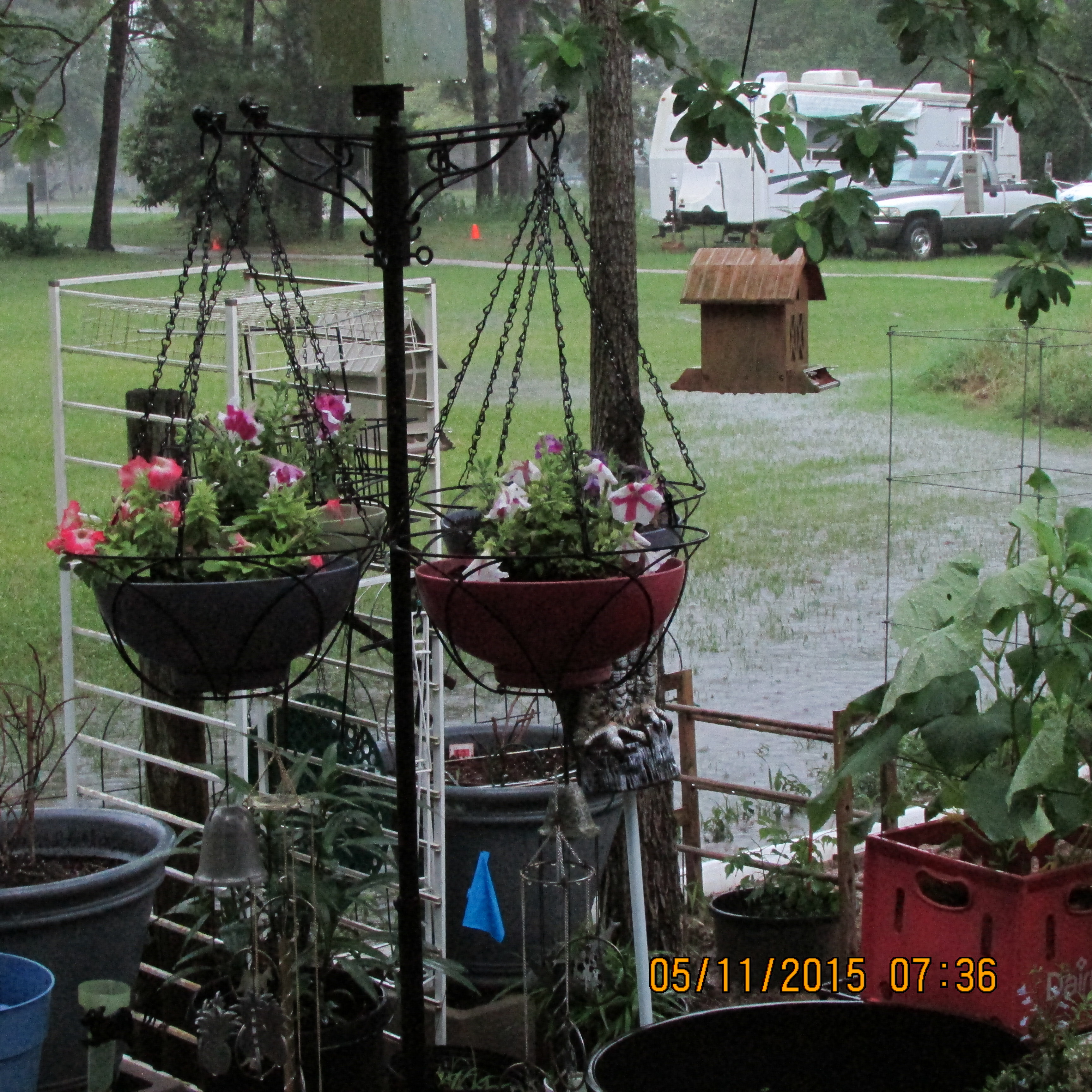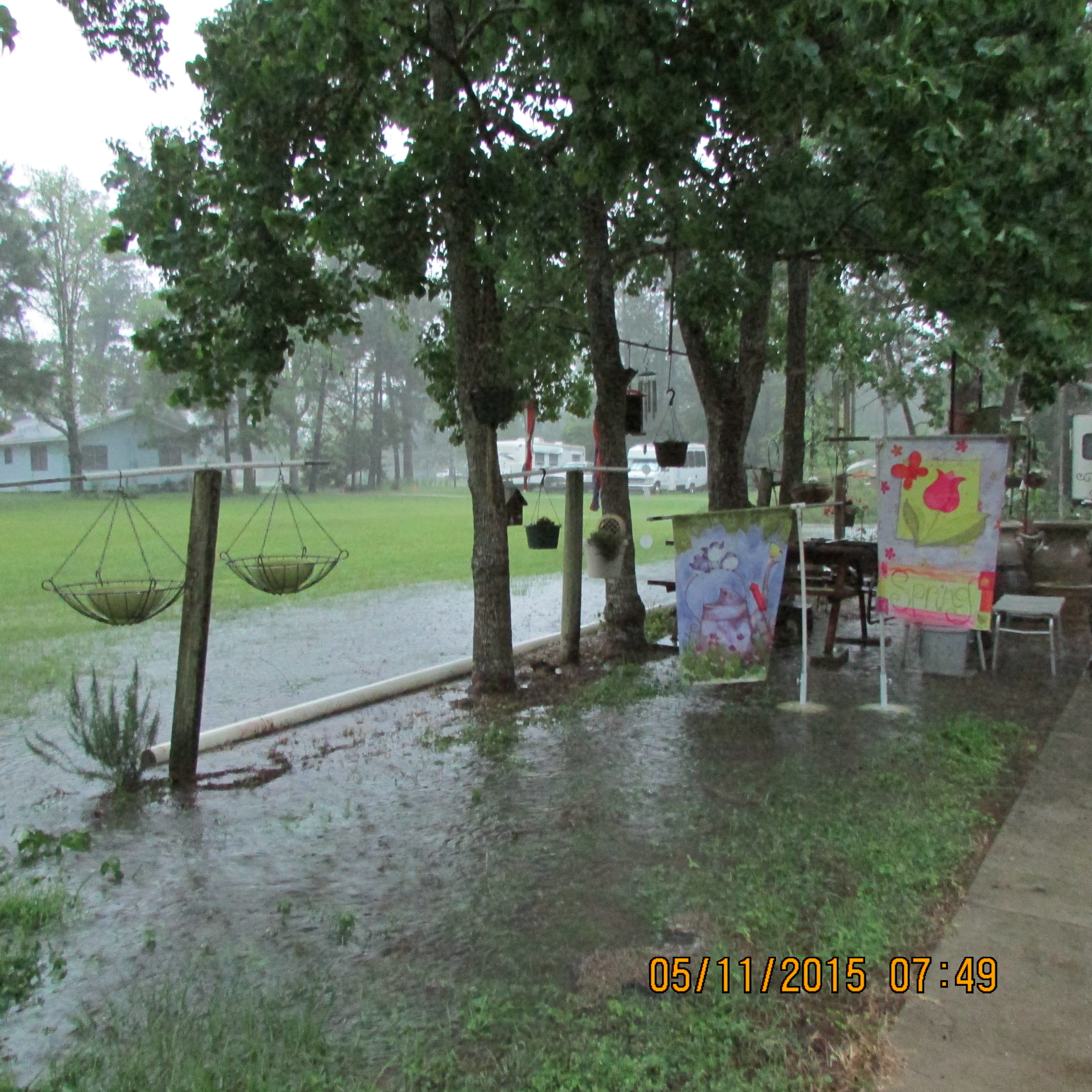 The power was out for about one hour. I went to the CARE Center for coffee and conversation. Prior to power outage, I turned off the computer and TV. Raining very hard right now (10 o’clock) but no lightning and thunder so I won’t turn off the computer. ~~ We can anticipate a week of this type of weather.