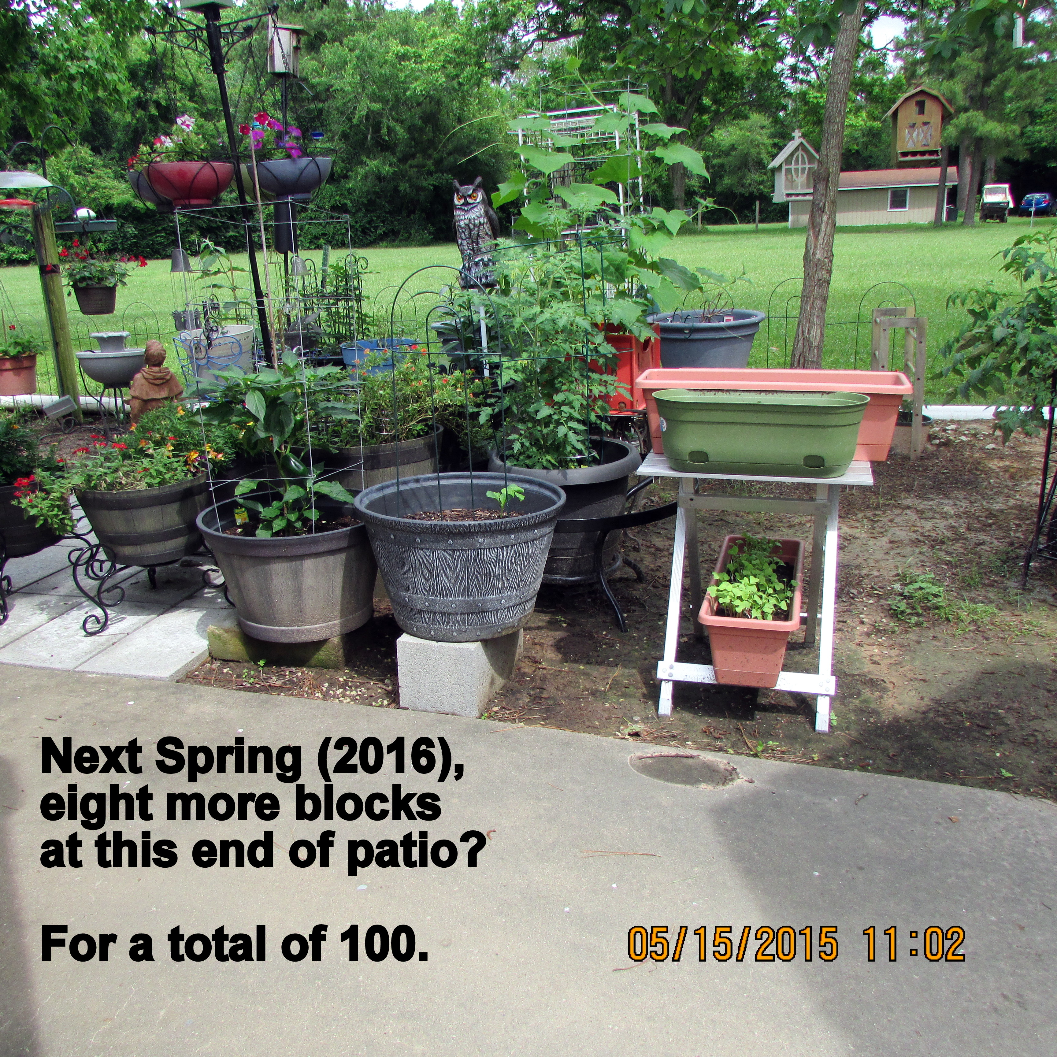 With eight more blocks, I’ll have a nice round number: one hundred. The total expense (with 100) is less than $300.00. Another resident paid over $1500.00 (several years ago) to have a cement patio poured at their RV site.
