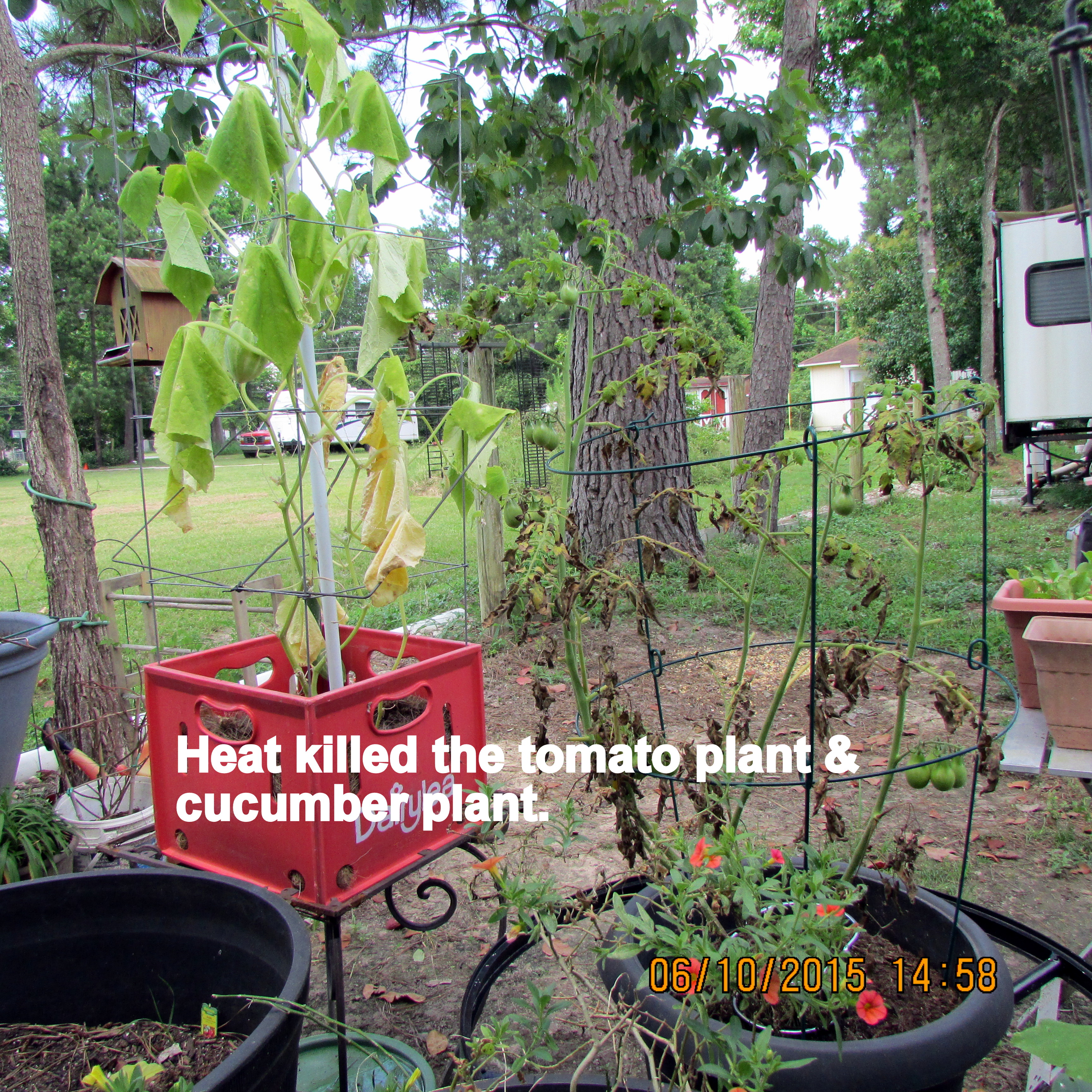 Time to recognize the futility of my labor!! A veggie garden isn’t going to survive in Texas heat. I haven’t approached the project “haphazard“; I check the moisture, I provide fertilizer, I “pamper” my garden. Correction: A veggie garden in containers isn’t going to survive in my yard. This makes me very sad; I really hoped for my own home-grown organic veggies.