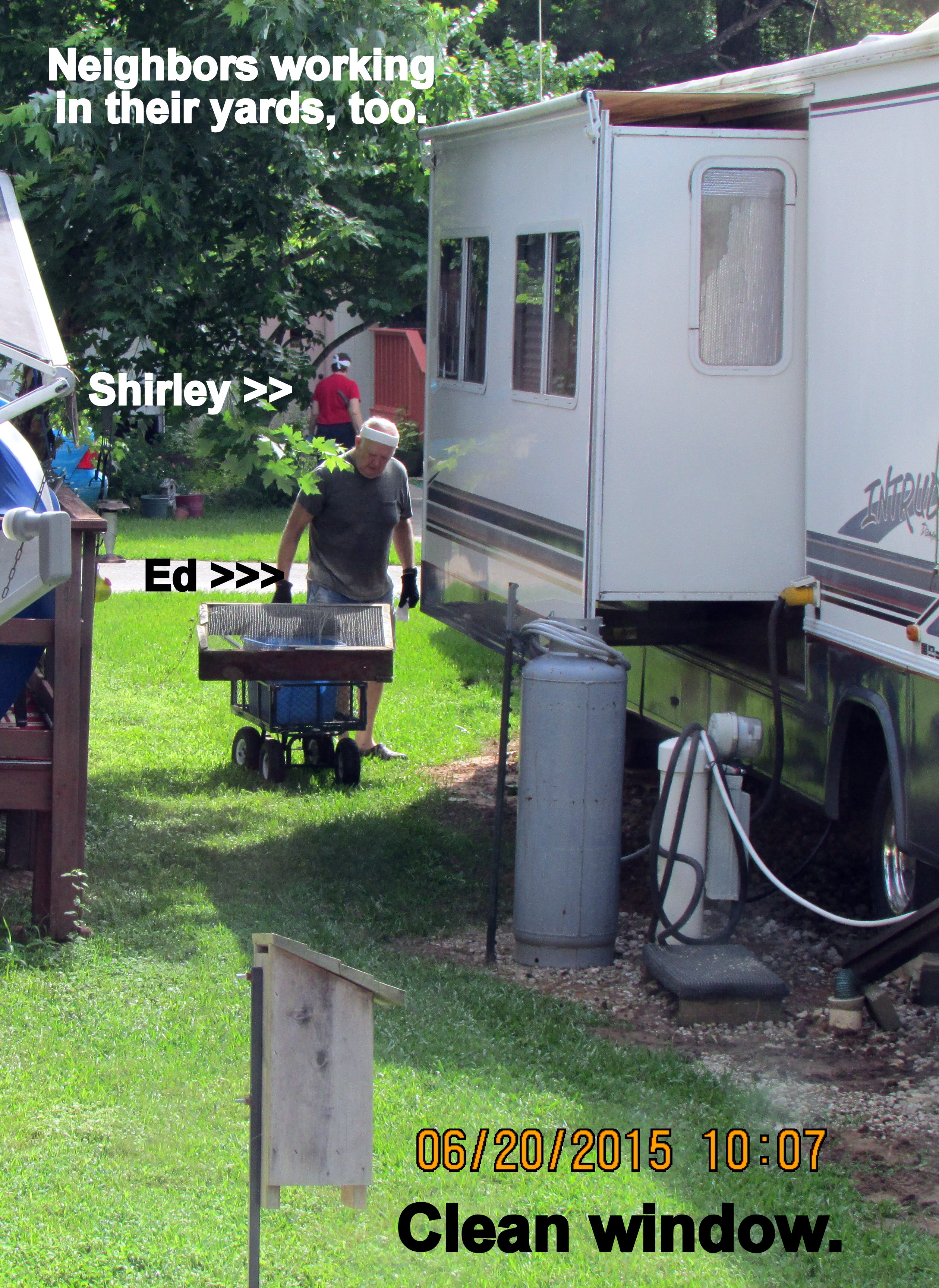 With a borrowed ladder, I determined to clean the dirty windows!! All that Winter grime!! Wow, what an improvement!! (Yes, lots of exclamation marks.) I successfully took pictures of Ruby-throated Hummingbird, Bluebirds, Carolina Chickadee, etc., through the glass but the new view is spectacular. Look at the fourth from last picture. Would you believe that was taken through the glass window?? My neighbors are working in their yards, too.