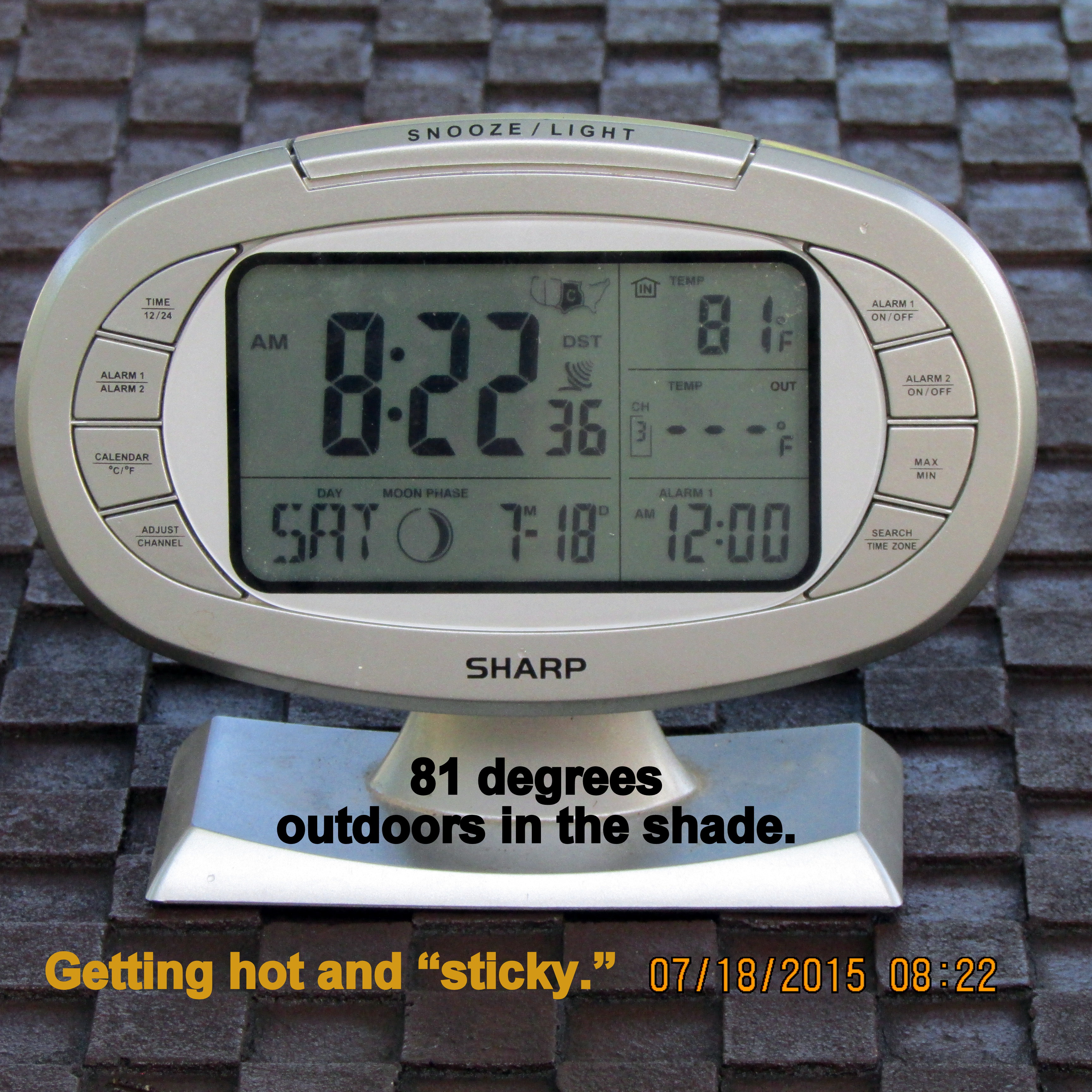 Postscript, Saturday, July 18, 2015, 9:15 AM: I spent a couple of hours in the garden before it got hot and “sticky.” Plants were watered, weeds were pulled, and neglected Hummingbird-Trumpet vine was forcibly encouraged to climb the tree. (It wanted to crawl rather than climb. It was “neglected” because other gardening projects took priority. I’m eager for it to bloom–for my Hummingbird friends.)