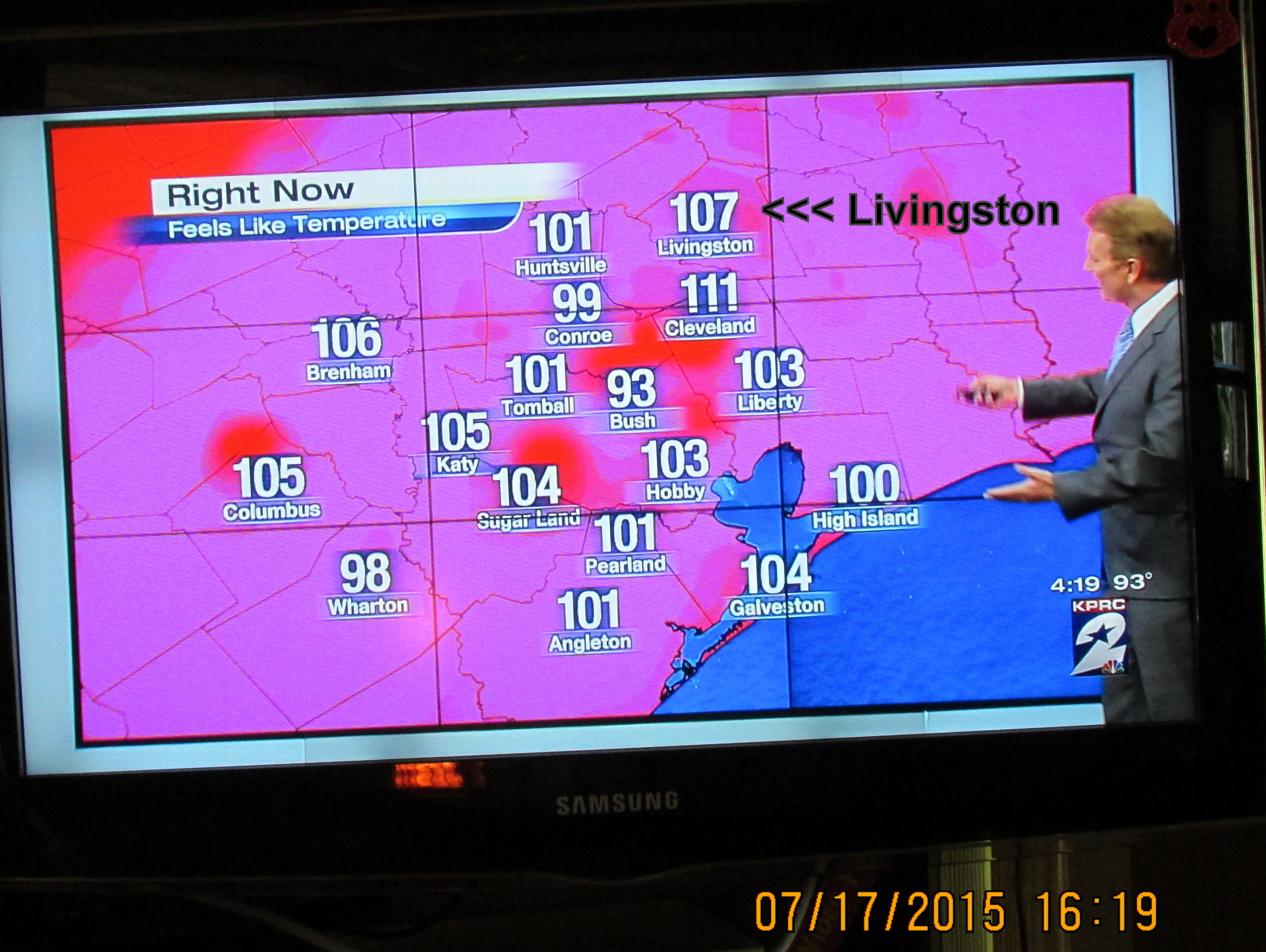 95° — RealFeel® 107° (—– Bold emphasis by Lorraine.)