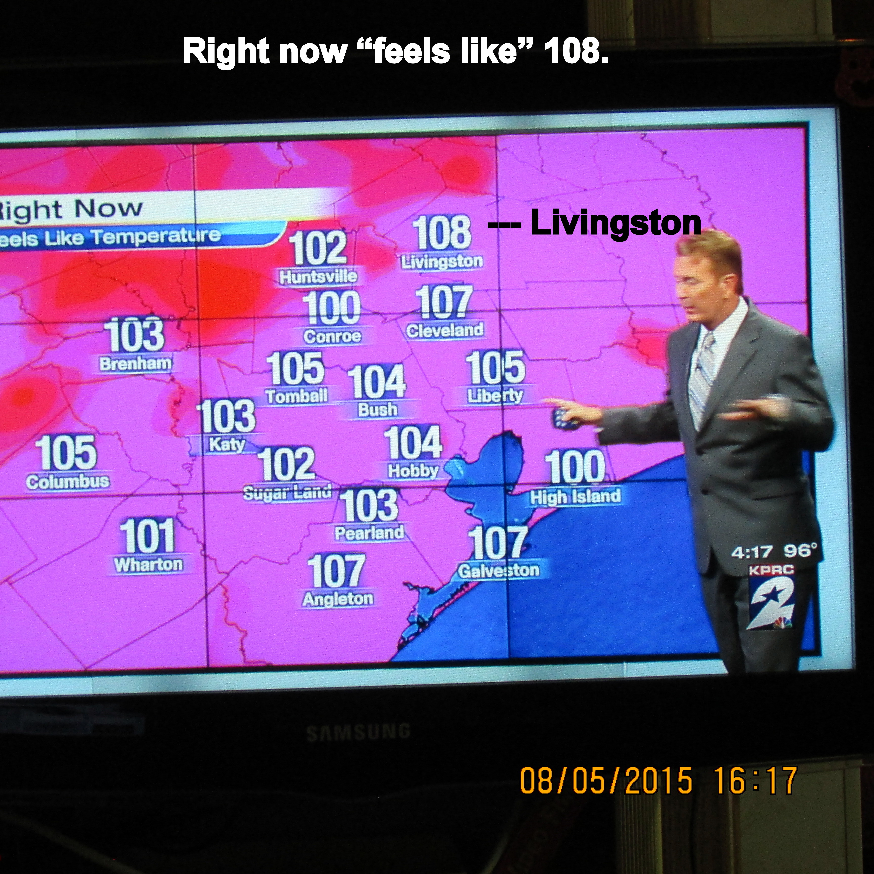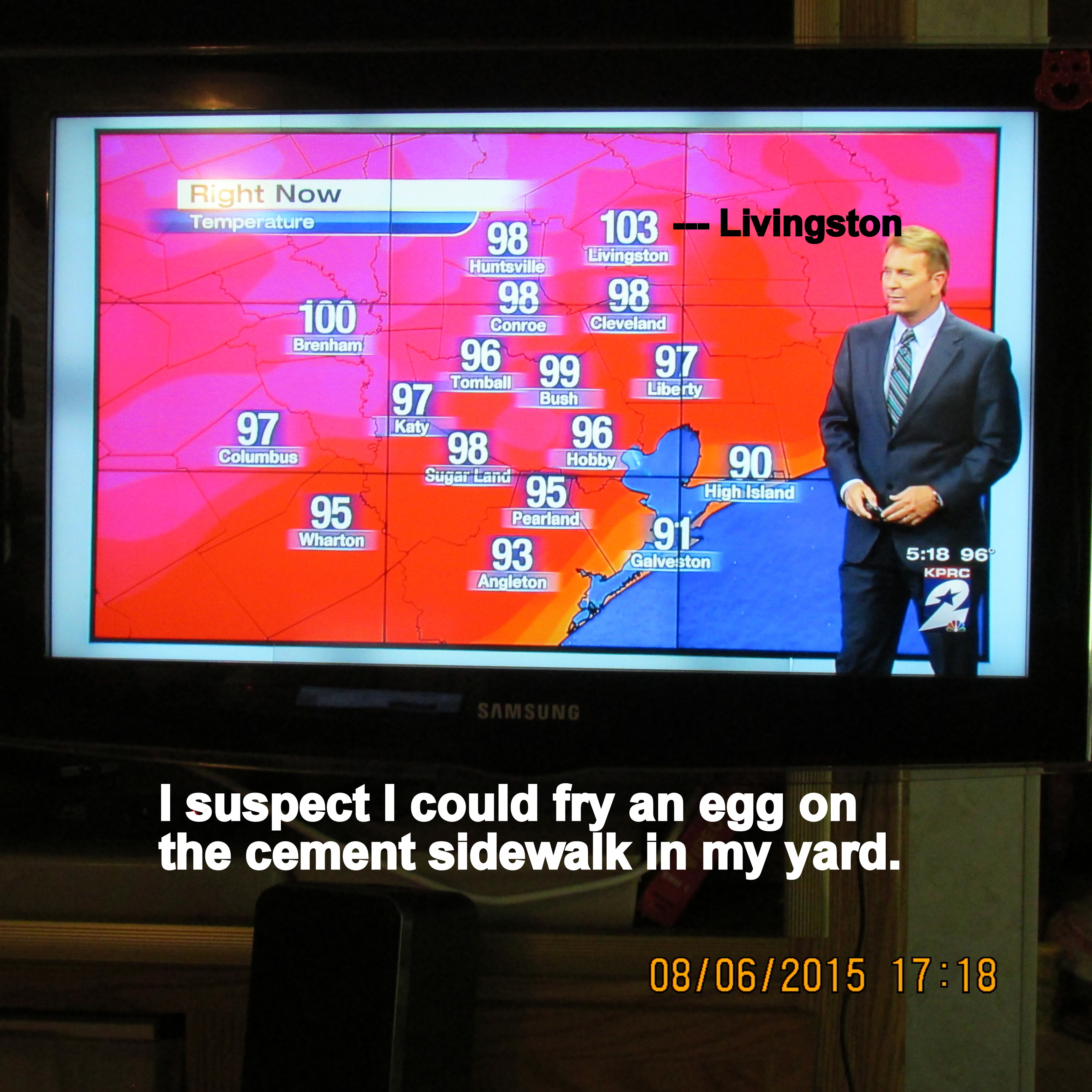 …the temptation to prepare a blog message. (I’m addicted!!) Worked in the yard until nine o’clock. Look, 91 degrees outdoors in the shade at 8:15. Accomplished all the usual: Filled bird feeders, watered the plants, trimmed off “dead heads,” etc., etc. ~~ The prediction is for an extremely hot weekend. We may see an actual 108 degrees. (I’m so grateful the air-conditioner is working admirably!!) ~~ Indoor projects for the remainder of the day. I won’t be going to the CARE dining room for “vegetable soup” (on one of the hottest days of the year).