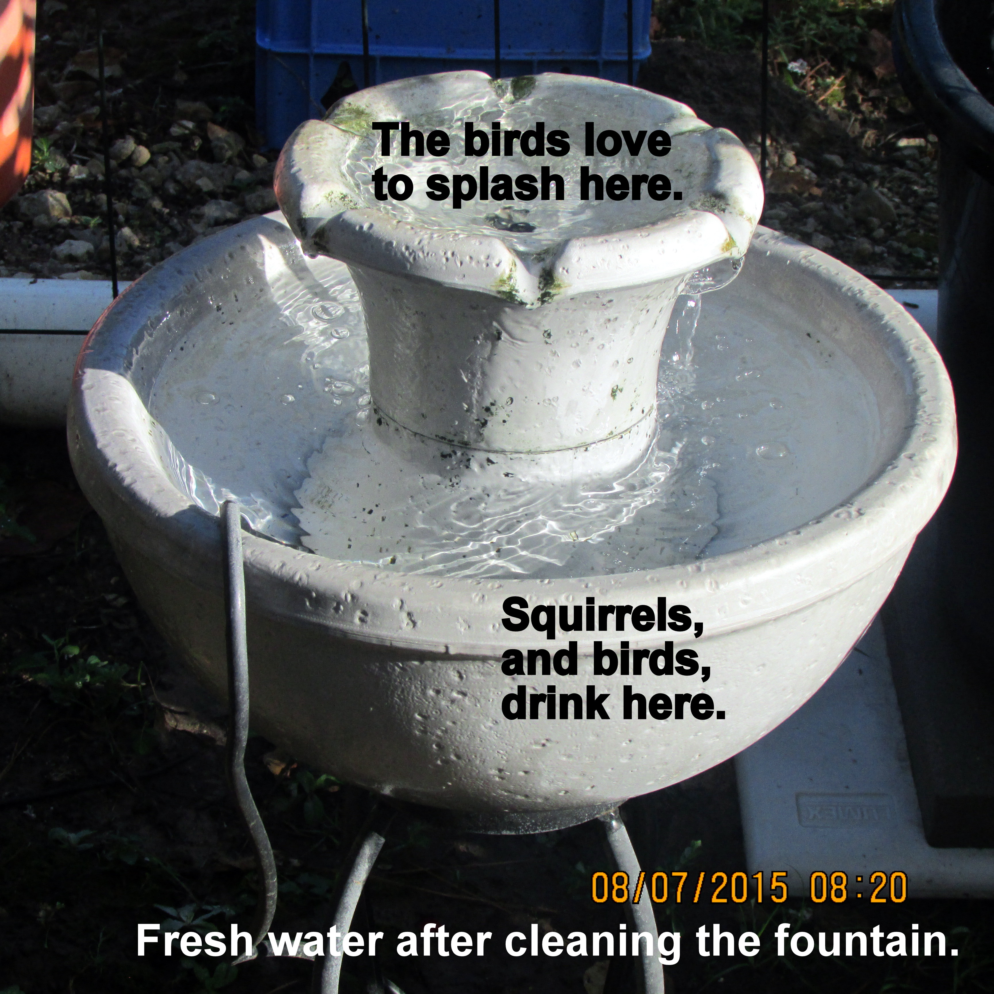 The plants are watered, the fountain/bird bath has fresh water. Bird feeders are full to overflowing; Hummingbird feeder has fresh nectar; Blue Birds have mealworms. It was very pleasant working in the yard–because there seems to be less humidity (or am I just getting accustomed to the humidity?).
