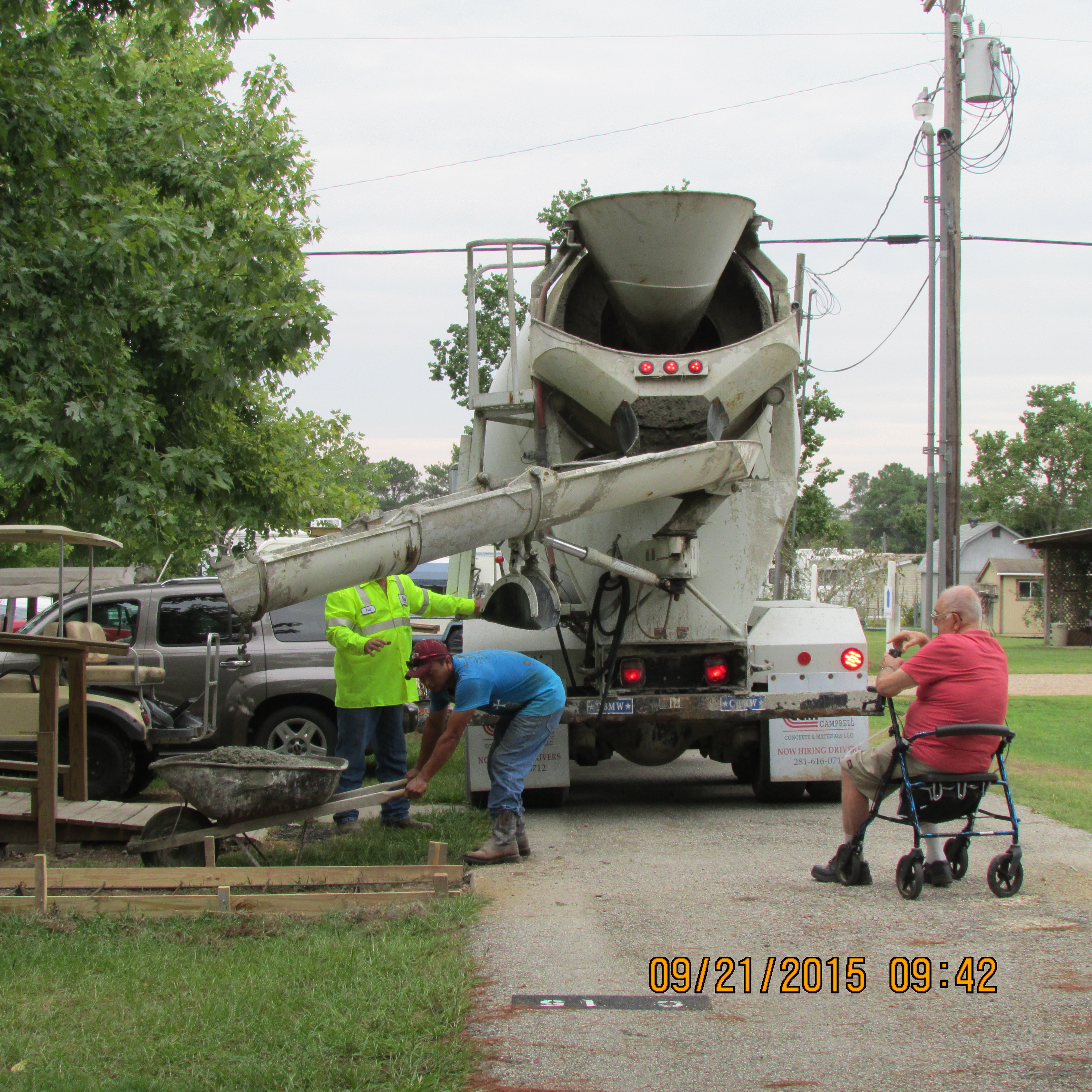 Our CARE Center has maximum residency–and a waiting list. The last two days, concrete slabs were poured for seven new sites. Also, a sidewalk for the convenience of two residents (near neighbors) on the other street.