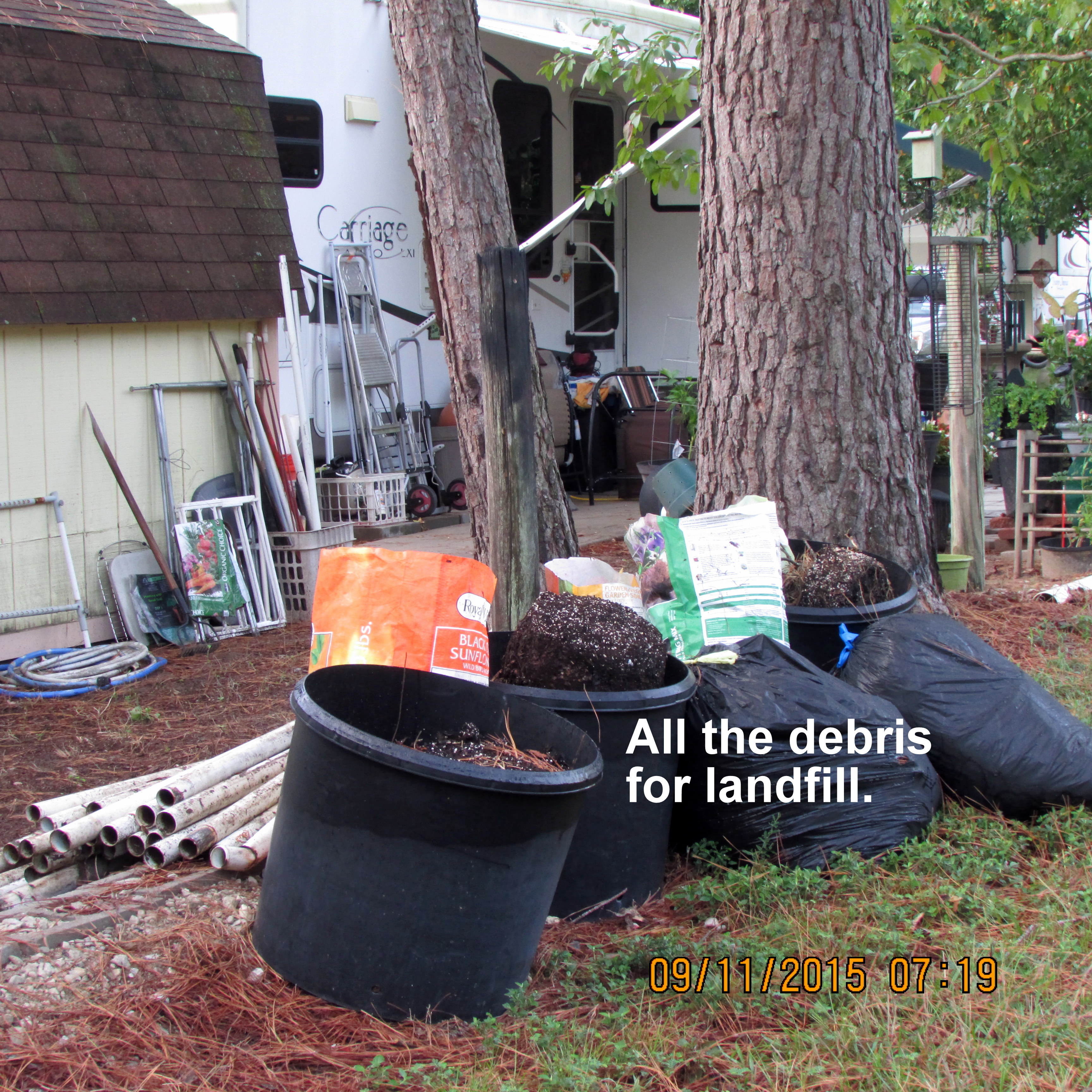 Yard work has been my focus when not working in my next door neighbor’s yard. I have multiple bags of weeds, pine cones and pine needles for landfill. I’ve prepared an area for a “green house.” A friend-resident, in Rainbow’s End Escapees RV Park, gave me the supports from a canopy car port. A strong wind took it down several years ago, and it has collected dirt and rust since then.
