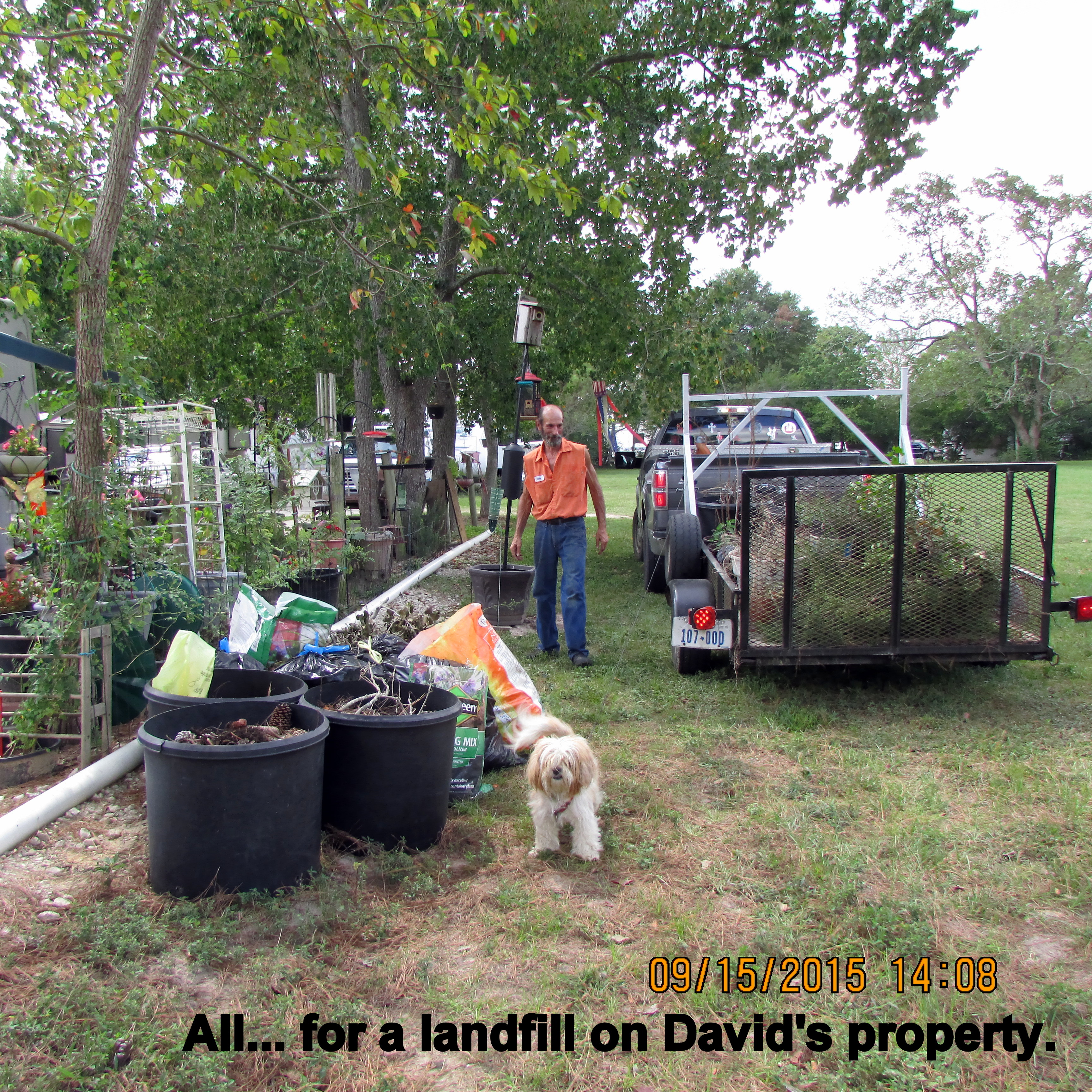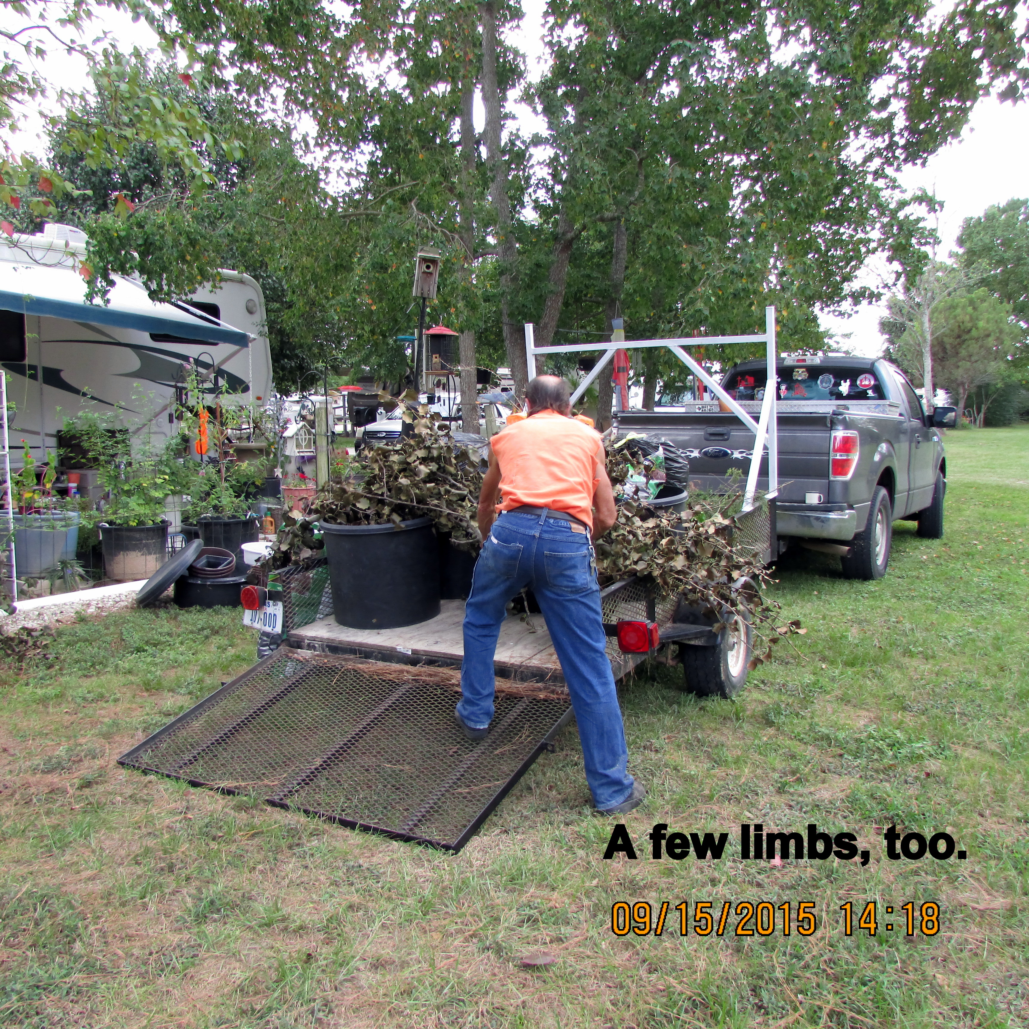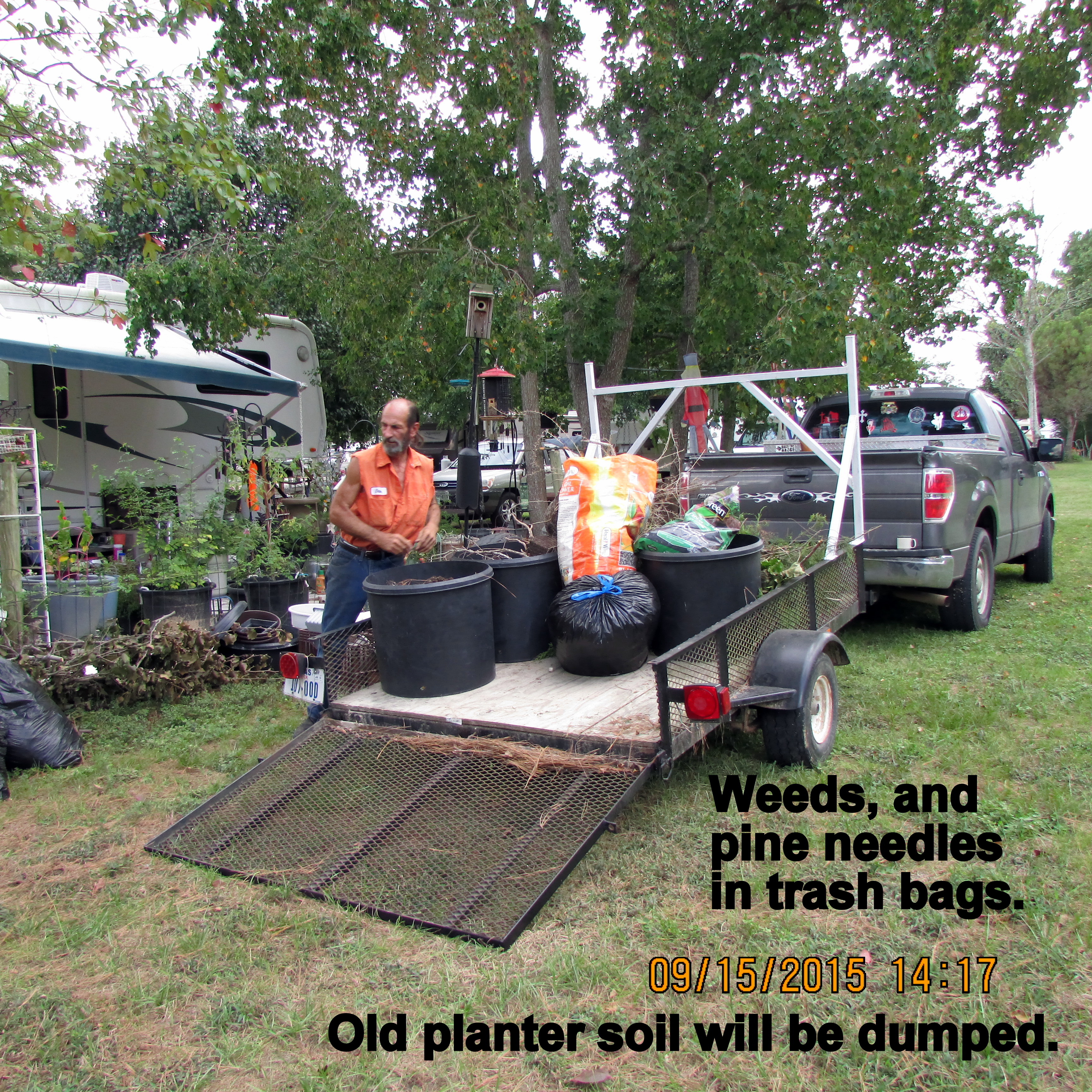 Have you heard that old saying?? Remember my blog message about Lorraine’s a winner? I was given large planters–but they were full of soil more than two years old. I want to start my new plants in fresh soil. David needs limbs, dirt, weeds, and pine needles for landfill on his property. “We” borrowed the utility trailer from another CARE resident; “we” picked up several planters at the original location. Then back to “my place” to load the previously relocated planters plus limbs, bags of weeds and pine needles. ~~ Oh, no!! We hoped it would not rain because David wants to finish the deck and ramp project today. It rained HARD, followed by sunshine. However, at four o’clock we have extremely HARD rain!! ~~ Now four-thirty (prior to publishing this message) and the rain has stopped and sun is shining. Yo-yo weather!!