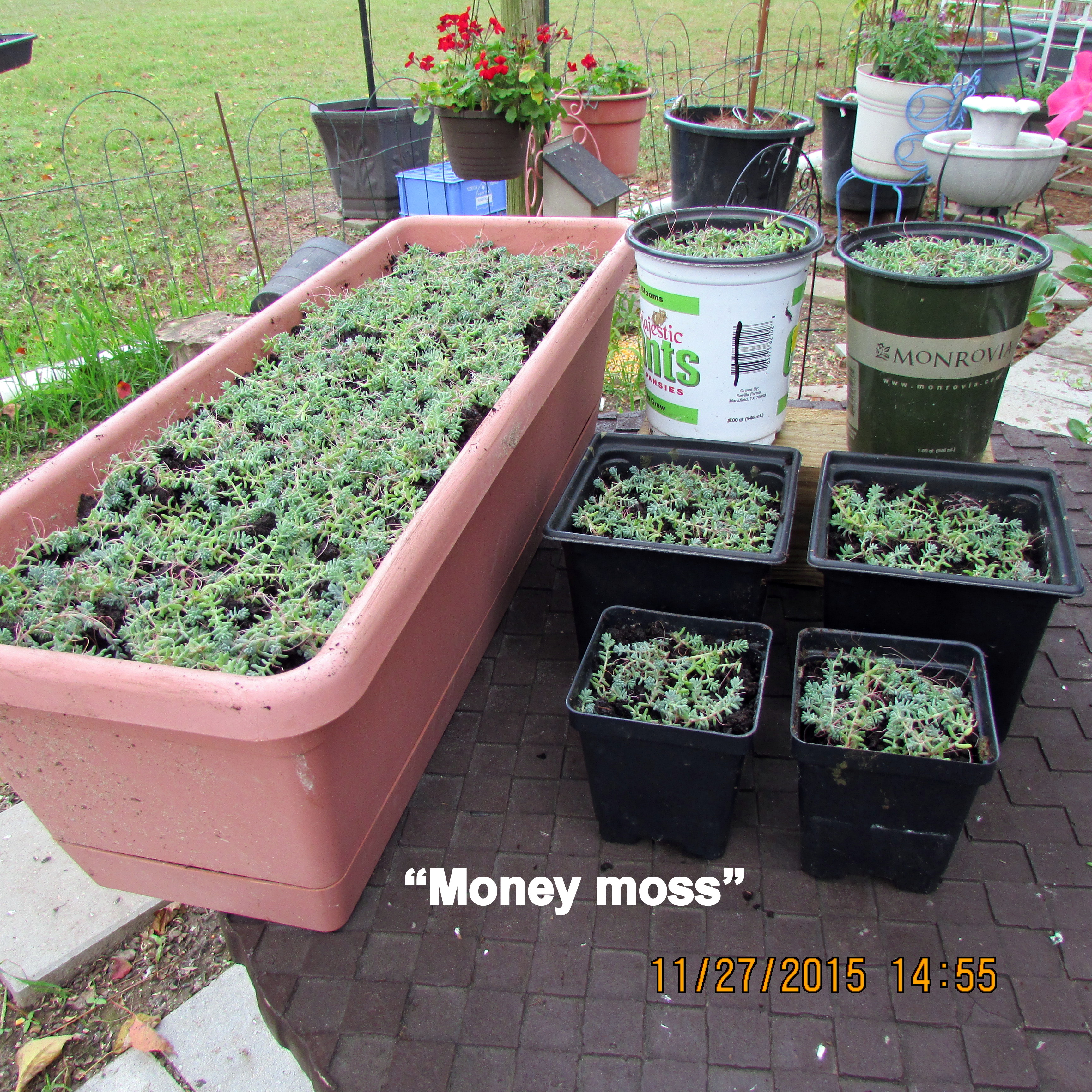 Money MossPostscript, Saturday, December 5, 2015: Belated picture of the “parent” plants.