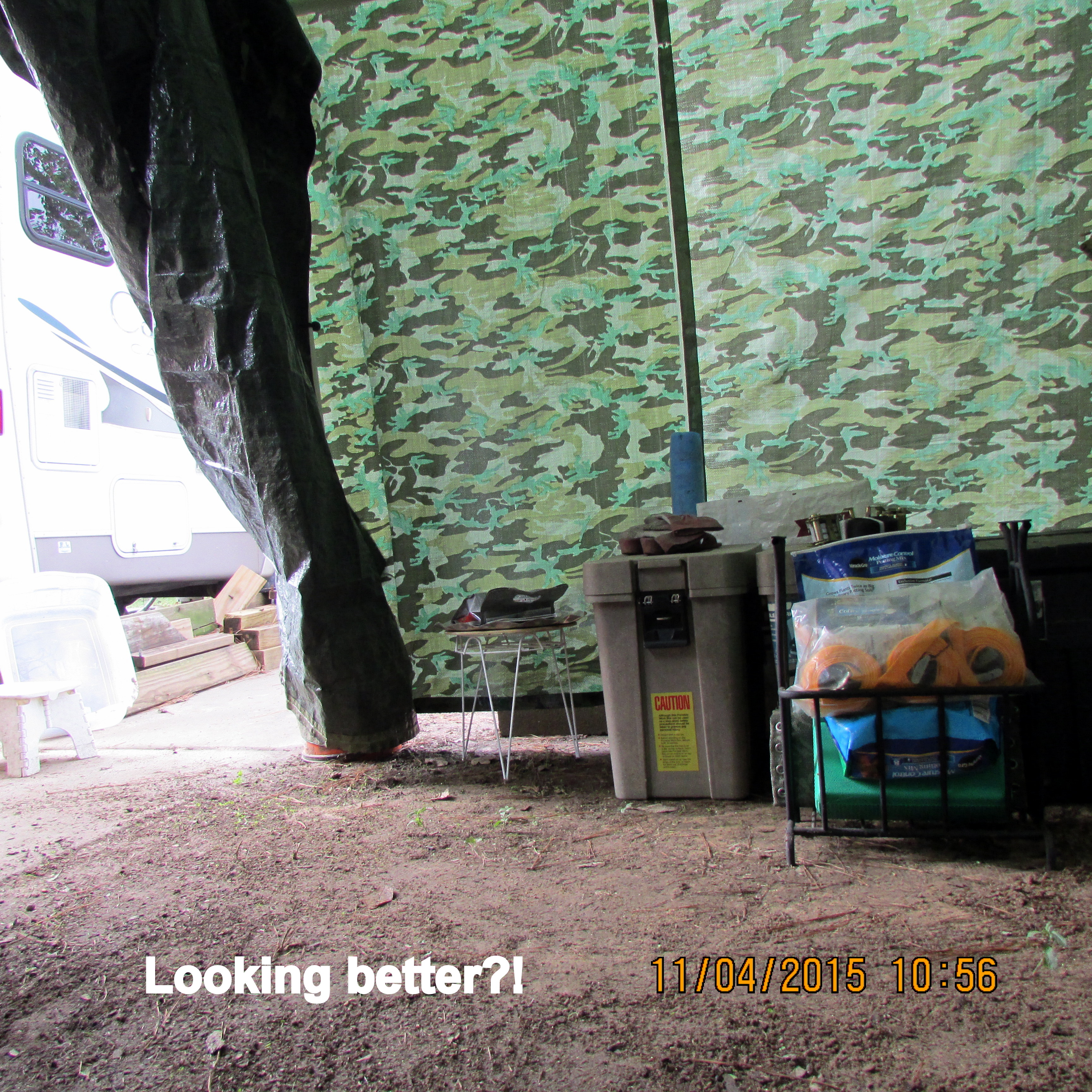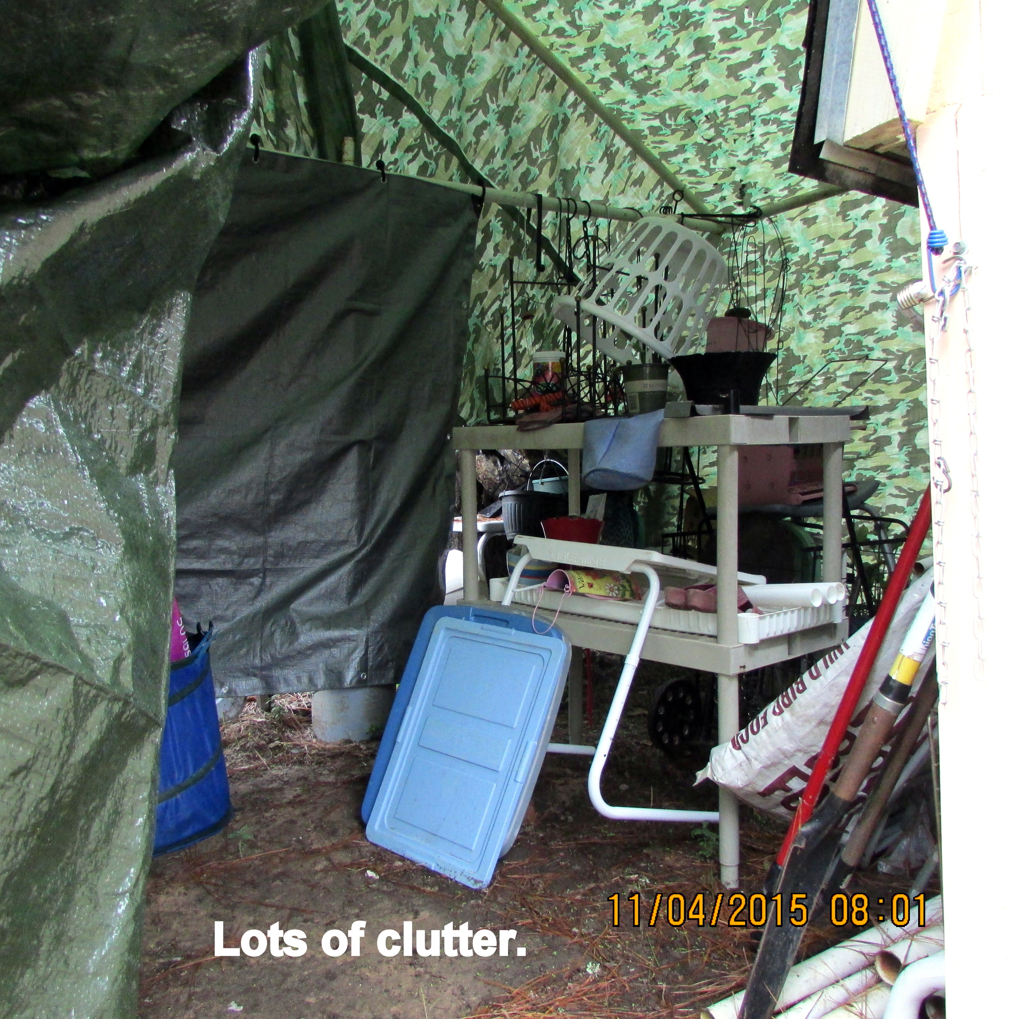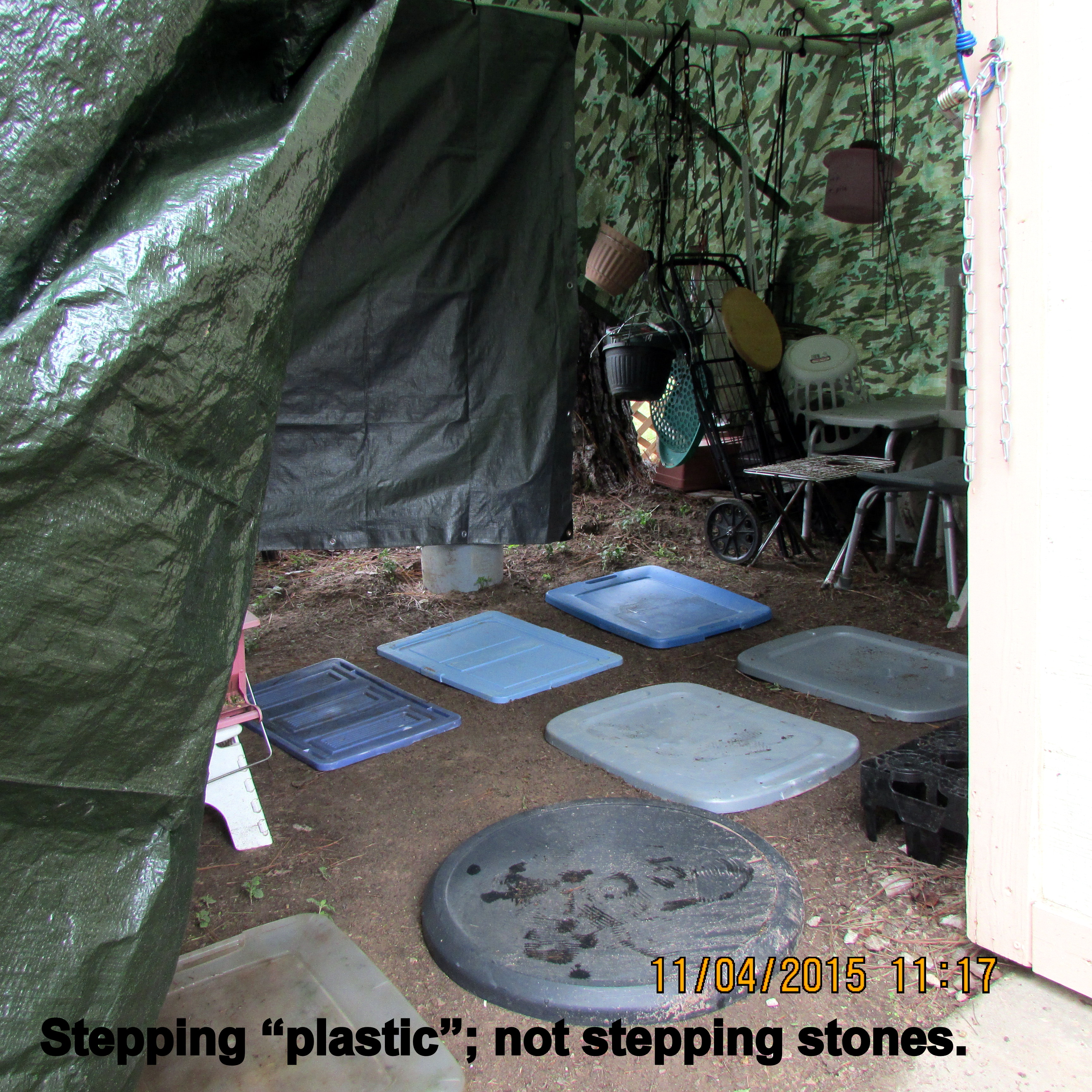 The “target” project, for today, was organization of the shelter. But I raked pine needles, swept debris, hosed off debris, and much more. I’m closer to that day when I move perennial plants under cover when TV meteorologist’ advise us of freezing temperatures. Read “Salvage… to Splendid“ for shelter construction pictures.