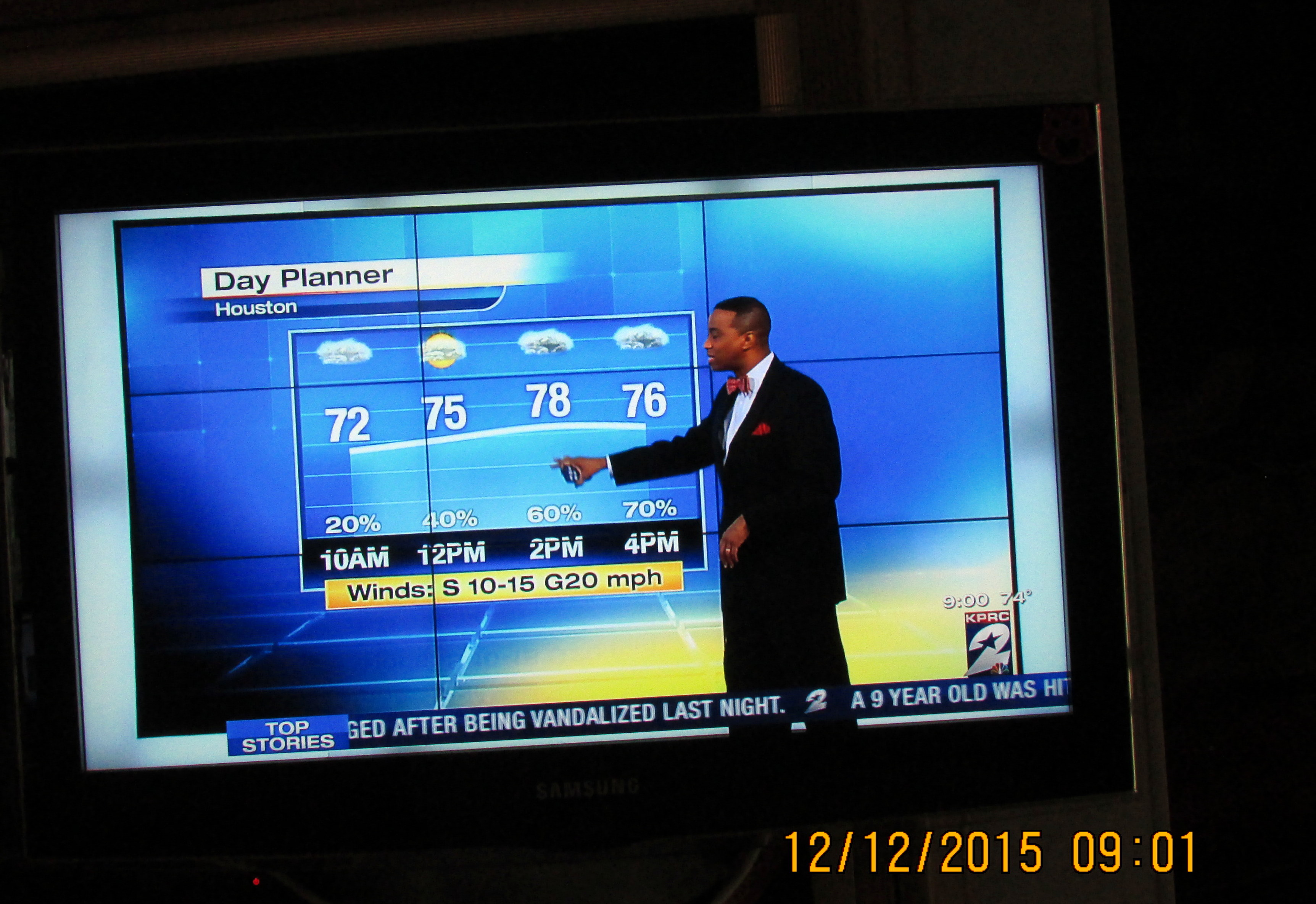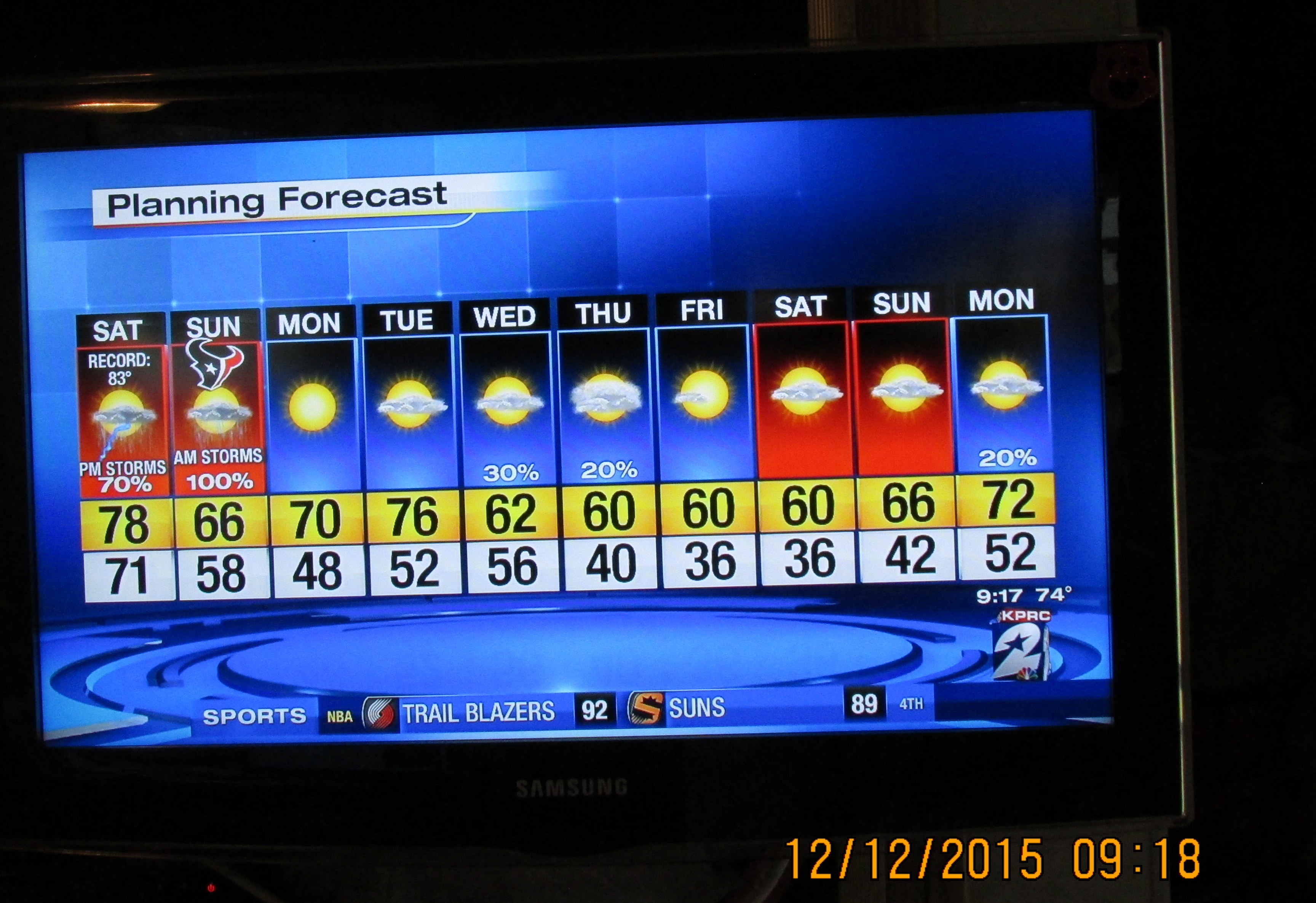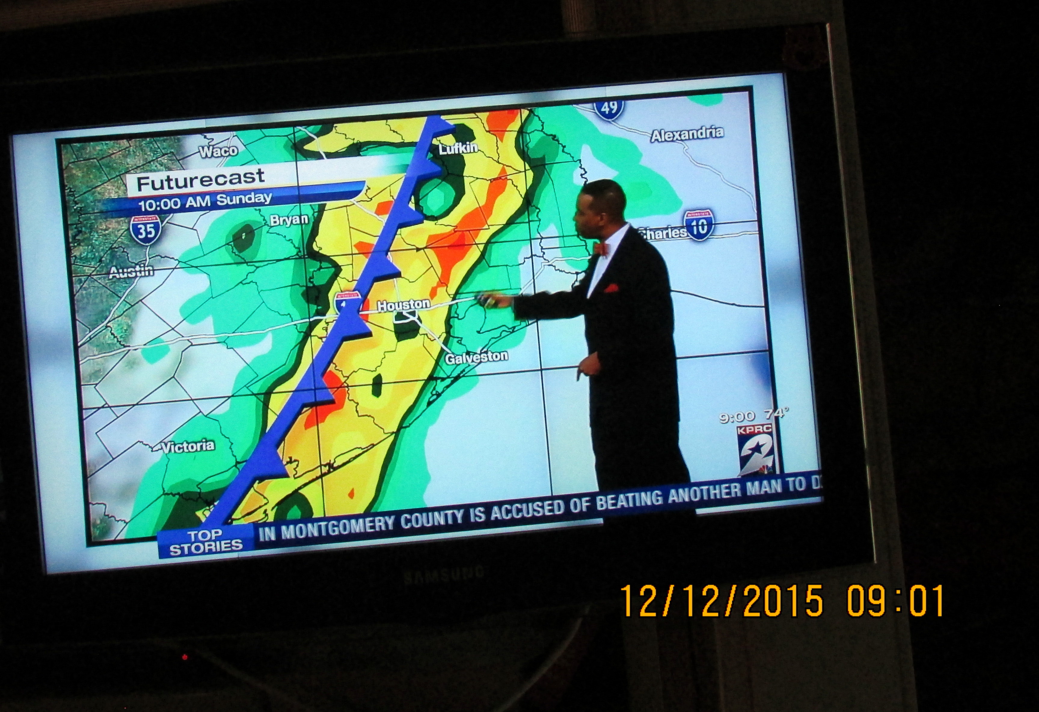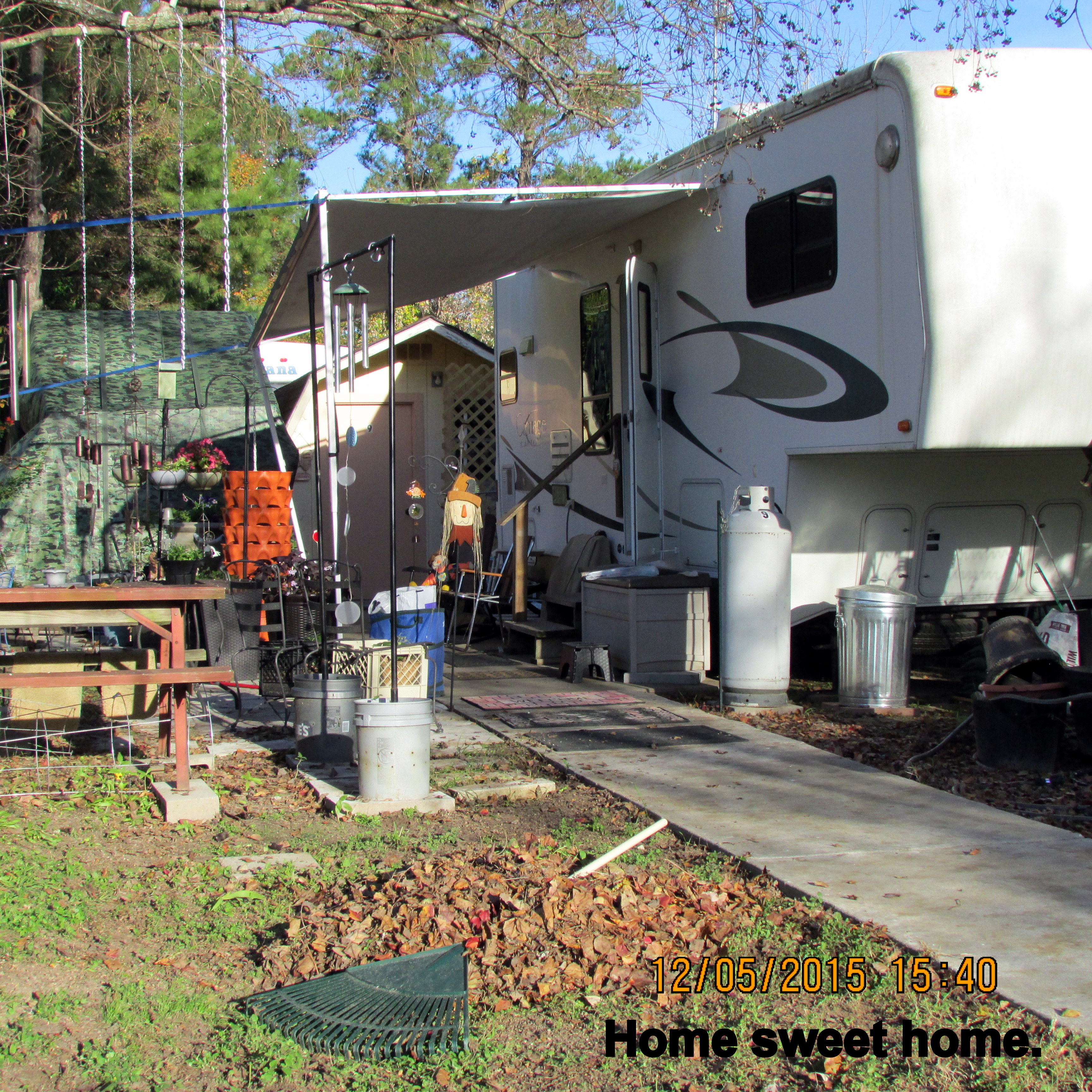 The wind has been whipping the awning. The wind chimes are a delightful concert. The trailer has been “rockin’ and rollin’.” I’m wide awake and ready to comment on our current weather. “Mild”: very little rain; “wild” winds. ~~ The TV weatherman says a threat of tornadoes has diminished but we have “straight line” wind. His map says Livingston is experiencing twelve-mile per hour “sustained” wind. Below my pictures, a copy of local conditions from two Internet locations. Gusts thirty-one miles per hour. ~~ Check my earlier Rockin’ and Rollin’ blog message.