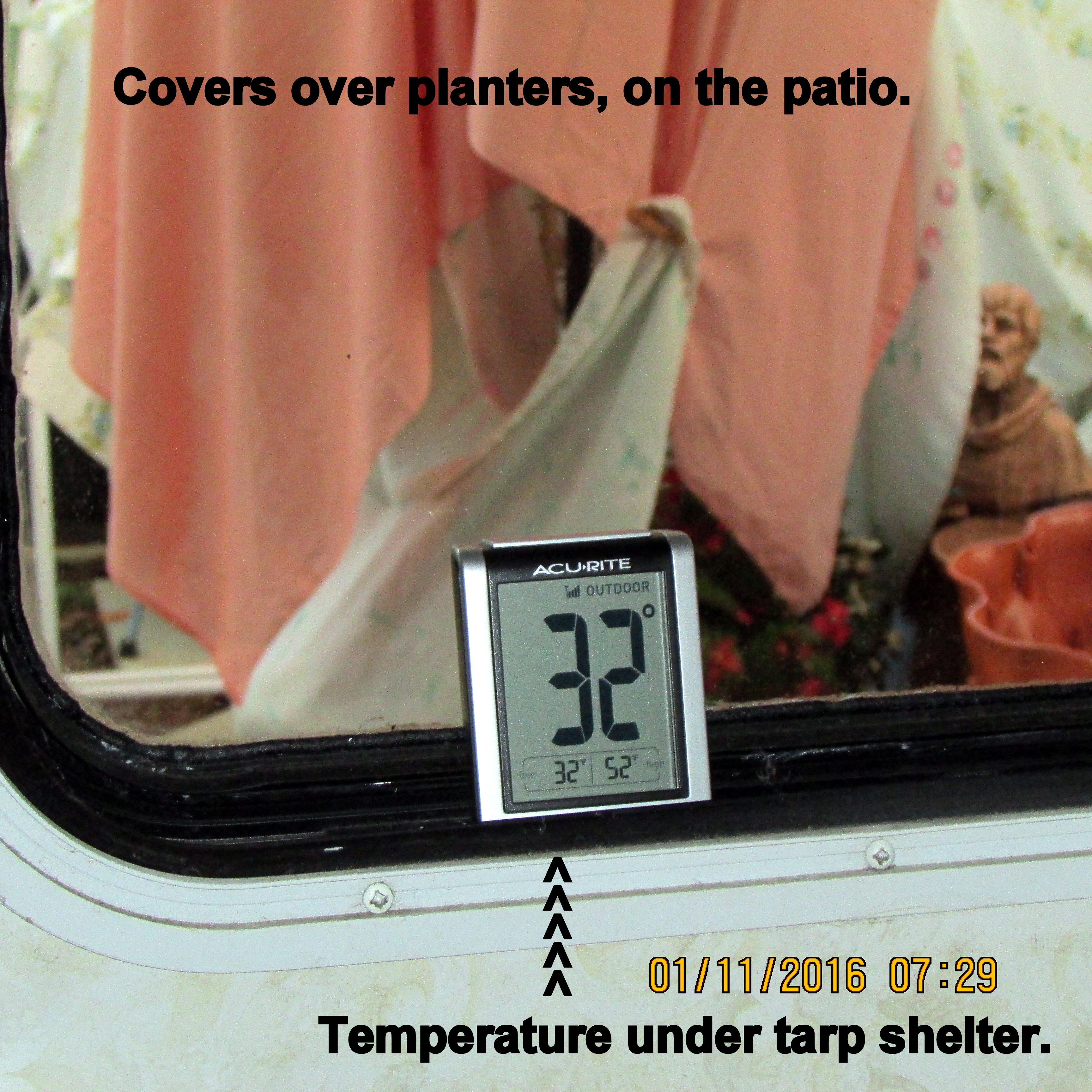 Honestly, in my humble opinion, the newly planted Begonia, and Kalanchoe, are too fragile for the tarp-shelter. Selfishly, I don’t want to lose the plants to freezing temperatures Friday night/Saturday morning. ~~ Tomorrow I’ll cover the outdoor plants too large to move under cover.