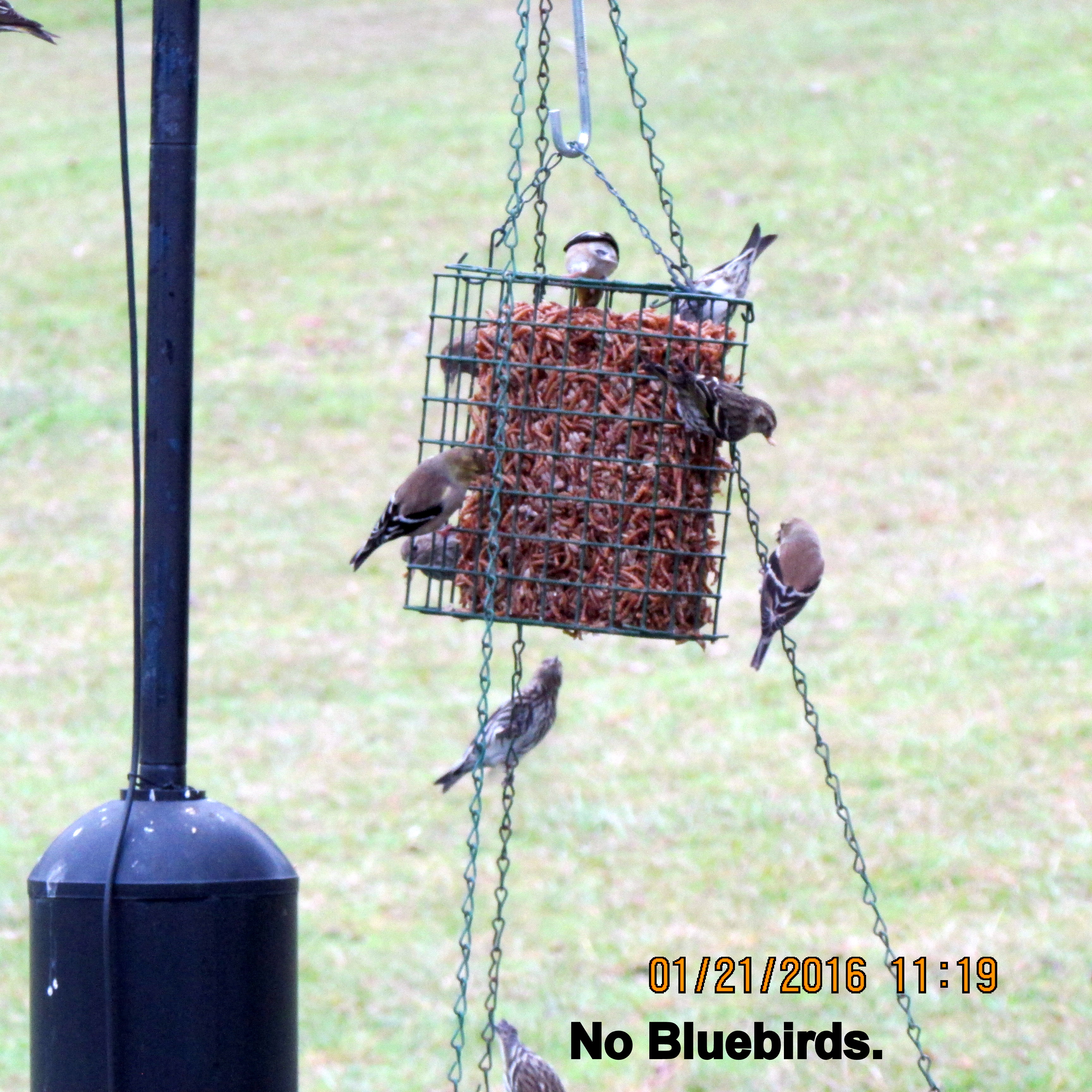 **Postscript, Thursday, Jan. 21, 2016: Lots of birds on the feeder–but no Bluebirds.