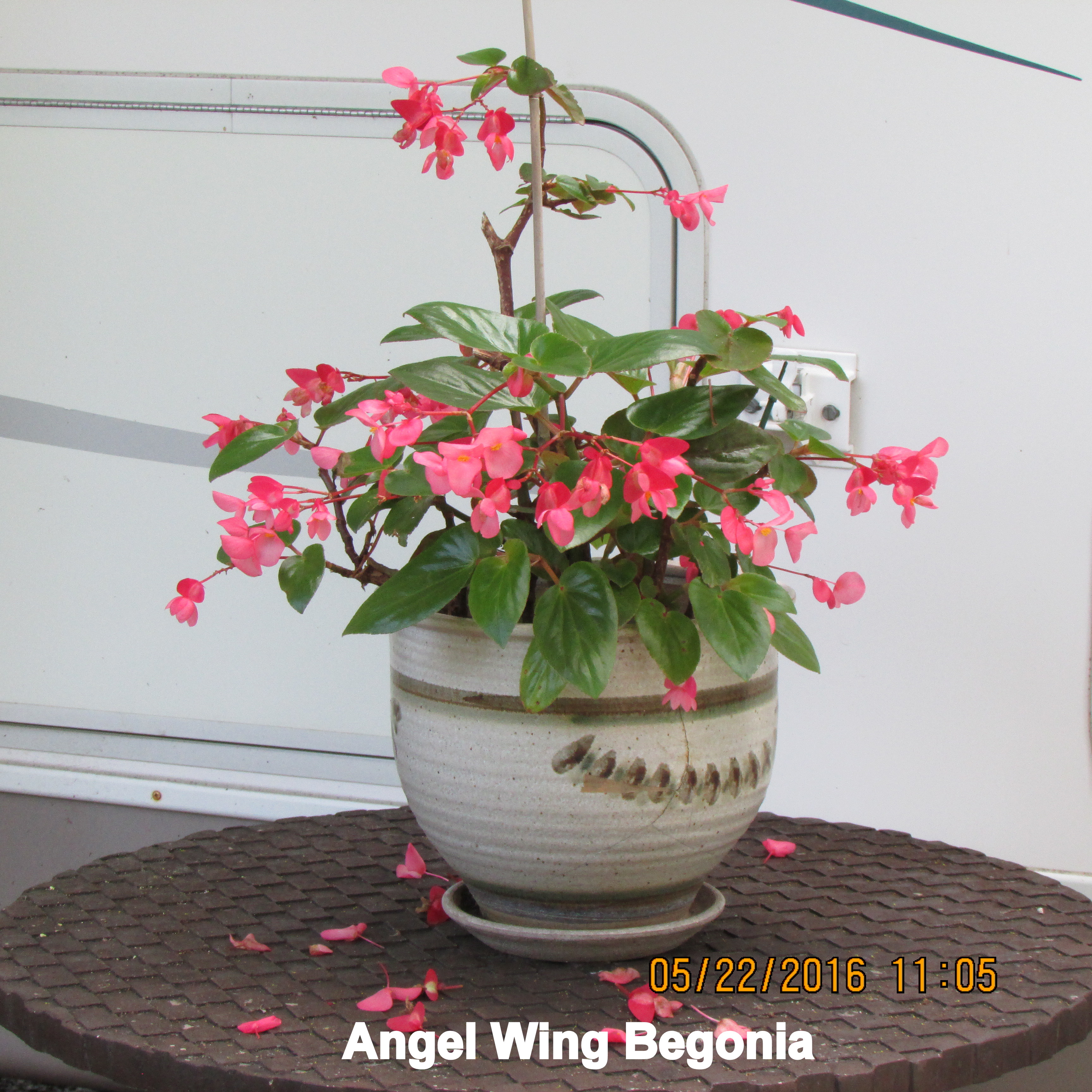 A CARE resident walked by my yard mid-morning and said “Too much work.” My reply: “It’s such good exercise; it’s a great place to work.” She persisted: “Too much work.” ~~ Later, a lady stopped by to pick up the Angel Wing Begonia. (I was the “foster parent.”) She, on-the-other-hand, raved about how beautiful it looks. So I am delighted someone appreciates my hobby. 😉