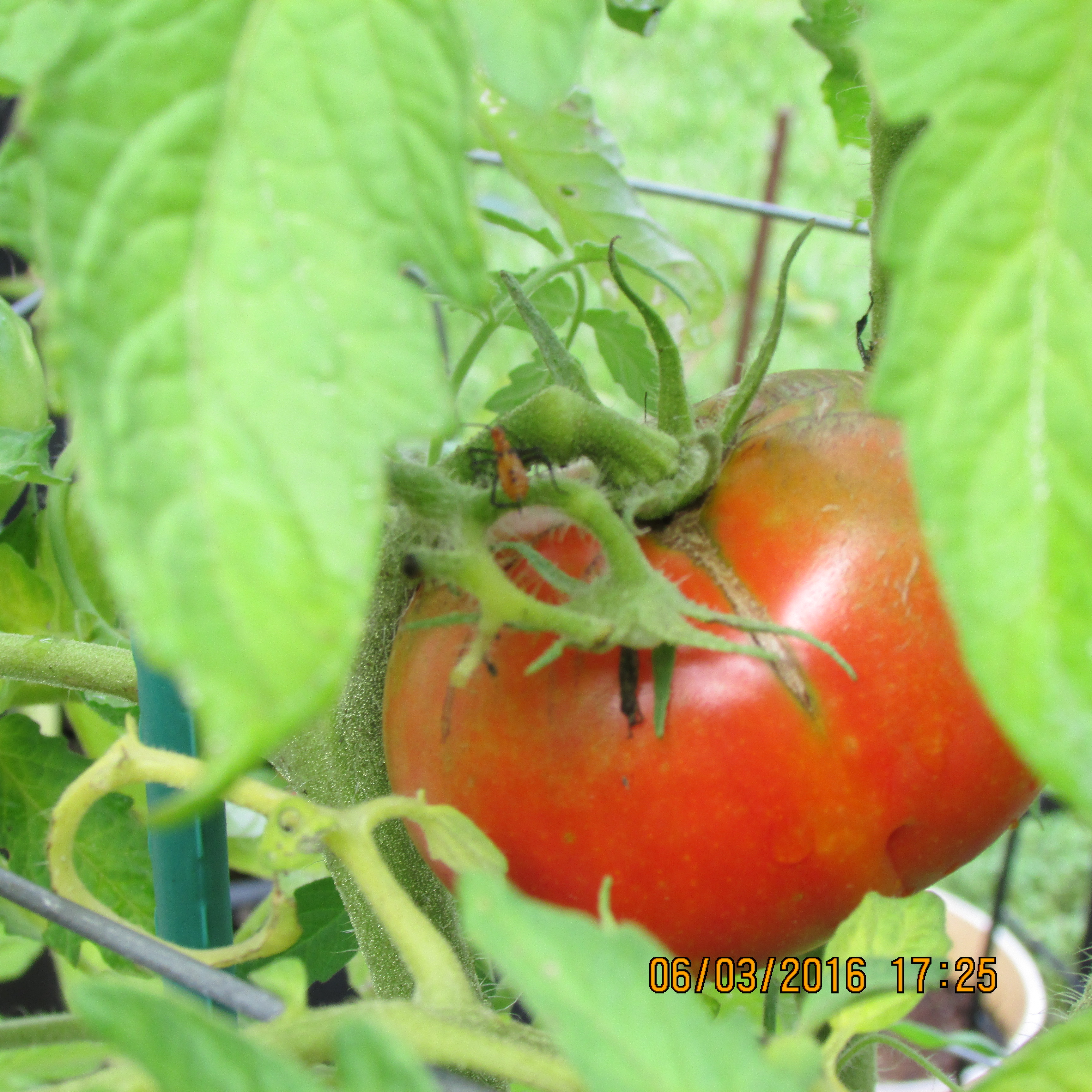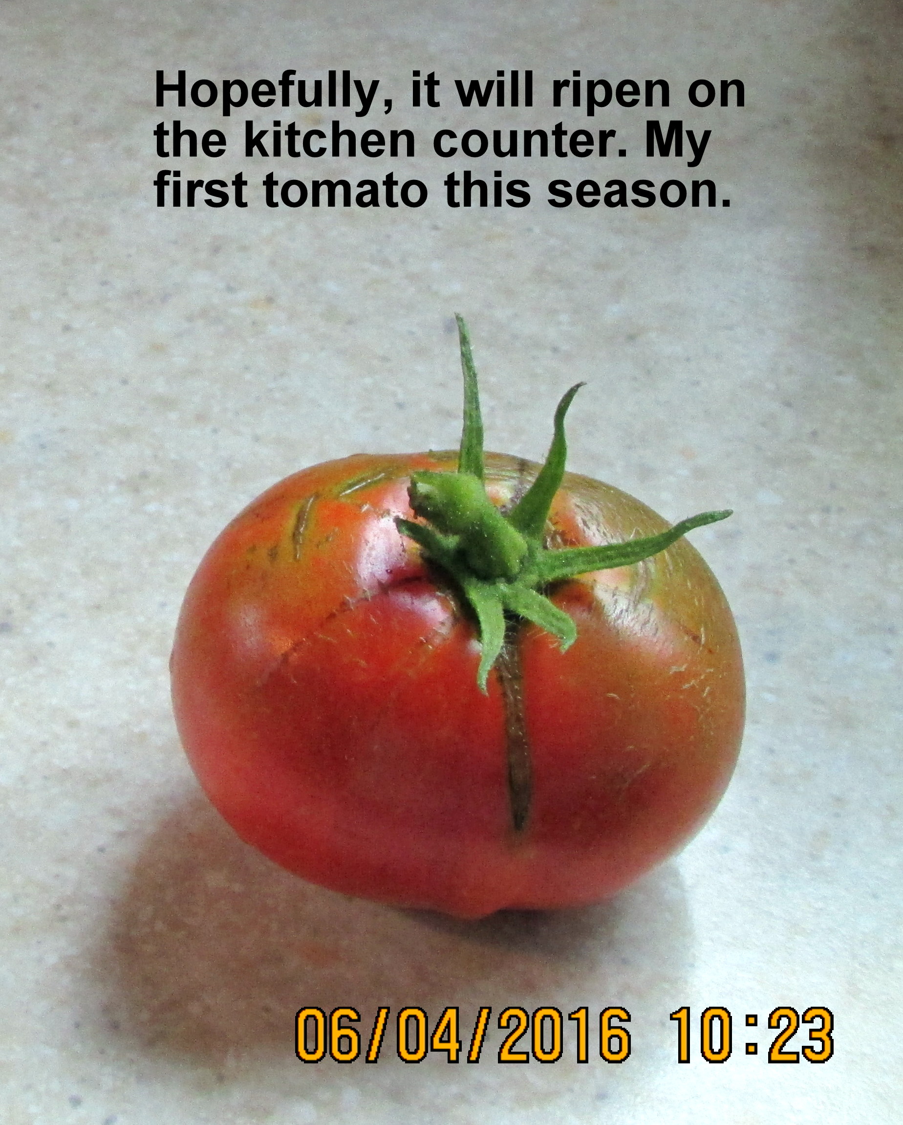 Postscript, June 4, 2016, 10:30 AM: I’m selfish!! That’s “my” tomato and I don’t want to share it!!