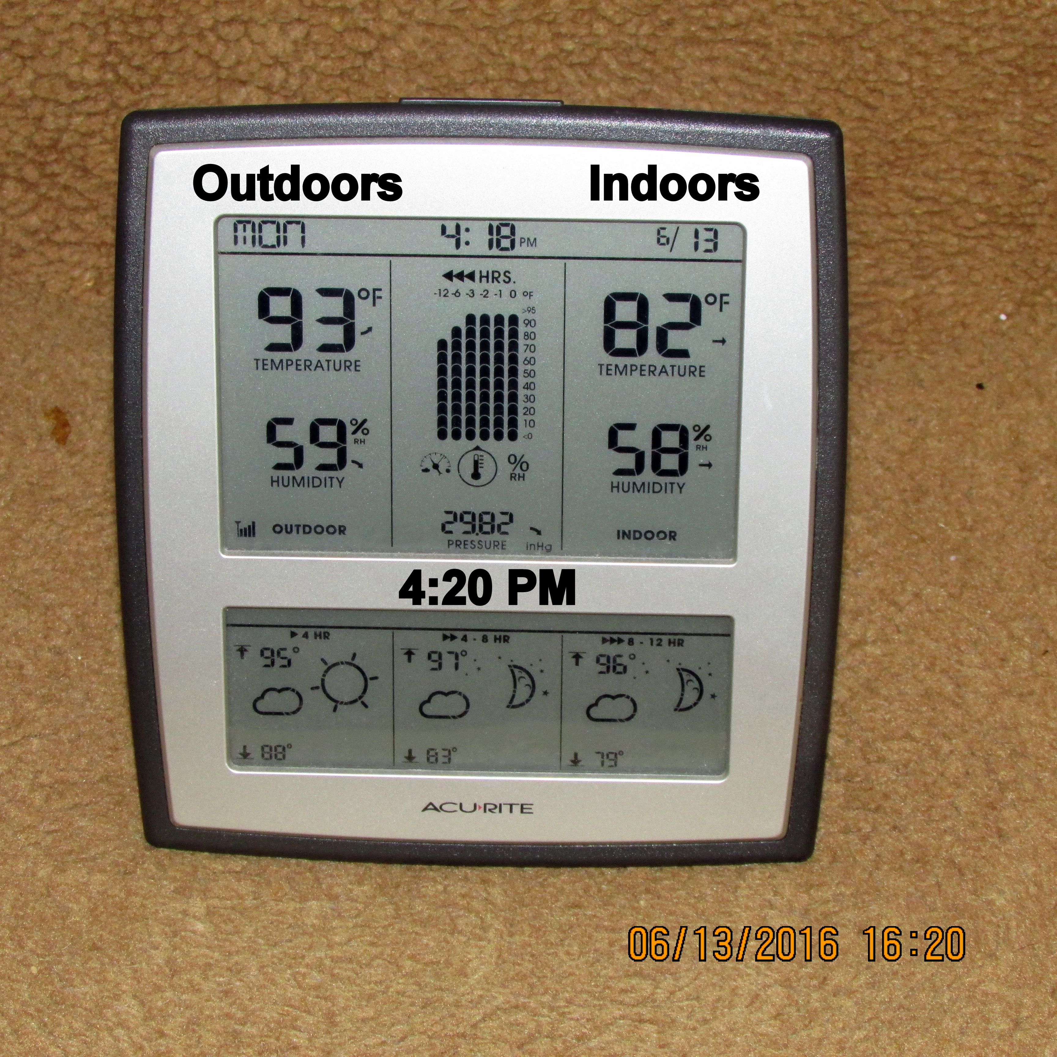Smiley face sweatingAt 2:30, my thermometer says ninety degrees but “feels like” temperature is ten to thirteen degrees higher. Yes, TV meteorologist’ are hiking the temperature as much as thirteen degrees!!