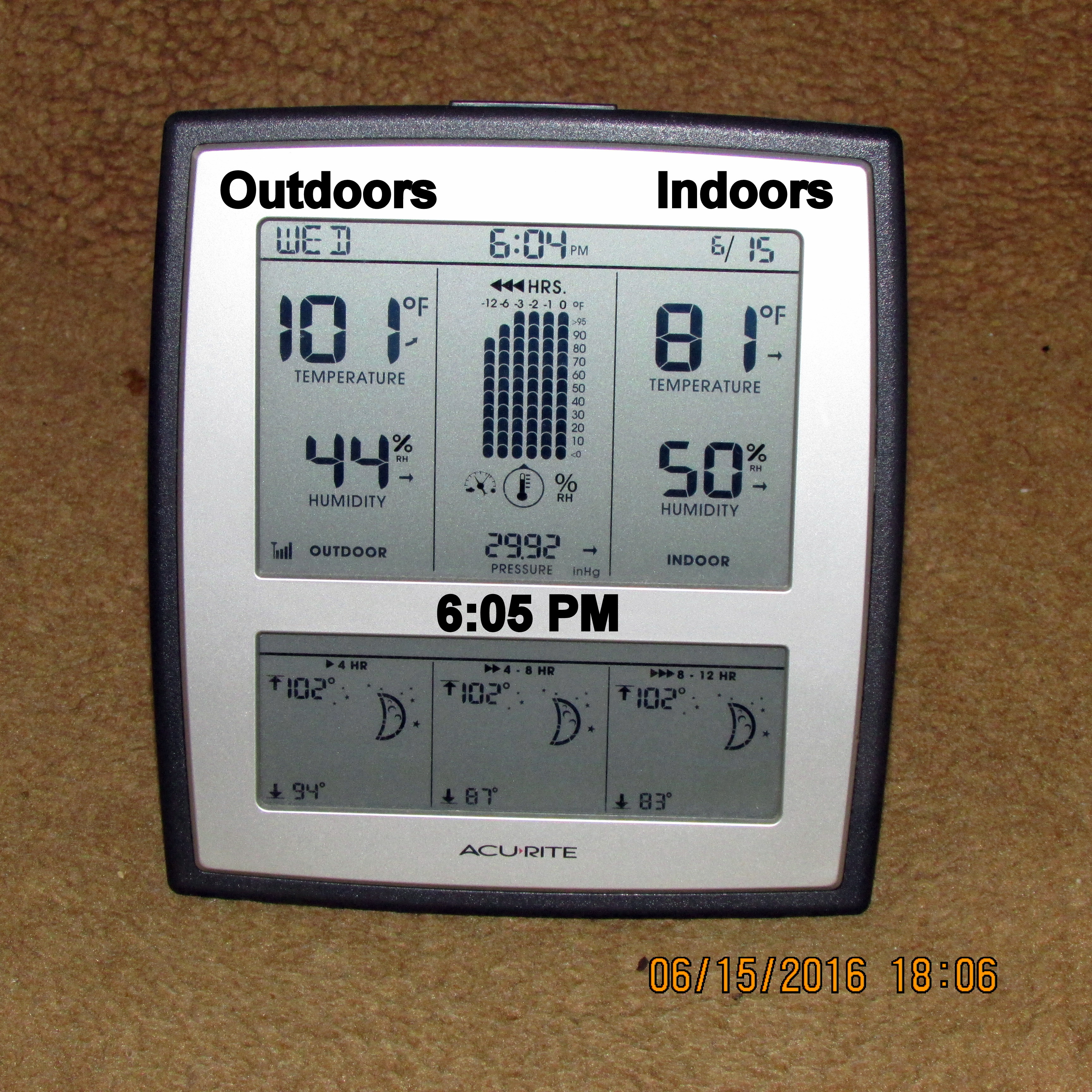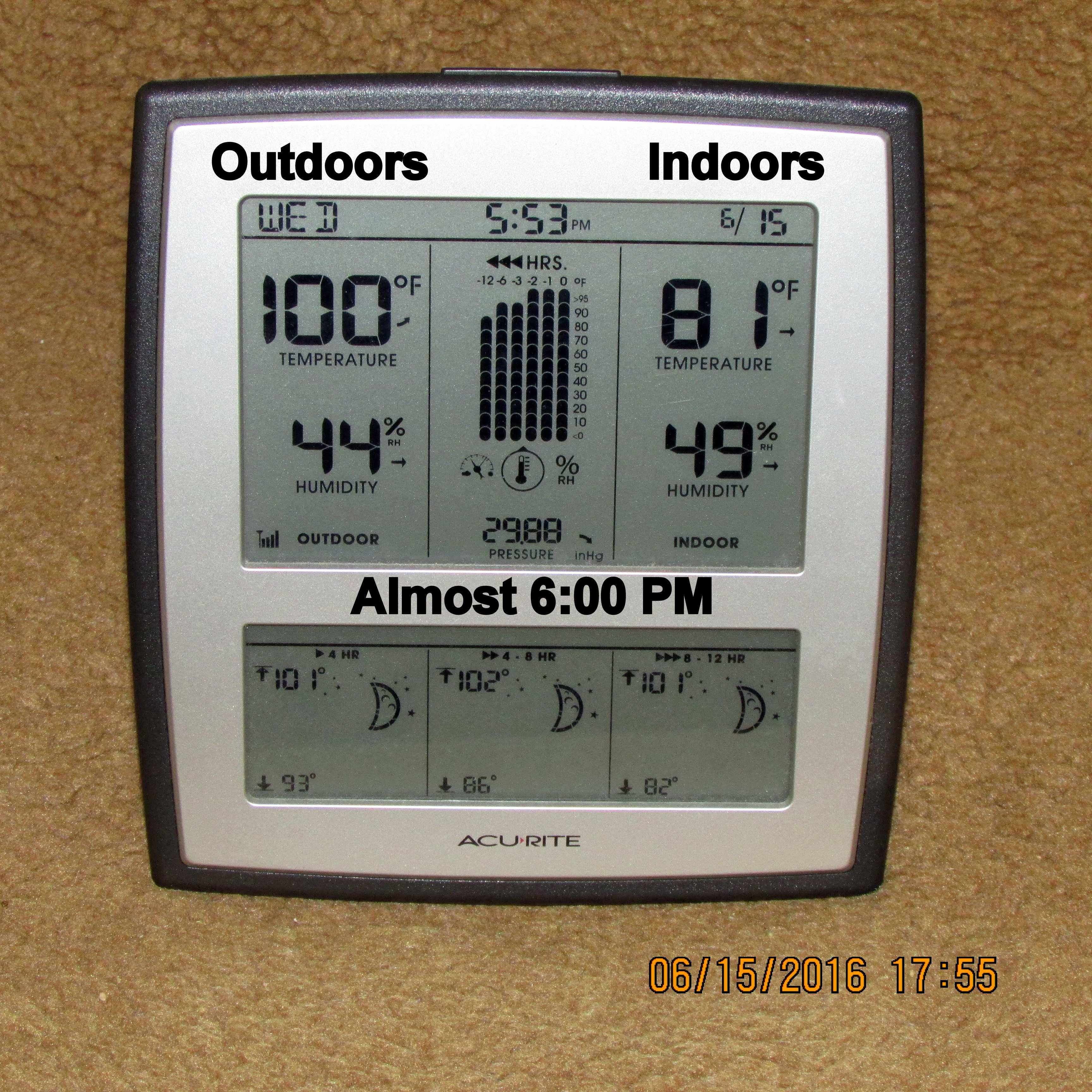 All the recent rain saturated the ground. That moisture “over watered” my plants. Here we are, a few days later, and my plants are wilting from heat because they need water. ~~ “No,” I’m not a thermometer watcher; I only glance at the weather station occasionally.