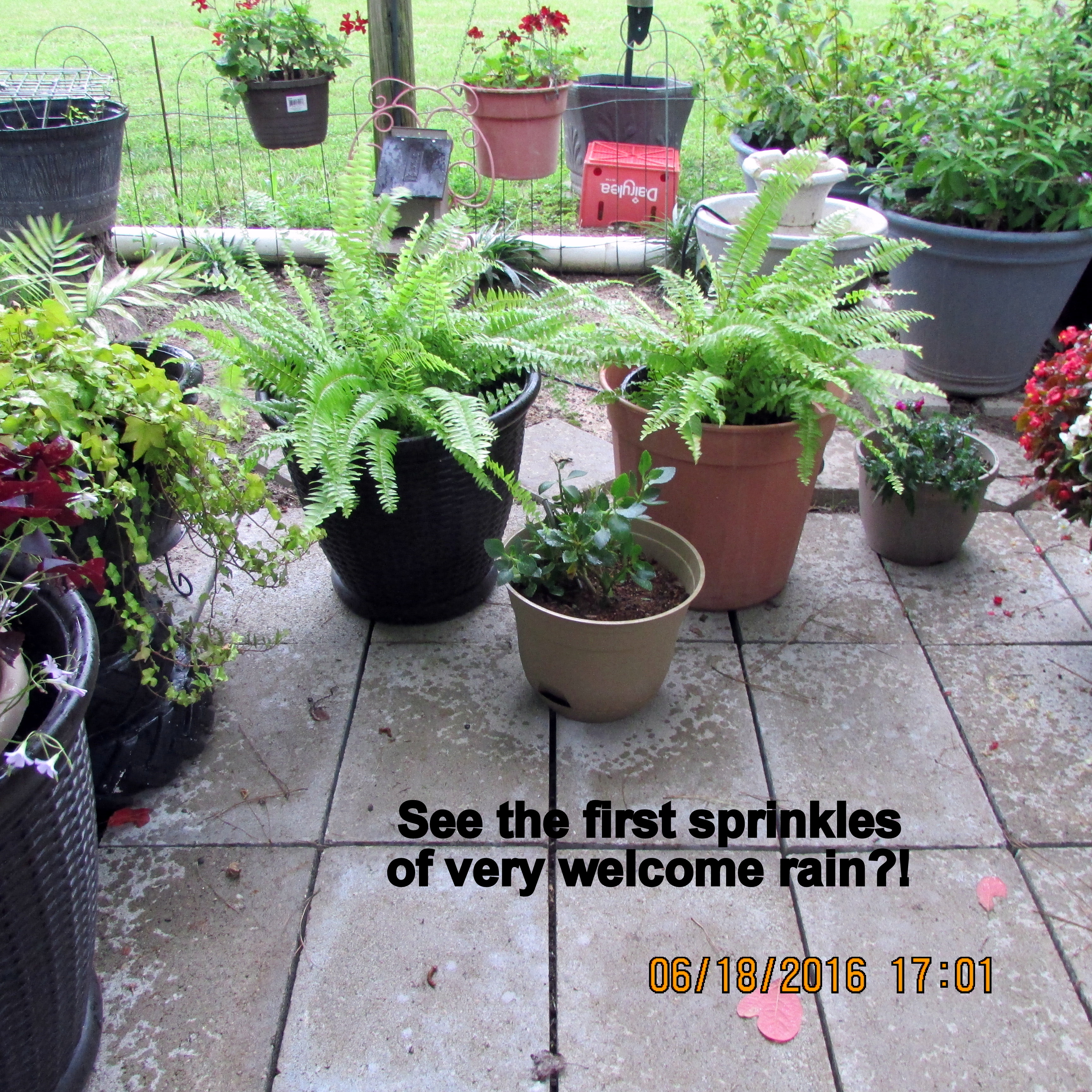 Oh boy, oh joy !! Jun18 by Lorraine Frantz Edwards . Welcome relief from the heat!! Sadly, it only lasted for fifteen minutes. Hopefully the plants were refreshed?! Share this: Click to share on X (Opens in new window) X Click to share on Facebook (Opens in new window) Facebook Like Loading...