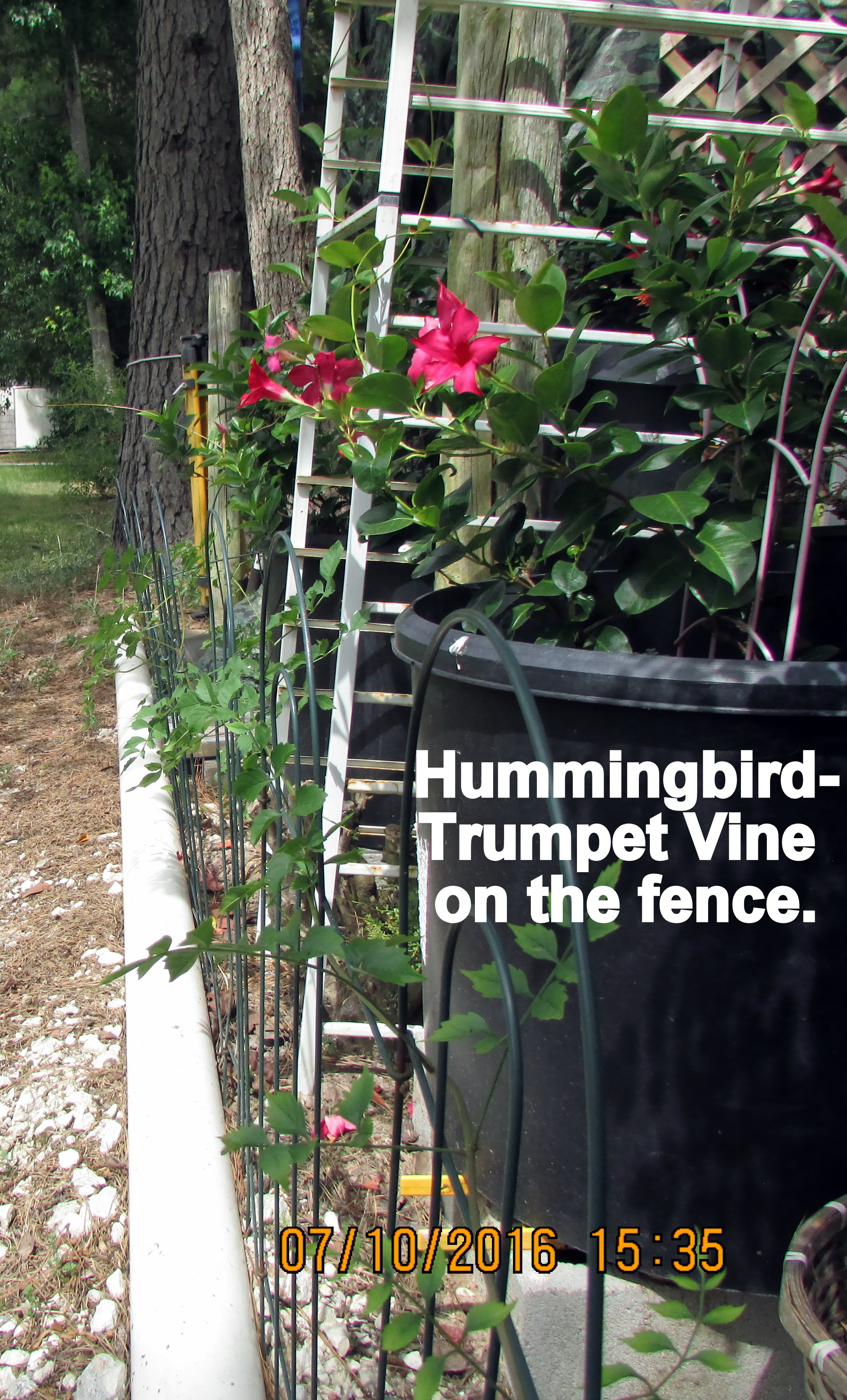 Hummingbirds and butterflies welcome!! I’ve planted bushes, and vines, to attract them. Elephant Ears and Asparagus Fern (and other tropical plants) were unscheduled plants in my “yarden.” The weather has been so hot and humid, very new Butterflies, no Bees, and Hummingbirds disappeared in mid-June.