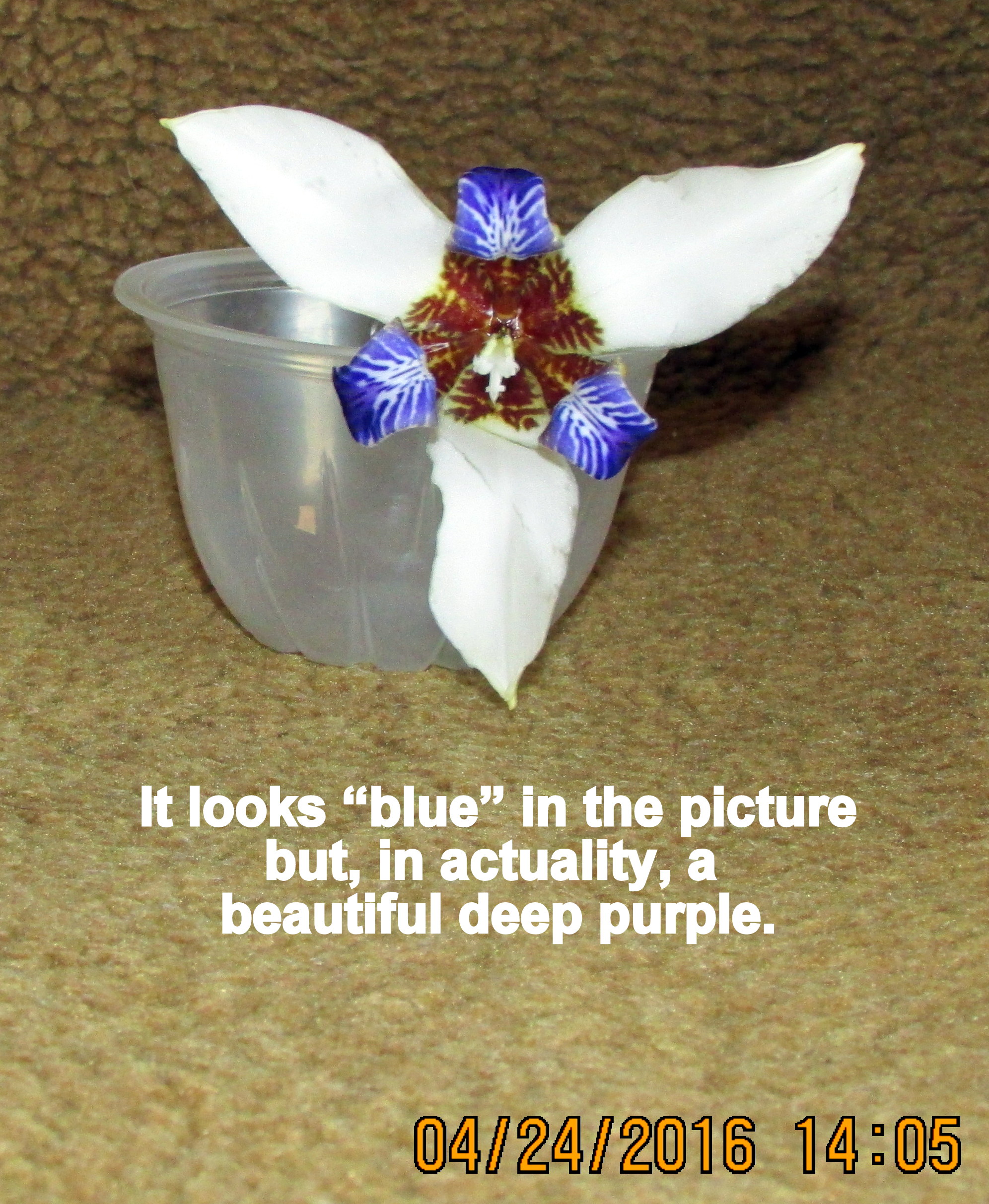 Months ago, a neighbor-lady gave me a clump of dirt with a plant. I neglected it for a period of time but finally put it into a planter. On April 24, my neighbor-lady brought a bloom from her plants. Oh my, how pretty!! Obviously, another question for Dave’s Garden because neither of us knew the name.