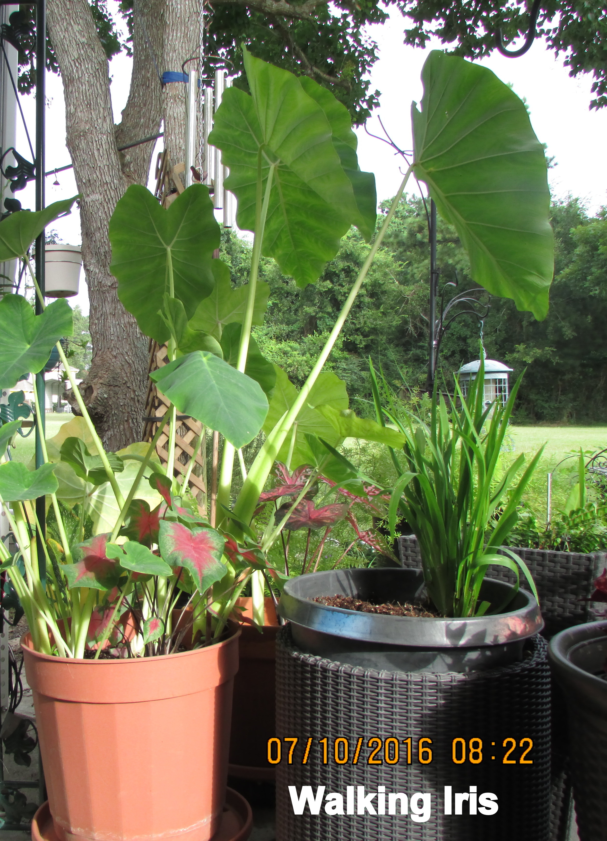 Within an hour, the name was revealed to me: Neomarica gracilis aka Walking Iris / Apostle plant. I read several web links for information. Number one: The plant (my plant) needed to be moved from full sun to partial shade. (Isn’t the World Wide Web a wonderful resource??) ~~ Check this link, and this link, and this link. So-o-o-o interesting!!