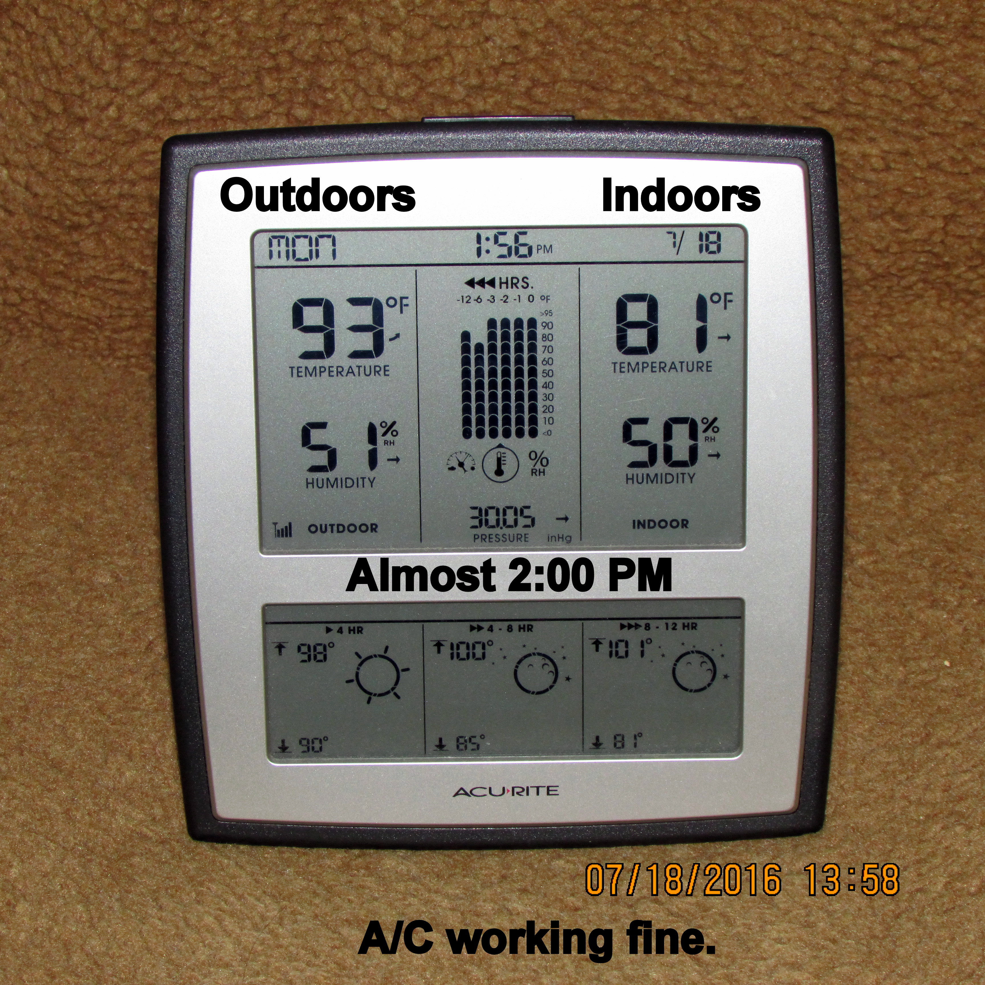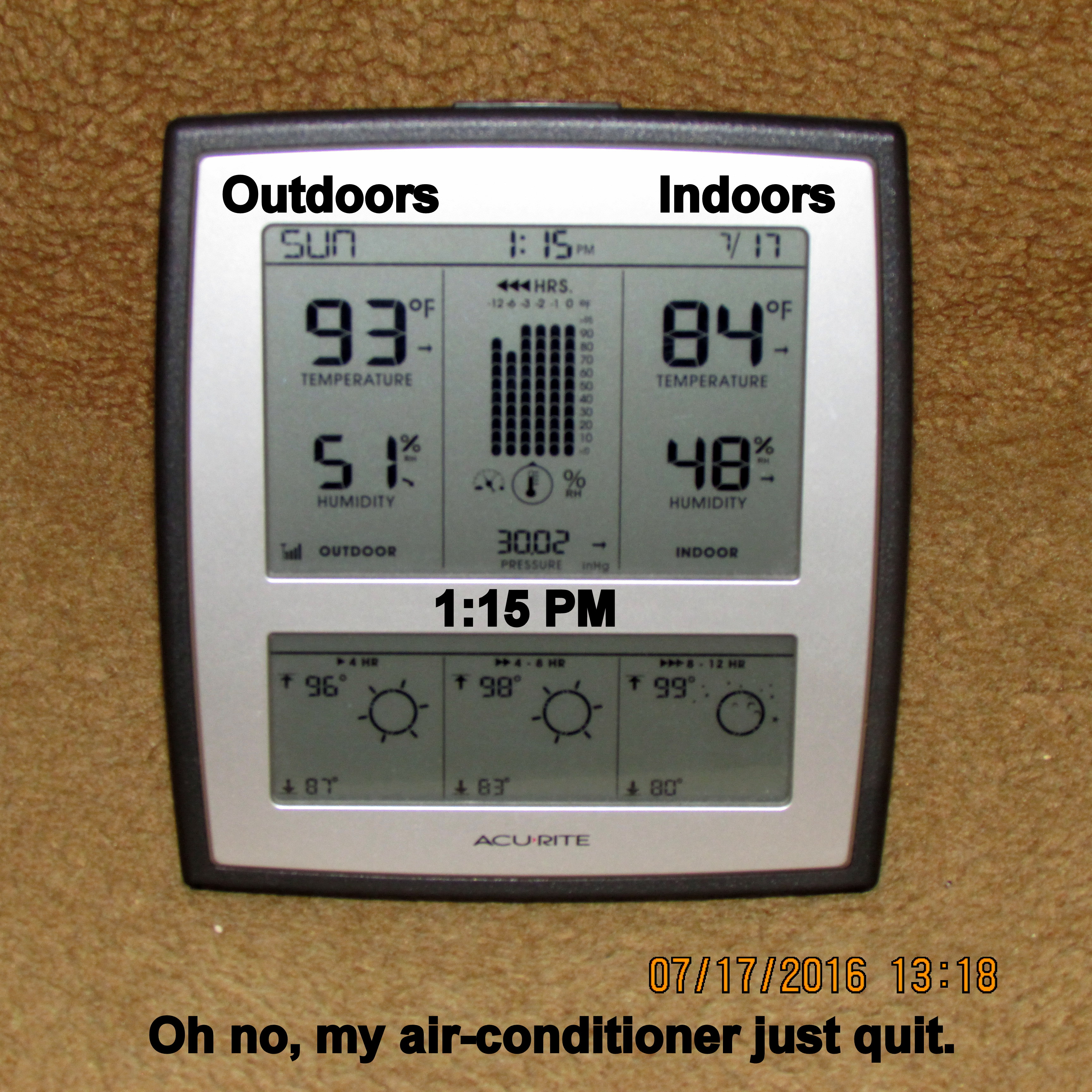 Twenty-four hours ago my air-conditioner wasn’t working. I didn’t panic, I didn’t worry. “It’s going to be OK” was my trademark reply when Staff, Volunteers and Residents inquired. ~~ It was “off” (turned off) for several hours. At six o’clock I turned it on and it has been faithfully working ever since. I’m singing and praising!!