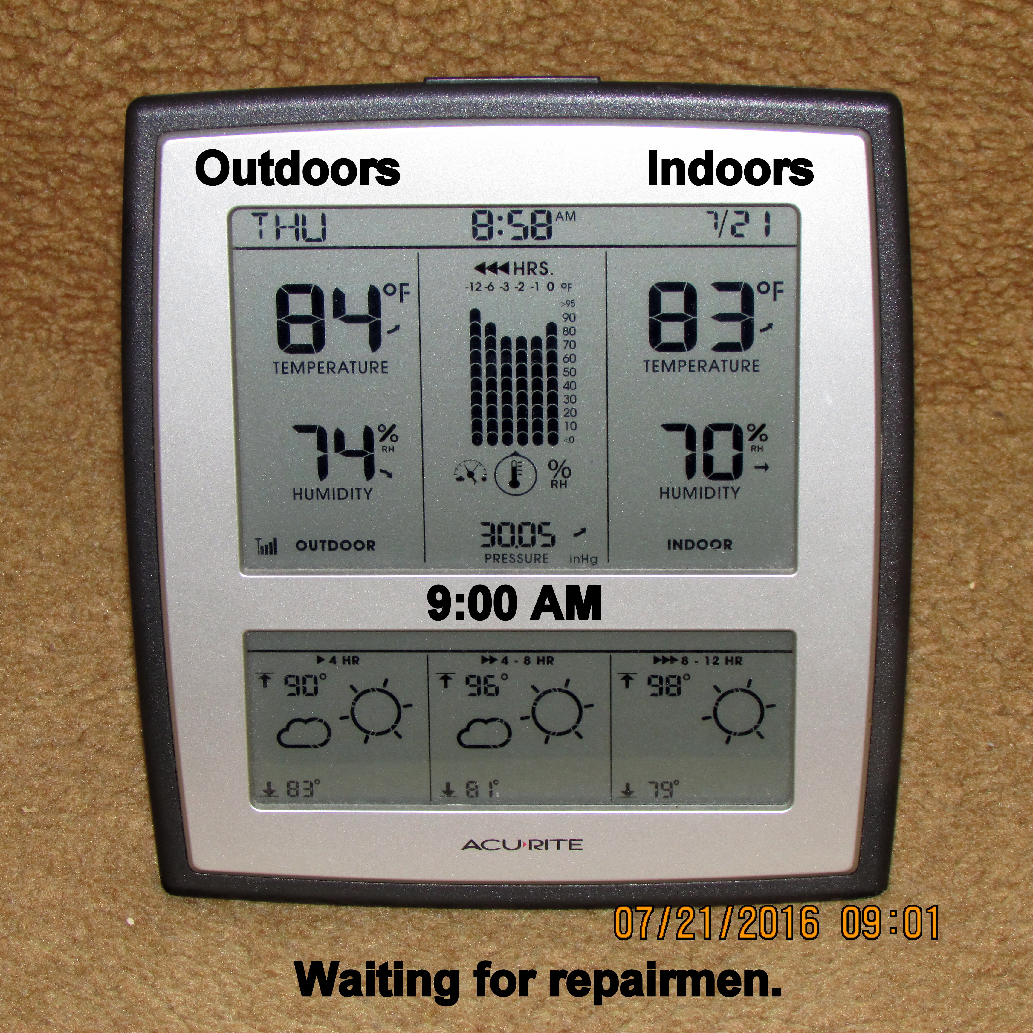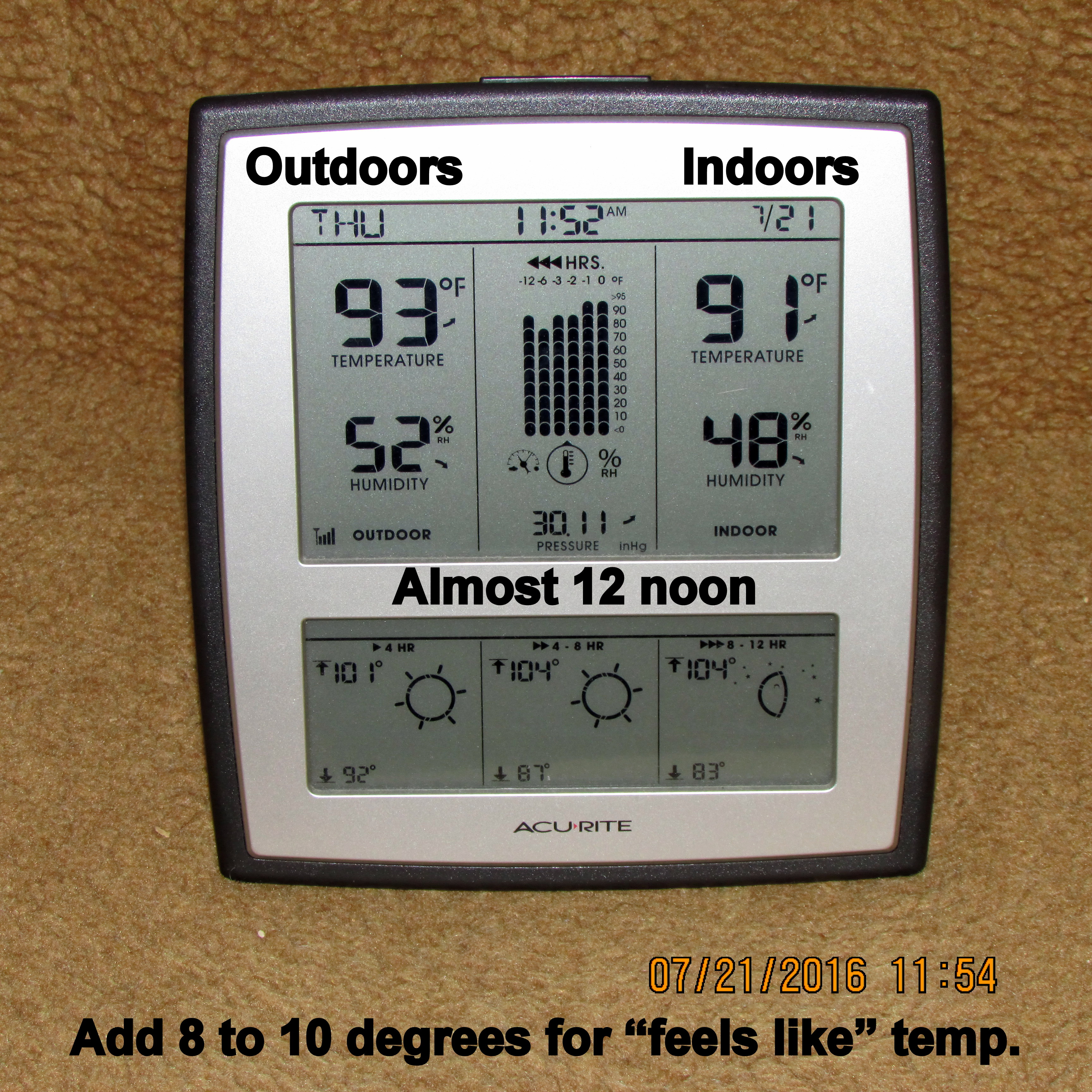 Since I started this message (at three), I’ve watched the temperature climb to ninety-nine degrees. I expected to see one-hundred degrees but a cloud passed over and the temperature dropped down to ninety-seven. >>>>>Oops!! Three thirty-three PM and the breaker tripped and the A/C fan stopped.<<<<< I hoped I could survive with fan on A/C and two small fans strategically located in the living room of my trailer home. ~~ My CARE family will provide for me. I can sleep in the CARE multi-purpose room tonight?! >>>>>Reset breaker at 3:33 but it clicked off again at 3:49.<<<<< But (like the words of  a Christian chorus “I’ll not be defeated!!” (You haven’t heard the last of this story.)
