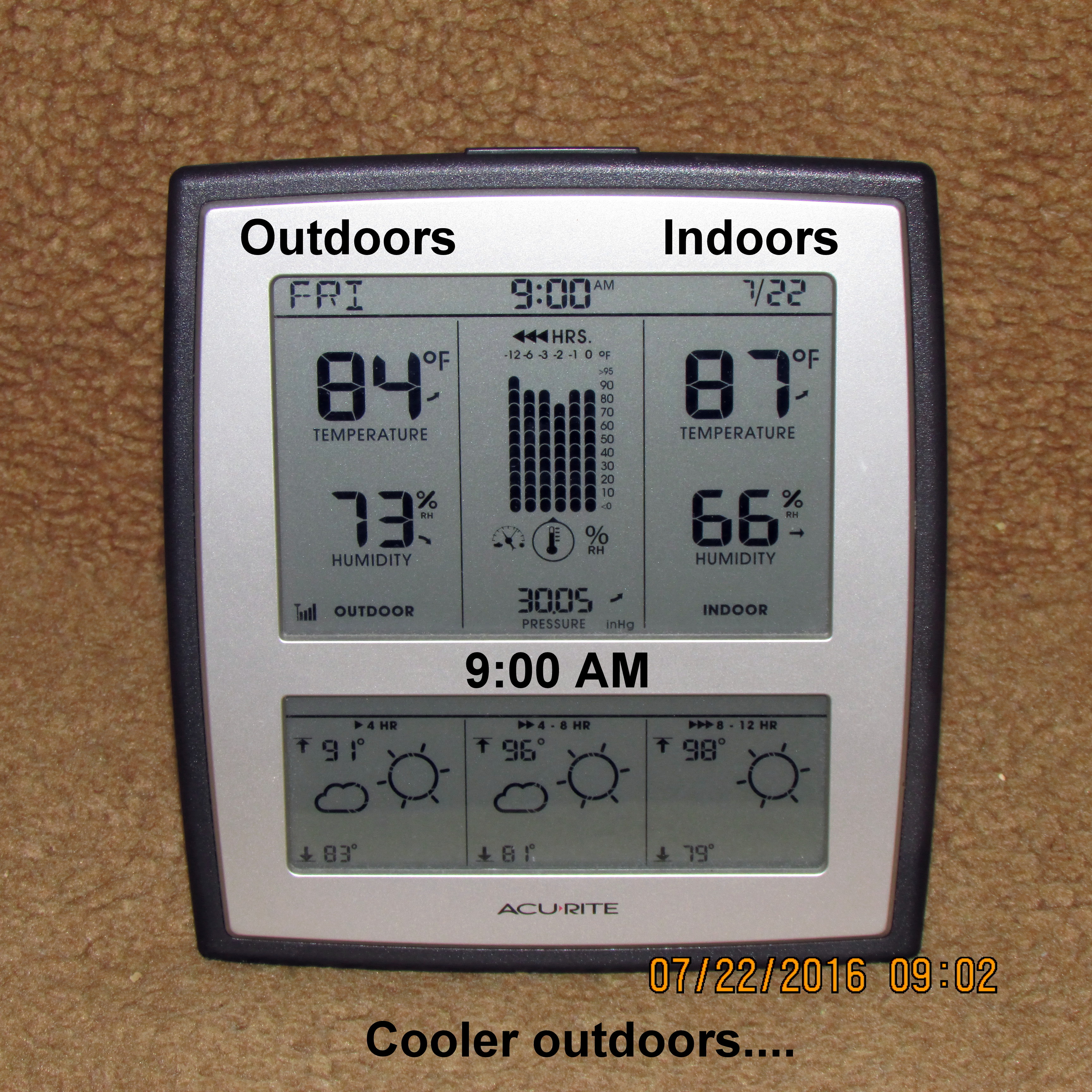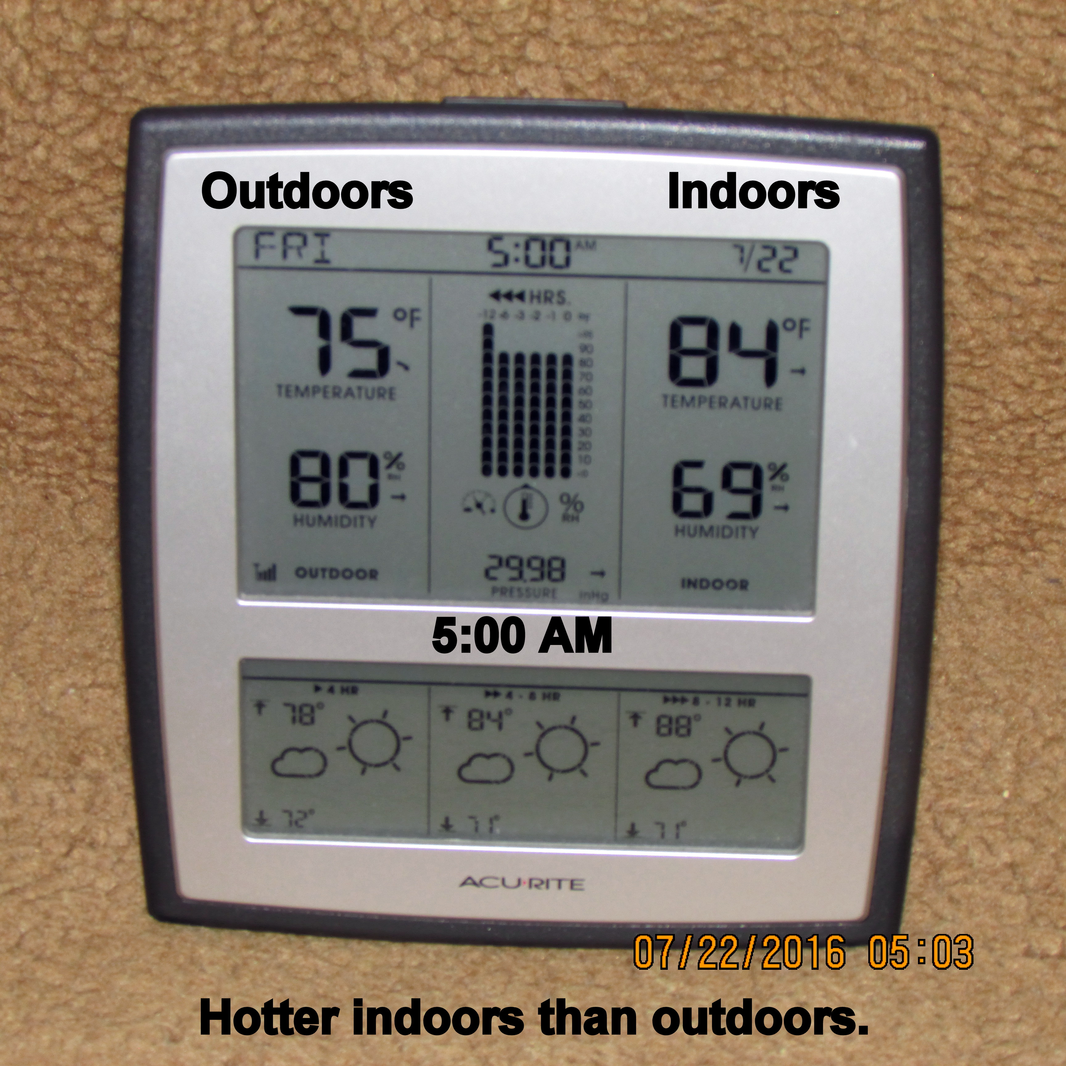 Postscript, Friday, July 22, 2016: Slept in my own bed last night. There are four fans moving hot air around.