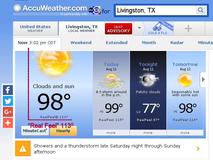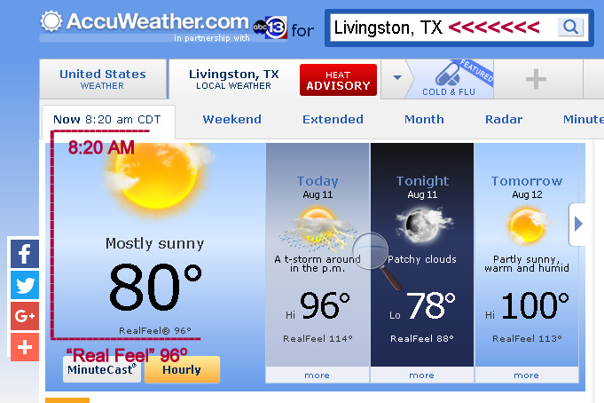 The temperature may vary between thermometers but miserably hot any way you look at it.