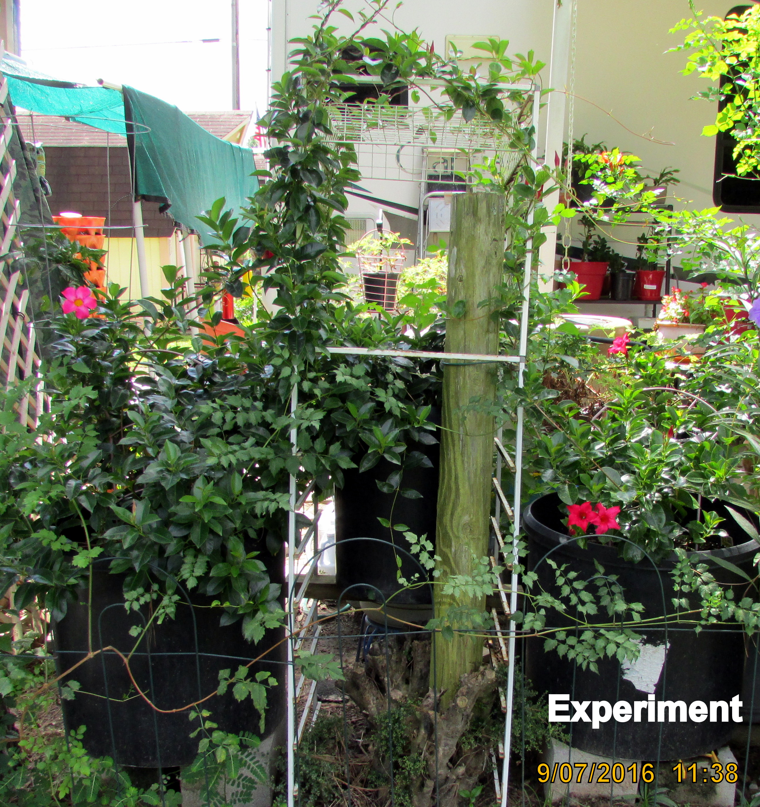 See Mandevilla Experiment and Indoor project for background details about the plant that has survived and thrived. In my humble opinion, the experiment was a huge success!! I love to watch my plants grow–and bloom!!