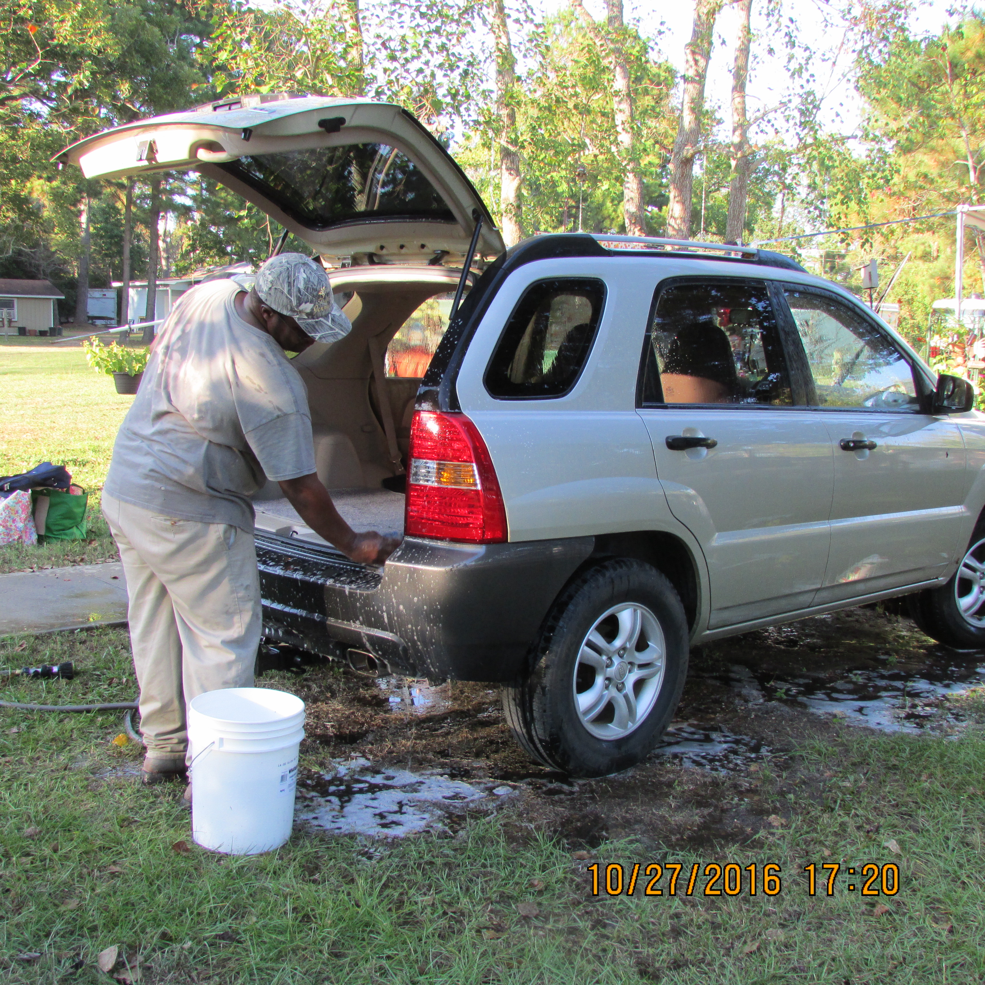 Yesterday, after hours, one of our maintenance men was washing and waxing a neighbor’s car. I said: “Mine could use a thorough cleaning.” James just smiled. I said: “Seriously; at your convenience.” To my delight, James was on the project shortly after five. The KIA looks beautiful!! (James wouldn’t quote a price; I was generous.)
