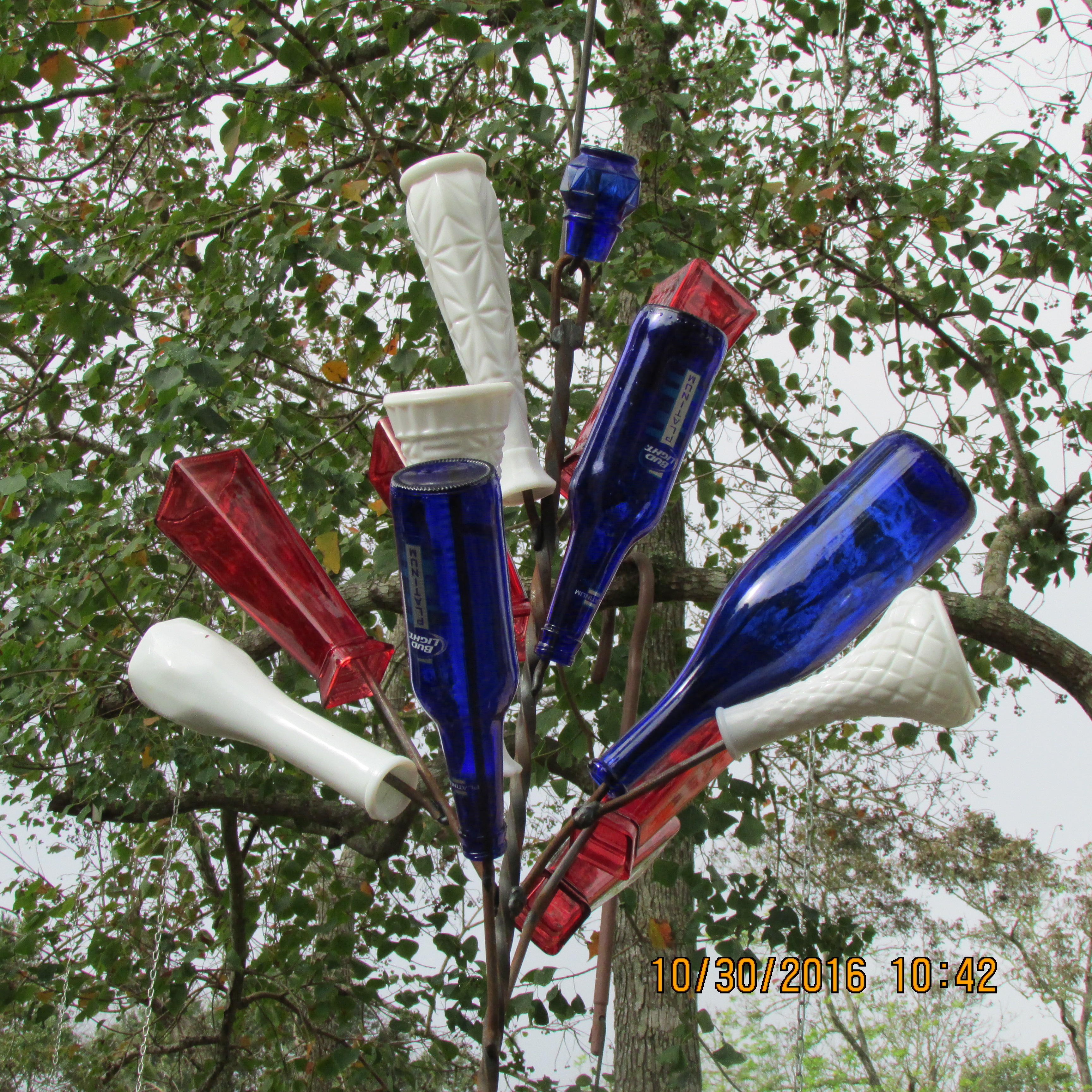 When I visited the Internet, researching “bottle trees,” I was shocked by the prices!! As I recall, one “tree” was $140.00. Rejoice with me because of my bargain?!