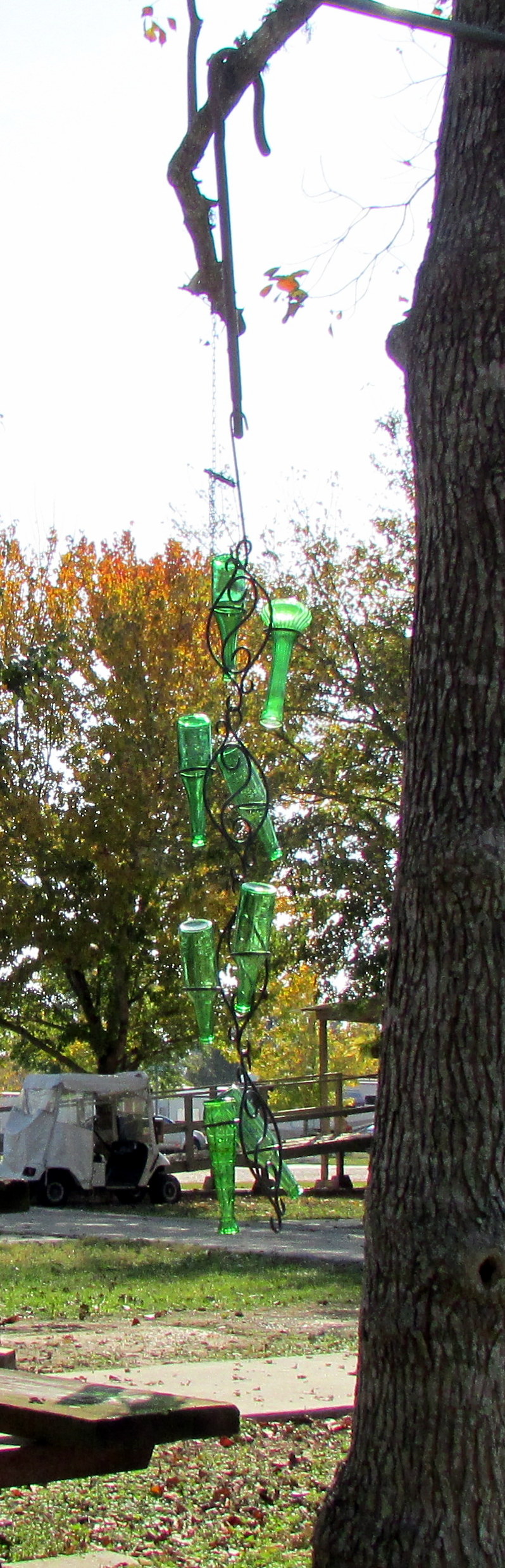 Far below: Sharing my “bottle chandelier” with my neighbor.